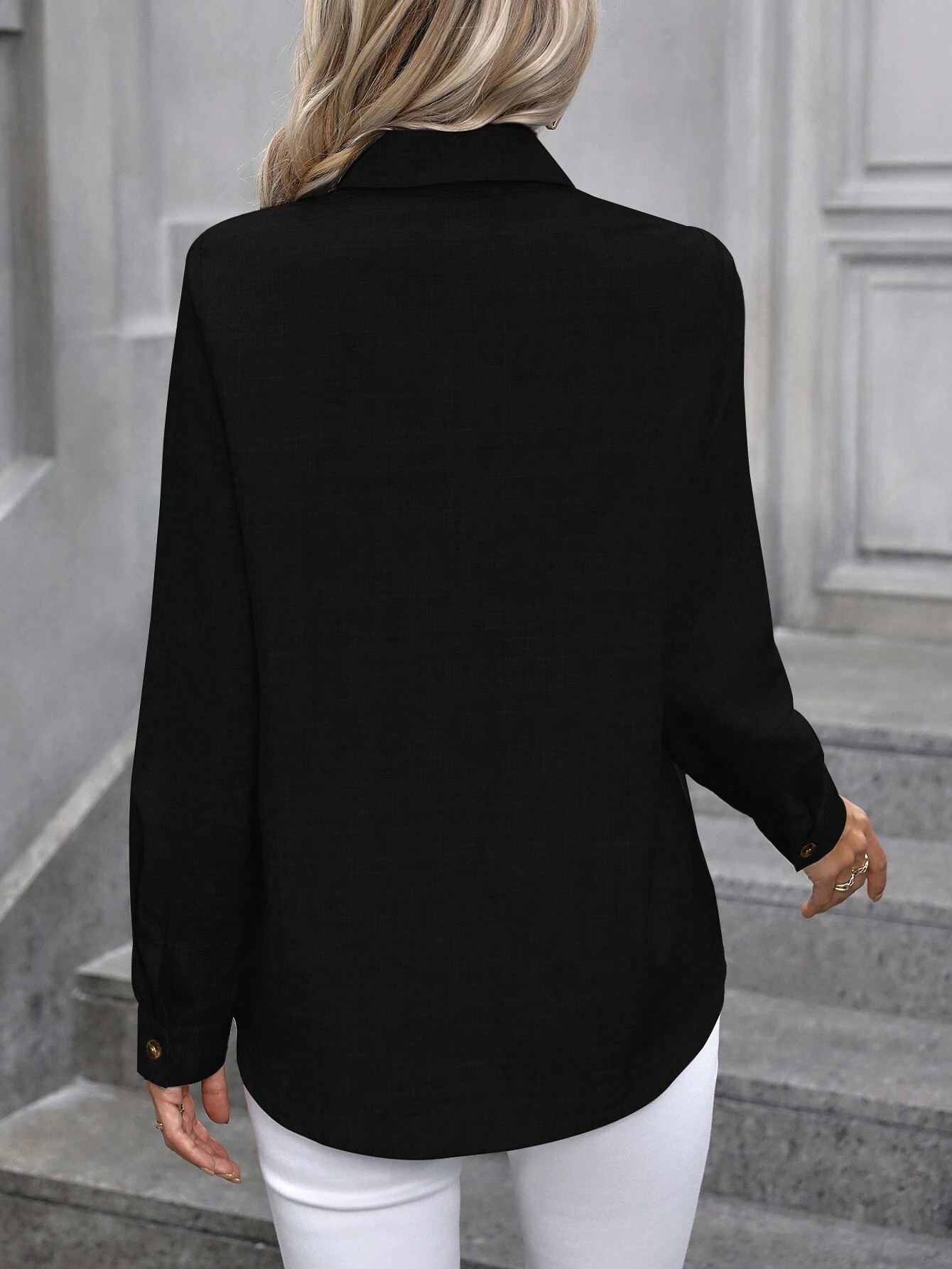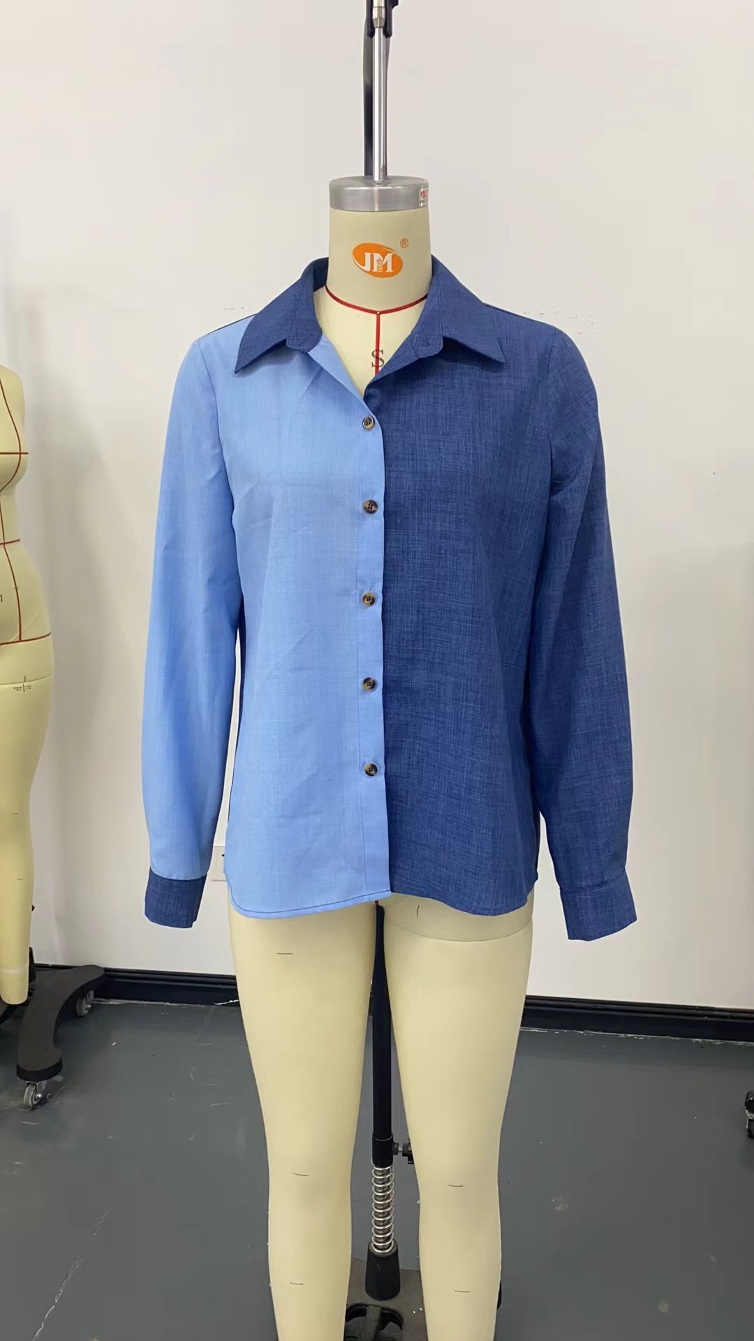 2025 봄 여름 아마존 크로스보더 유럽과 미국의 새로운 캐주얼 싱글 브레스트 솔리드 컬러 배색 긴팔 라펠 셔츠 여성용