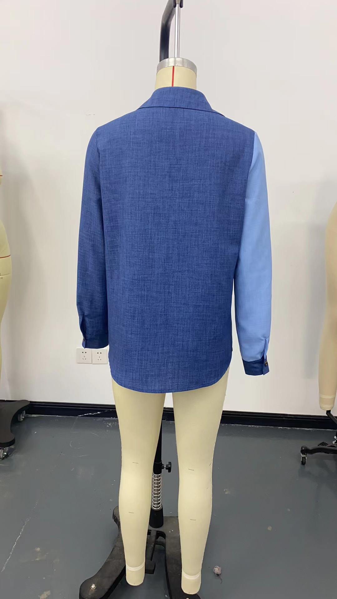 2025 봄 여름 아마존 크로스보더 유럽과 미국의 새로운 캐주얼 싱글 브레스트 솔리드 컬러 배색 긴팔 라펠 셔츠 여성용스토어 가기