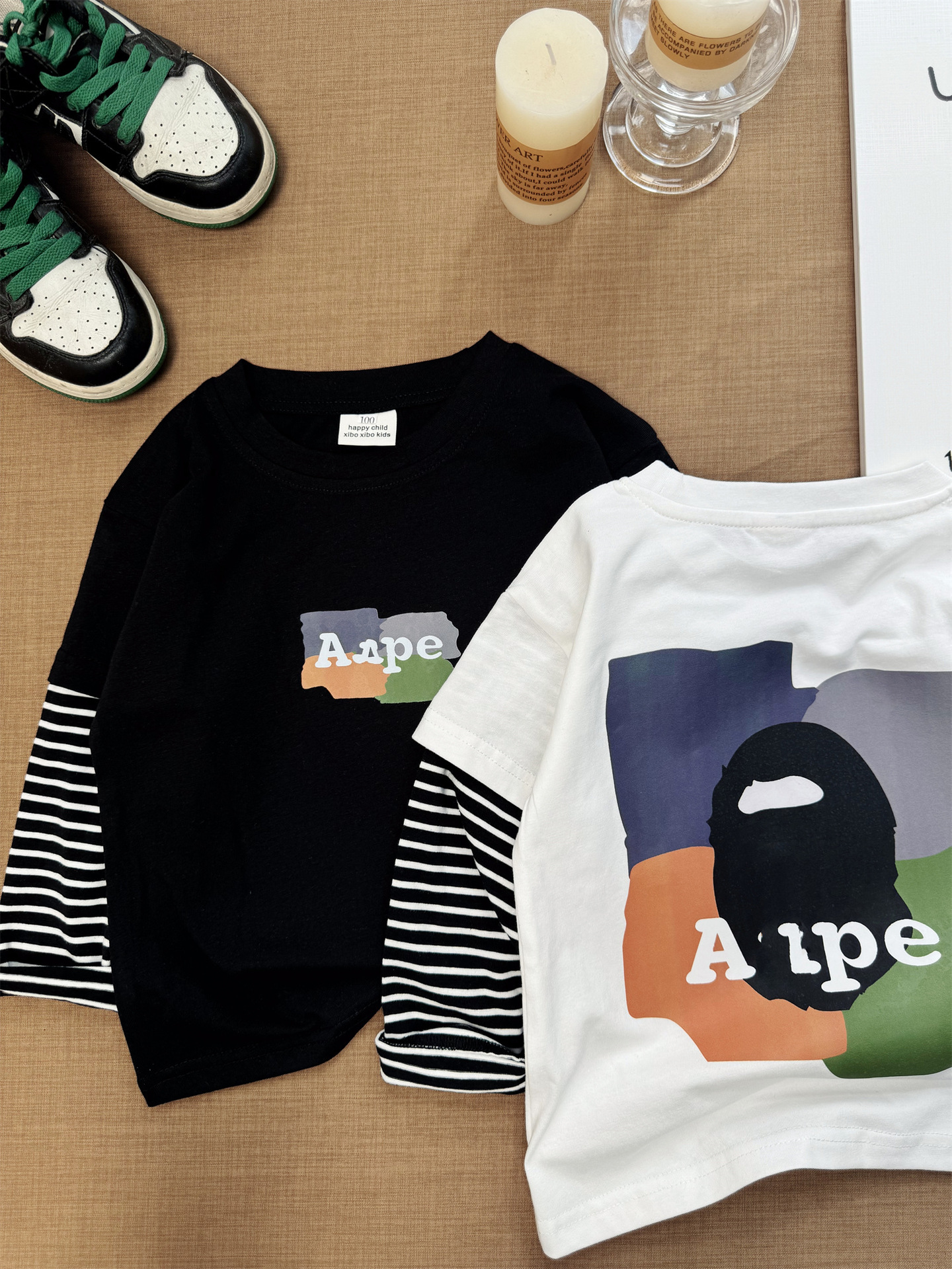어린이 긴팔 티셔츠 가을과 겨울 새 소년 캐주얼 원숭이 루즈 탑 중소 어린이 트렌디 브랜드 스플라이스 슬리브 티셔츠 크로스 보더