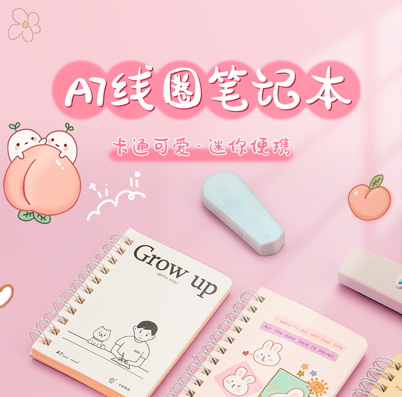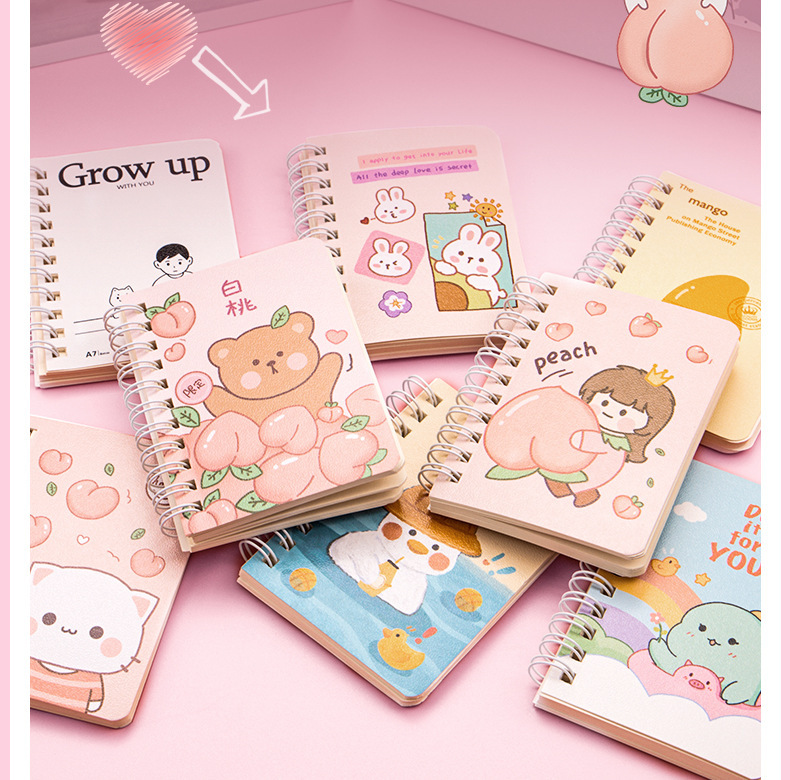 작은 코일 북 만화 노트북 귀여운 슈퍼 귀여운 미니 휴대용 포켓 메모장 나선형 코일 북스토어 가기
