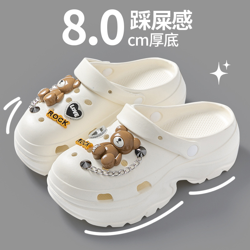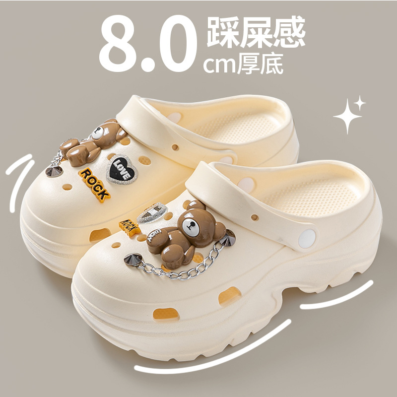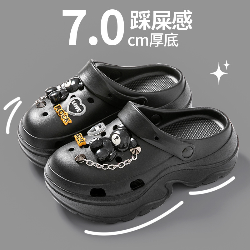 두꺼운 밑창 구멍 신발 여성의 2024 새로운 미끄럼 방지 탈취제 해변 높이 스텝 업 느낌 에바 샌들과 슬리퍼 여름 착용스토어 가기