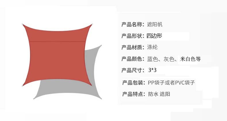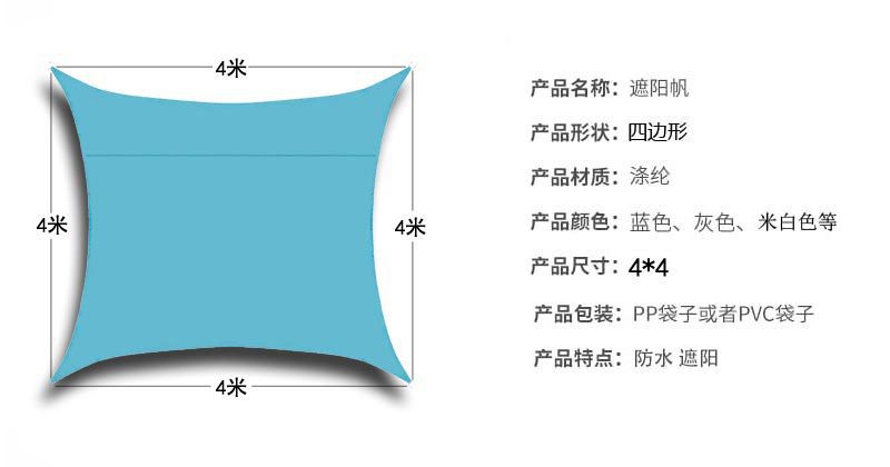 3*4 m 양산 항해 야외 방비 420D 폴리 에스터 옥스포드 천 야외 캐노피 SHADE