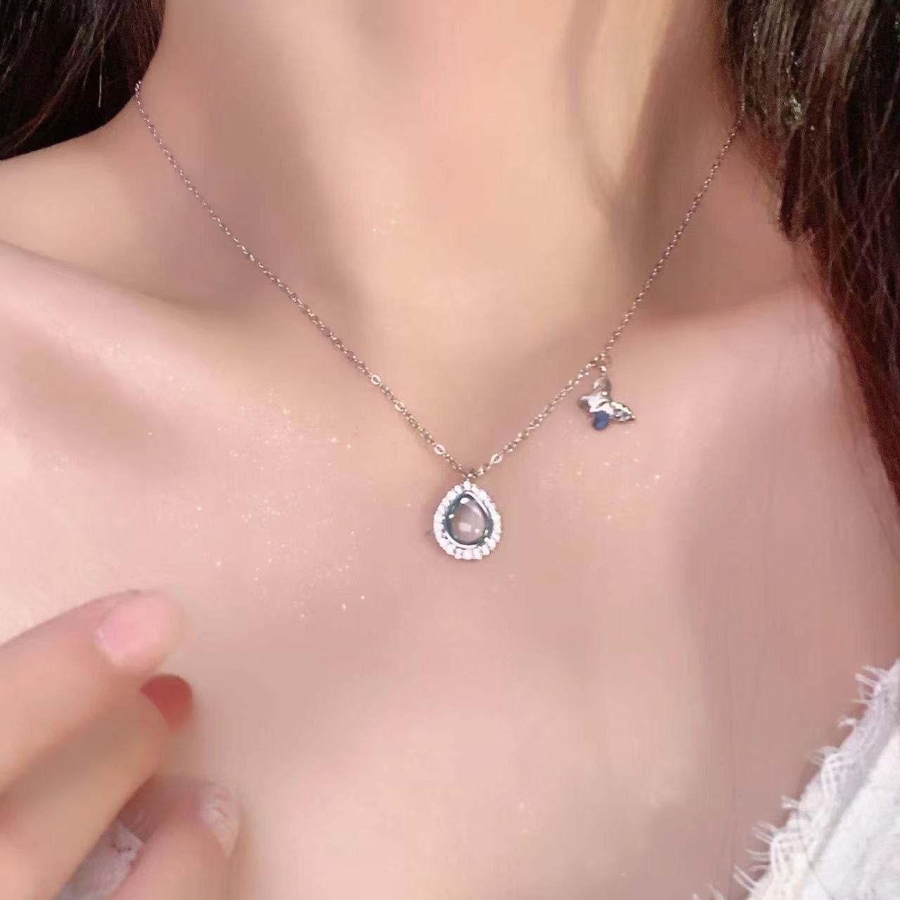 콜드 스타일 블루 지르콘 목걸이 여성용 라이트 럭셔리 틈새 올 매치 하이 엔드 쇄골 체인 절묘한 우아한 목걸이스토어 가기