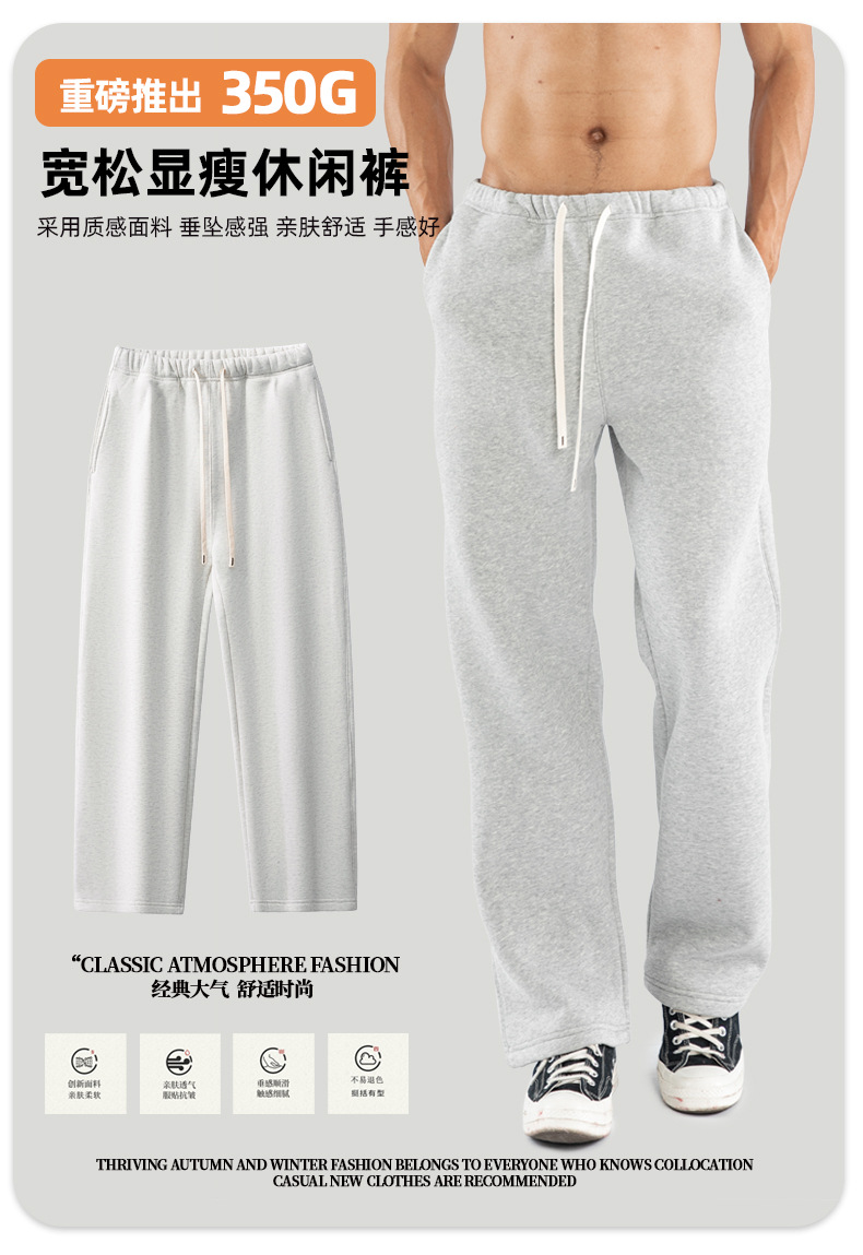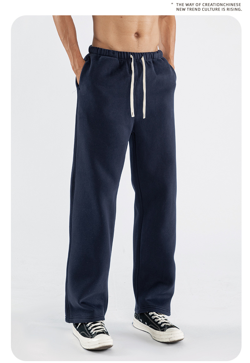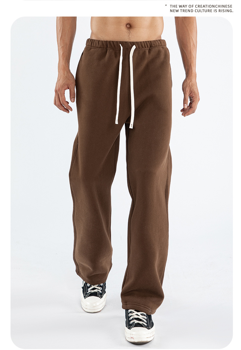 남성용 미국 트렌디 브랜드 스트레이트 레그 스웨트팬츠, 루즈한 헤비급 350G 벨벳 팬츠, 남성용 레트로 드로스트링 캐주얼 팬츠스토어 가기