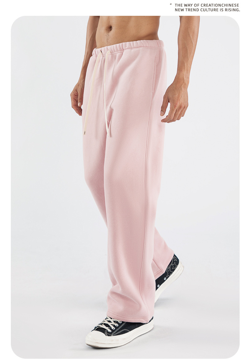 남성용 미국 트렌디 브랜드 스트레이트 레그 스웨트팬츠, 루즈한 헤비급 350G 벨벳 팬츠, 남성용 레트로 드로스트링 캐주얼 팬츠