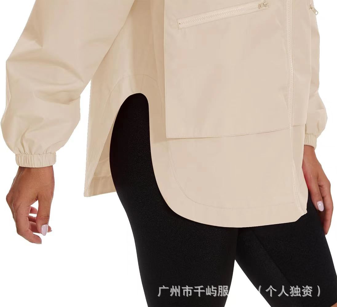 2024 봄과 가을 국경 간 뜨거운 판매 여성 긴 소매 지퍼 후드 자켓 윈드 브레이커 캐주얼 코트스토어 가기