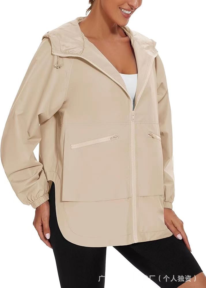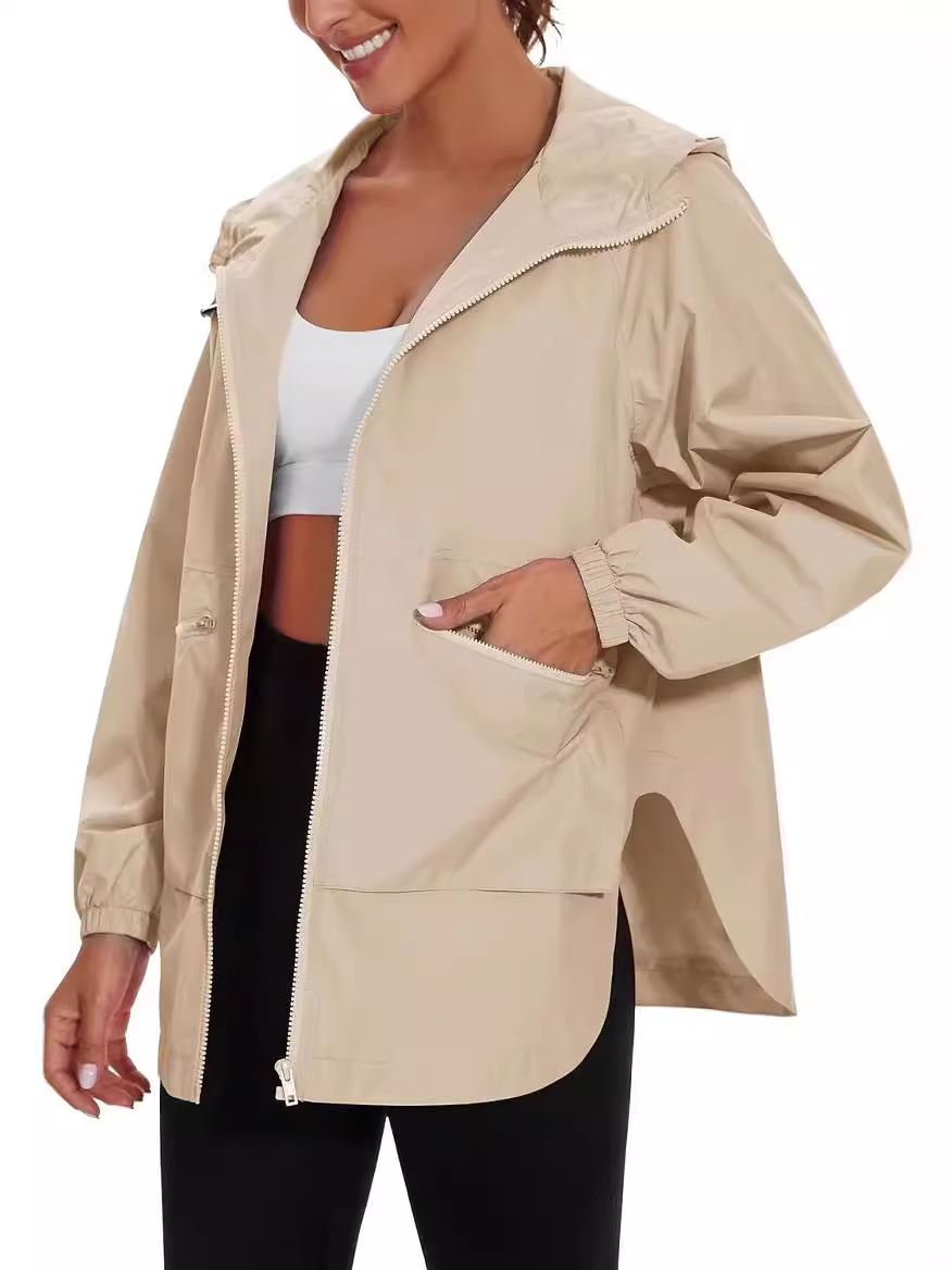2024 봄과 가을 국경 간 뜨거운 판매 여성 긴 소매 지퍼 후드 자켓 윈드 브레이커 캐주얼 코트