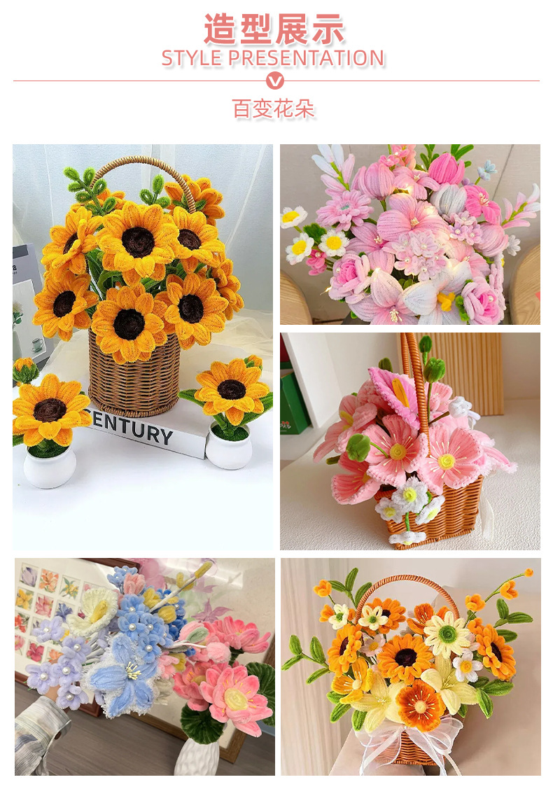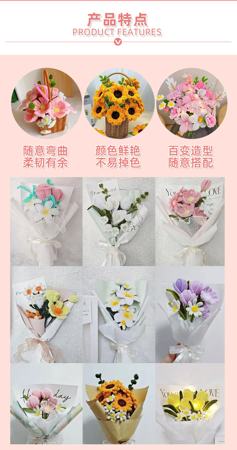 꼬임봉 암호화형 특수모 봉제 꽃다발 유치원 어린이용 튤립 해바라기 봉제 수공예 털봉