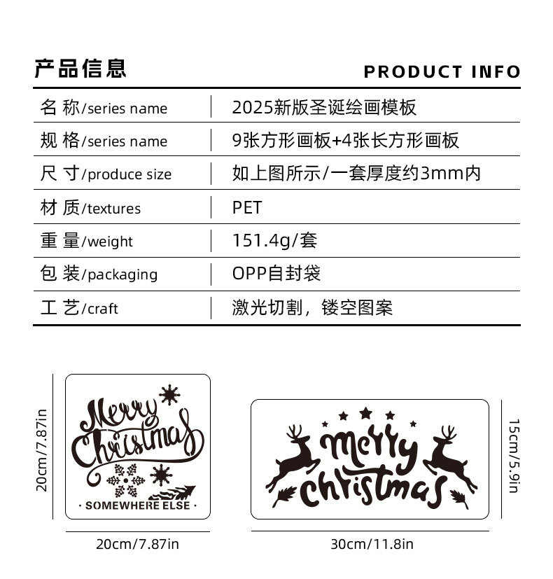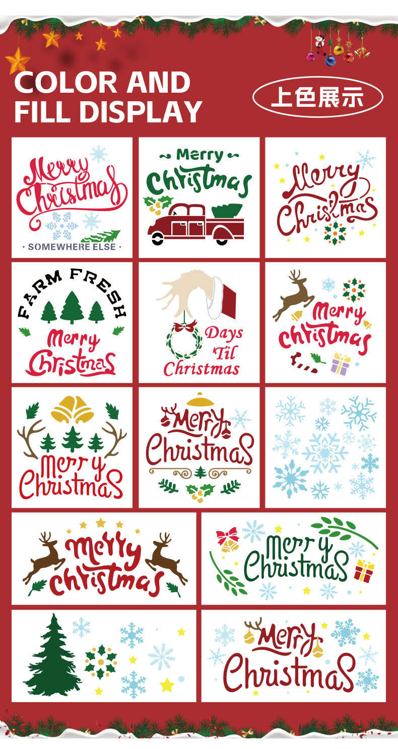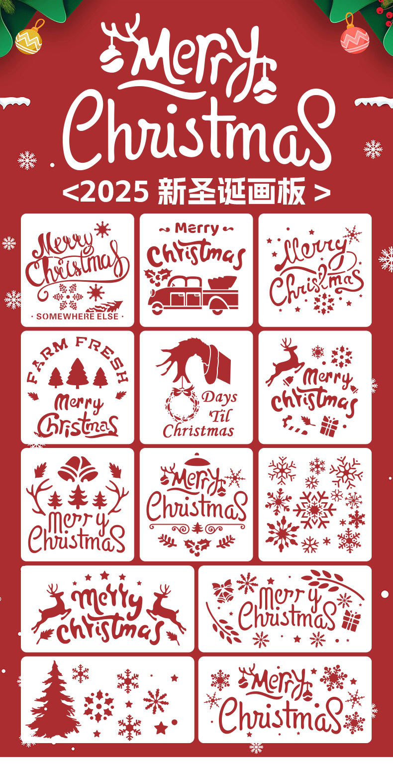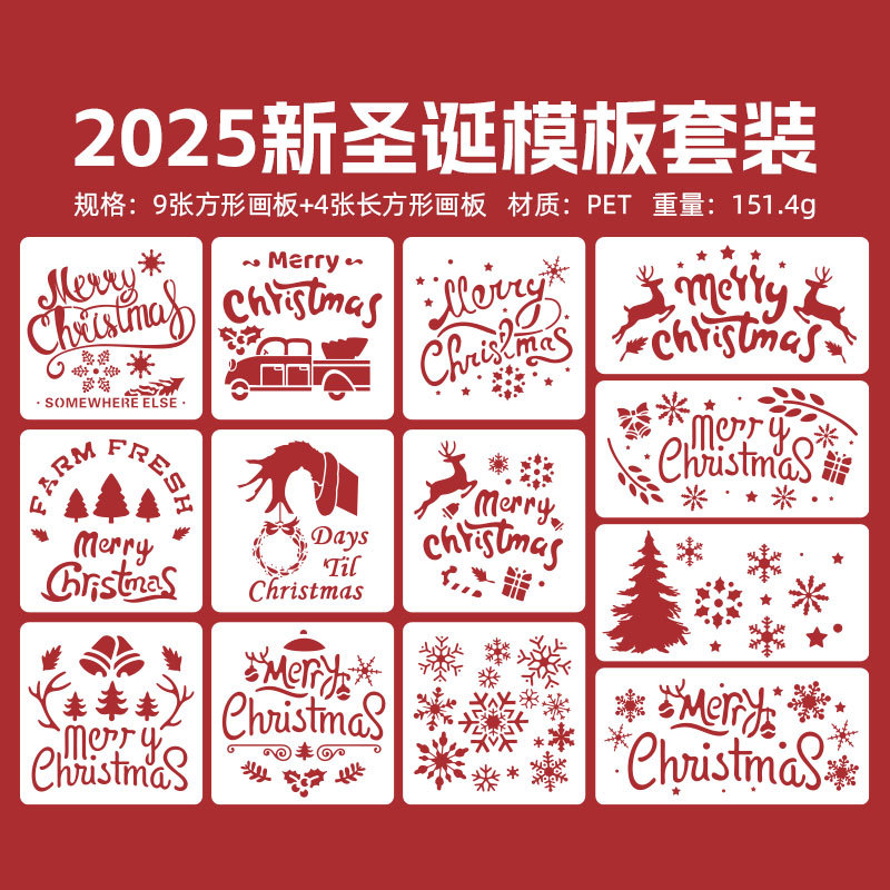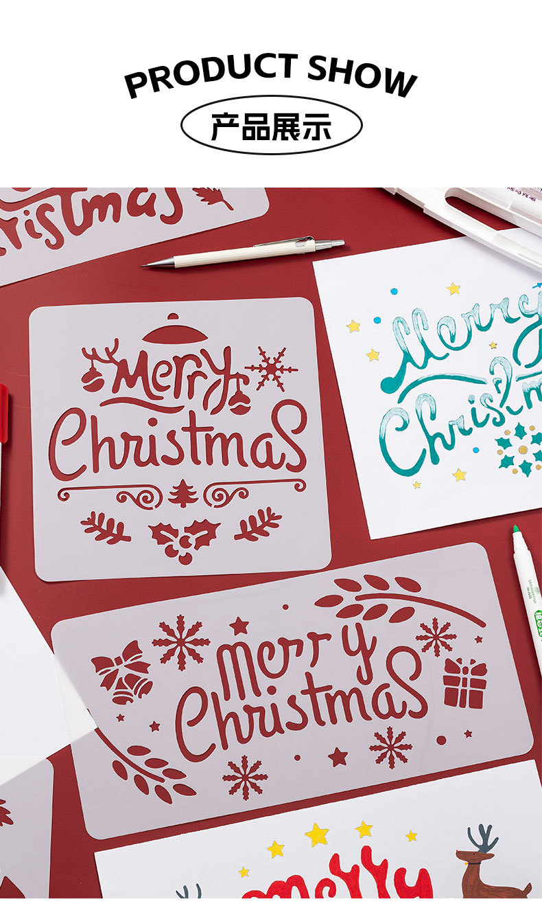 국경 간 중공 그림 크리스마스 템플릿 DIY 손 계정 낙서 스프레이 그림 애완 동물 템플릿 통치자 아마존 크리스마스 템플릿
