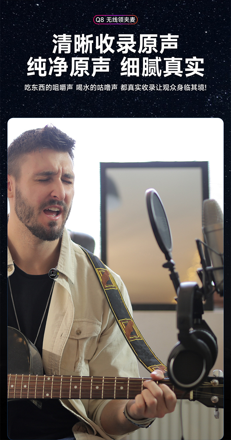 국경 간 새로운 개인 모델 Q8 무선 칼라 클립 마이크 AI 지능형 소음 감소 라운드 버튼 형 자기 흡입 라이브 마이크
