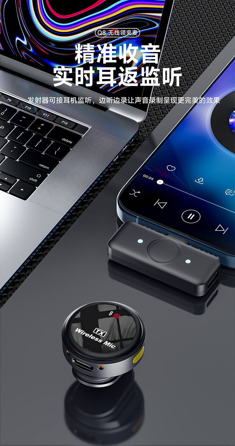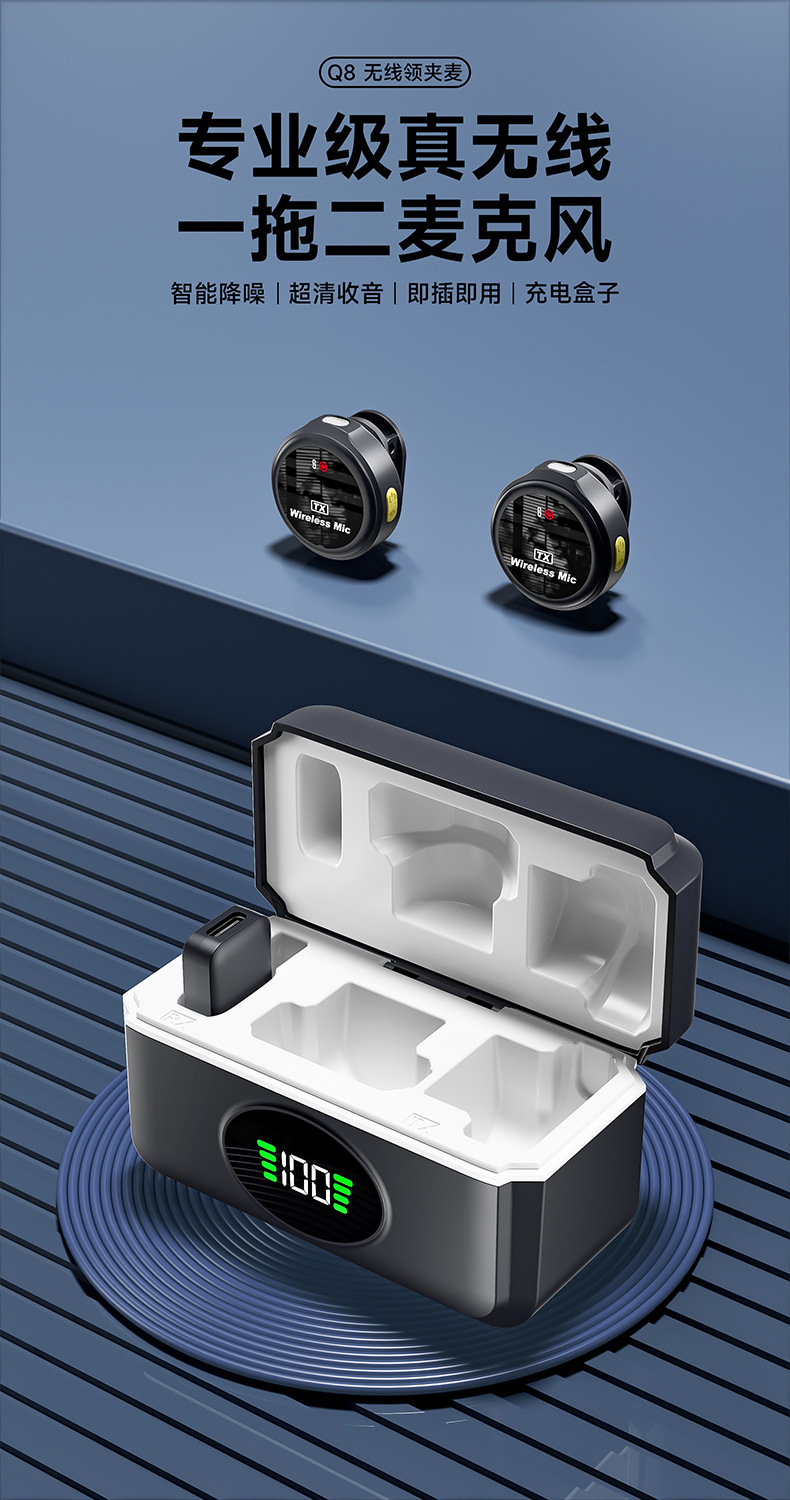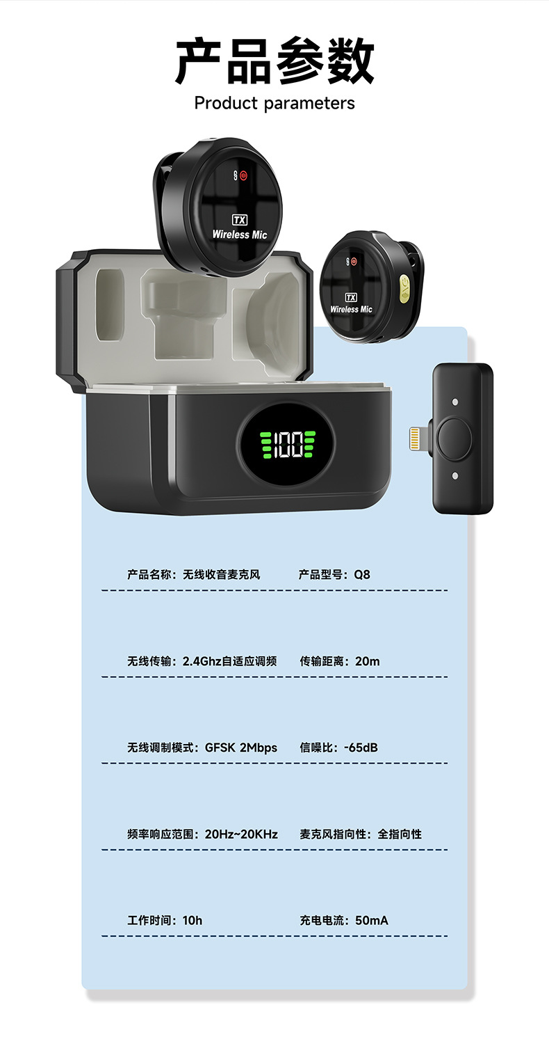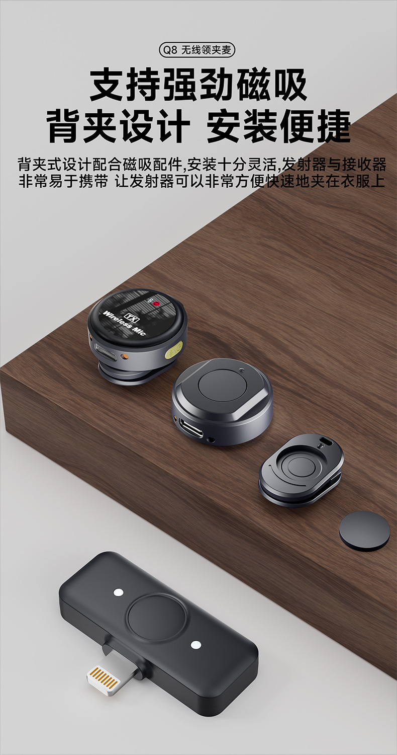 국경 간 새로운 개인 모델 Q8 무선 칼라 클립 마이크 AI 지능형 소음 감소 라운드 버튼 형 자기 흡입 라이브 마이크스토어 가기