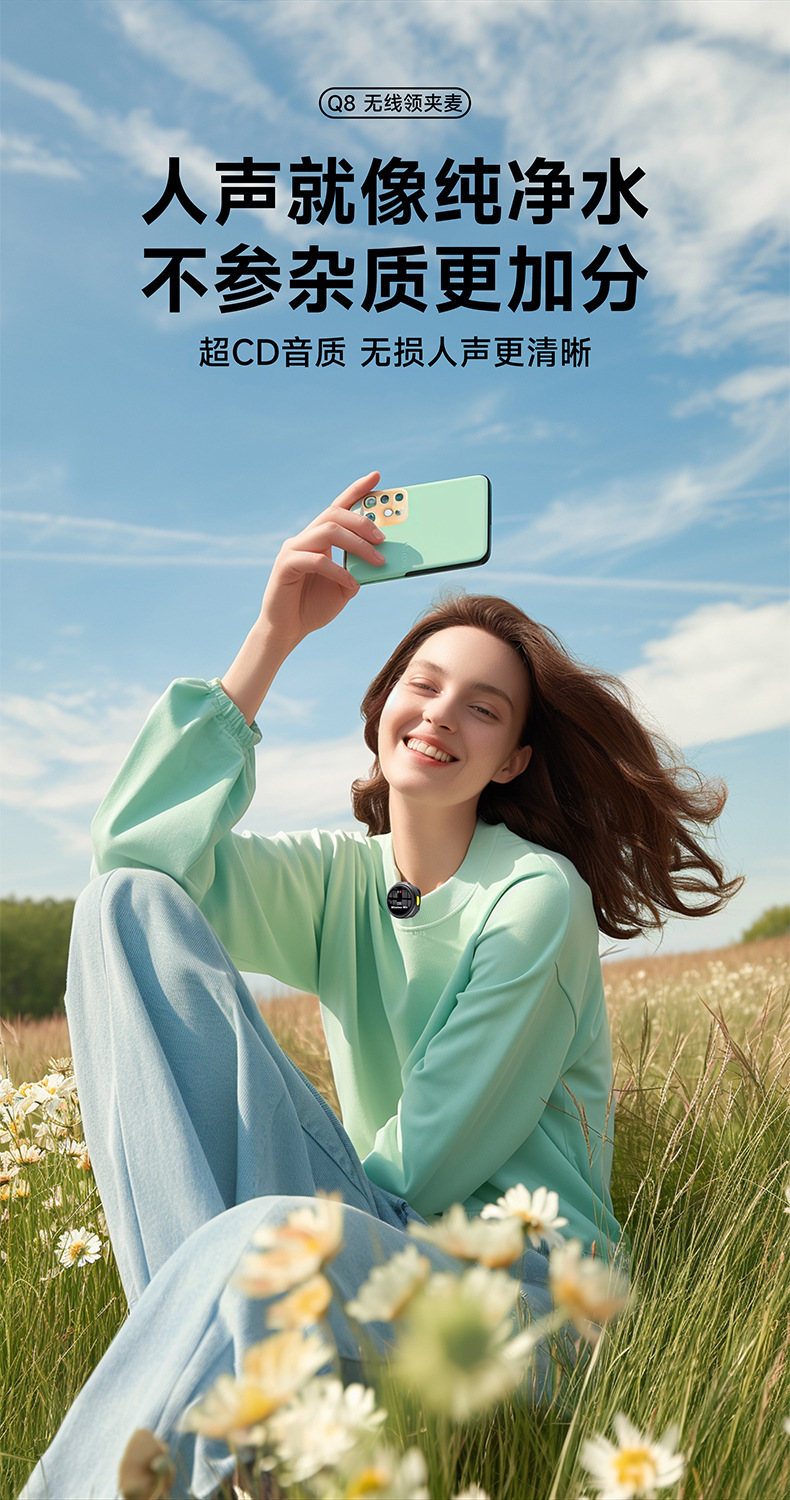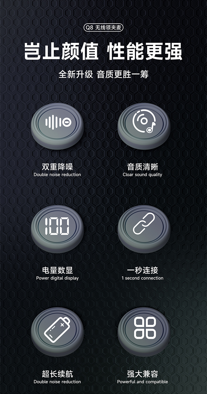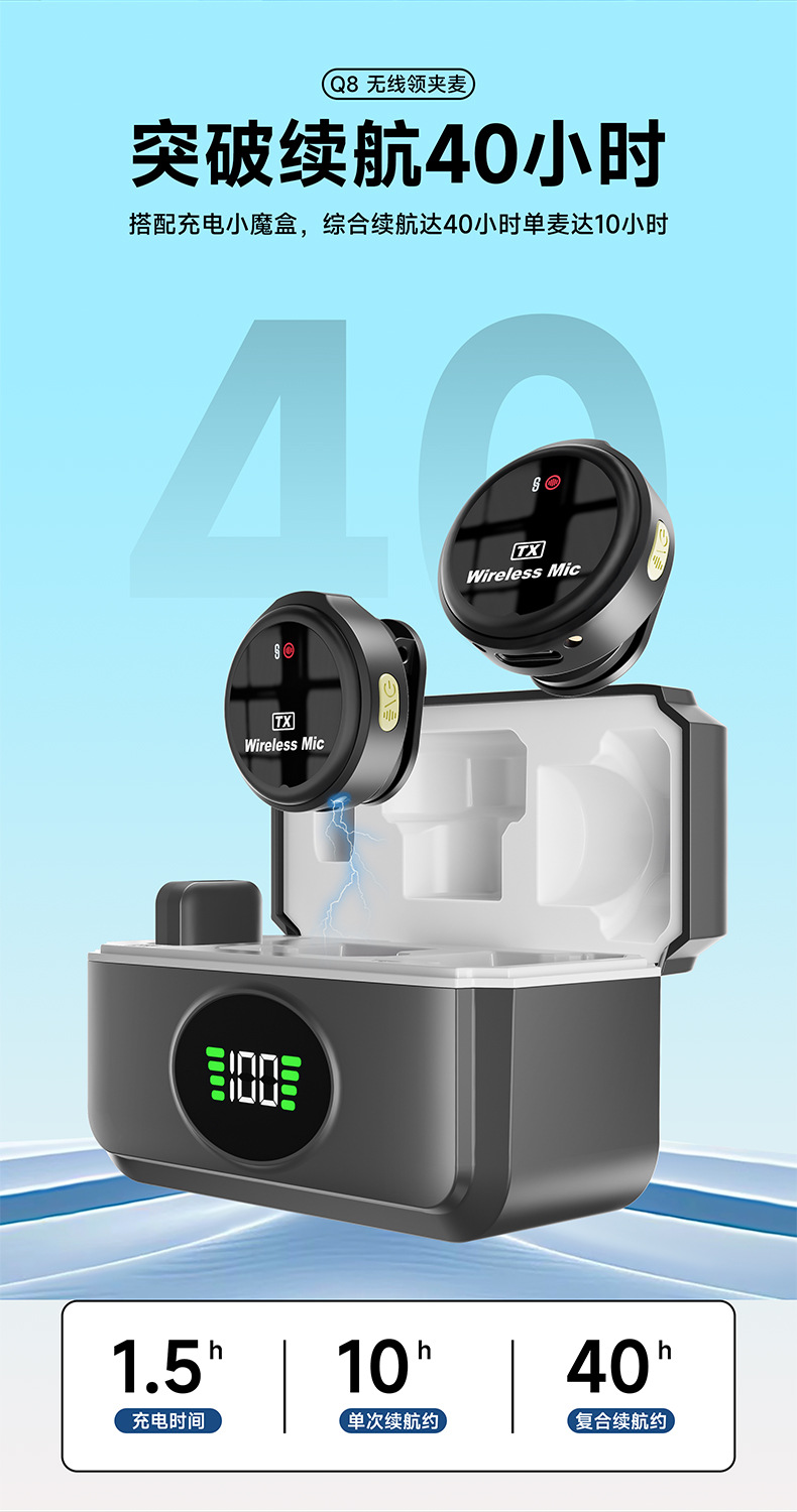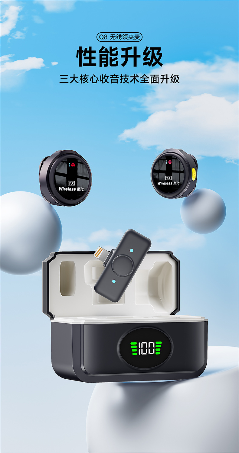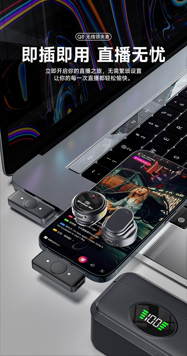 국경 간 새로운 개인 모델 Q8 무선 칼라 클립 마이크 AI 지능형 소음 감소 라운드 버튼 형 자기 흡입 라이브 마이크스토어 가기