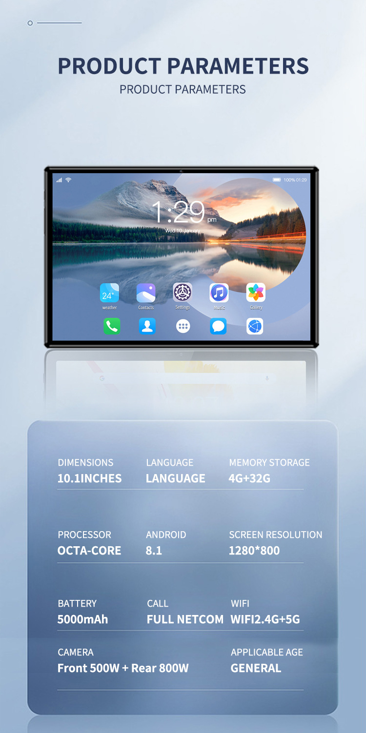 국경 10.1 인치 H90 태블릿 재고 도매 안드로이드 와이파이 HD 눈 보호 음성 게임스토어 가기