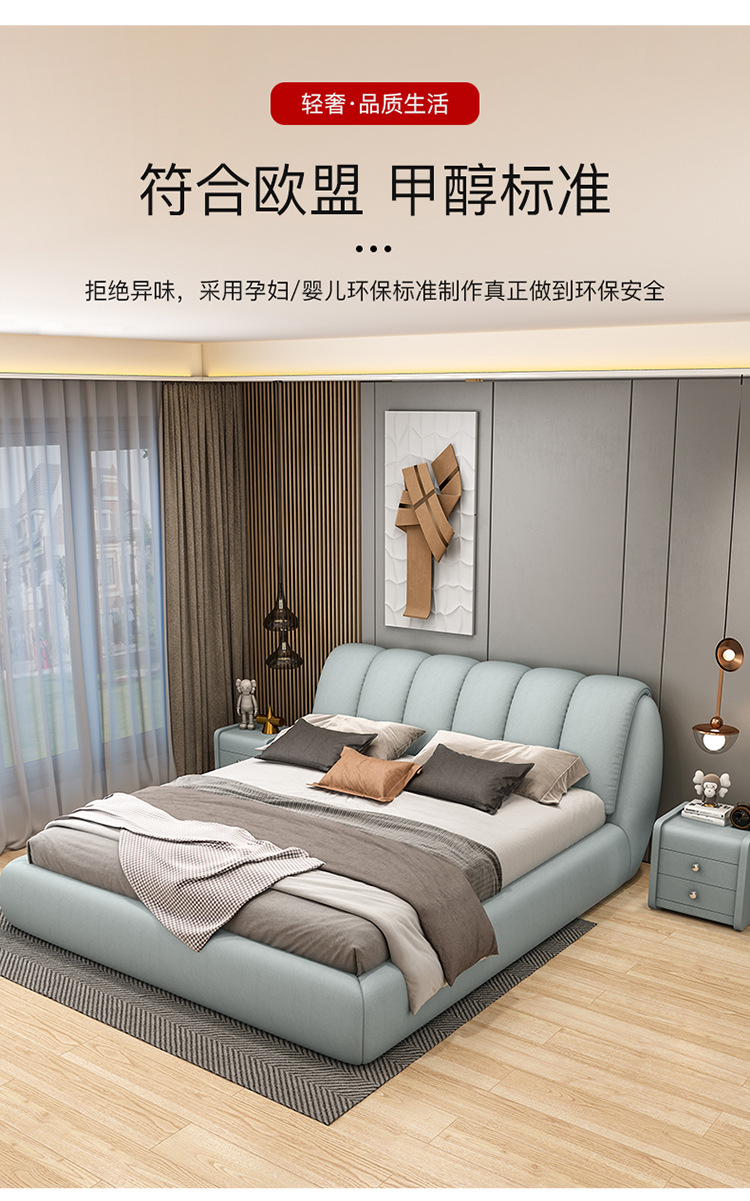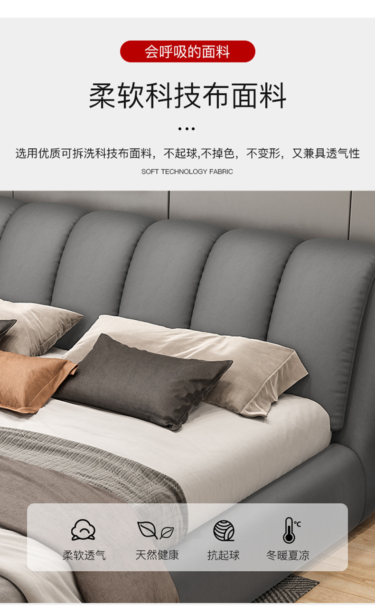 기술 헝겊 침대 북유럽 마스터 침실 더블 간단한 현대 웨딩 침대 소프트 백 1.8 m 단단한 나무 빛 럭셔리 인터넷 연예인 천 침대스토어 가기