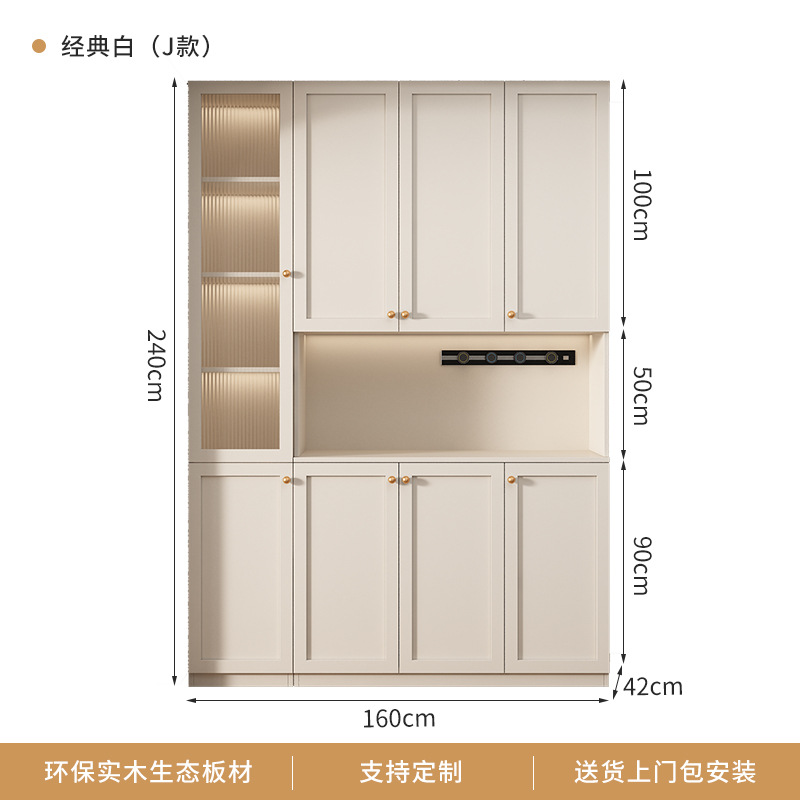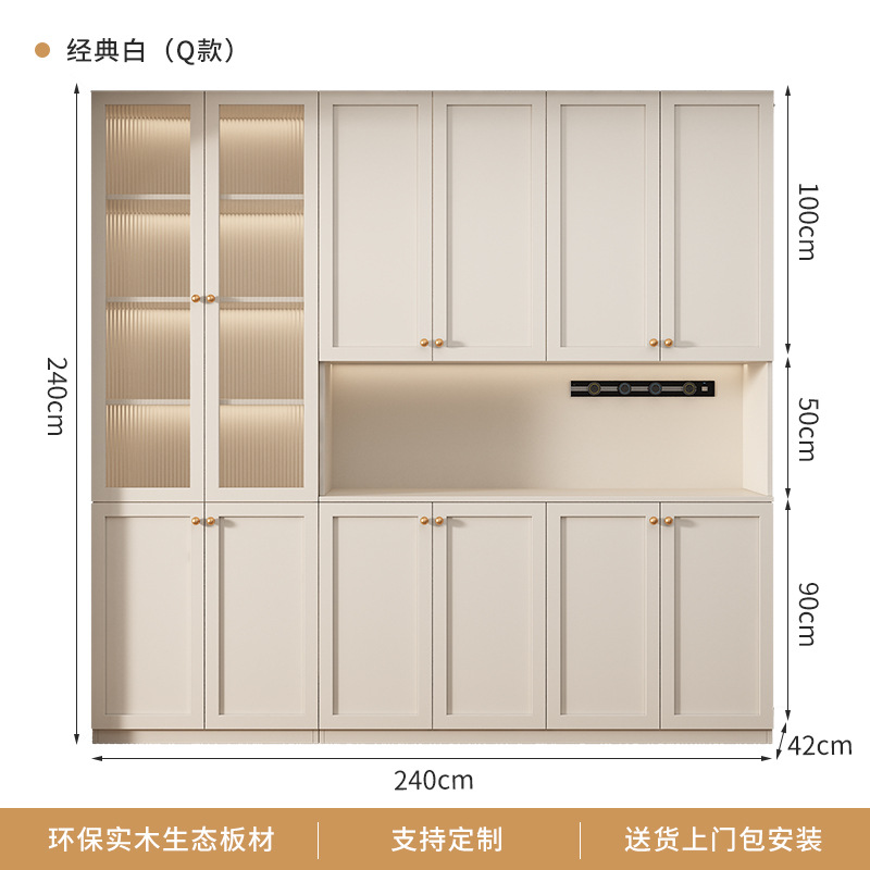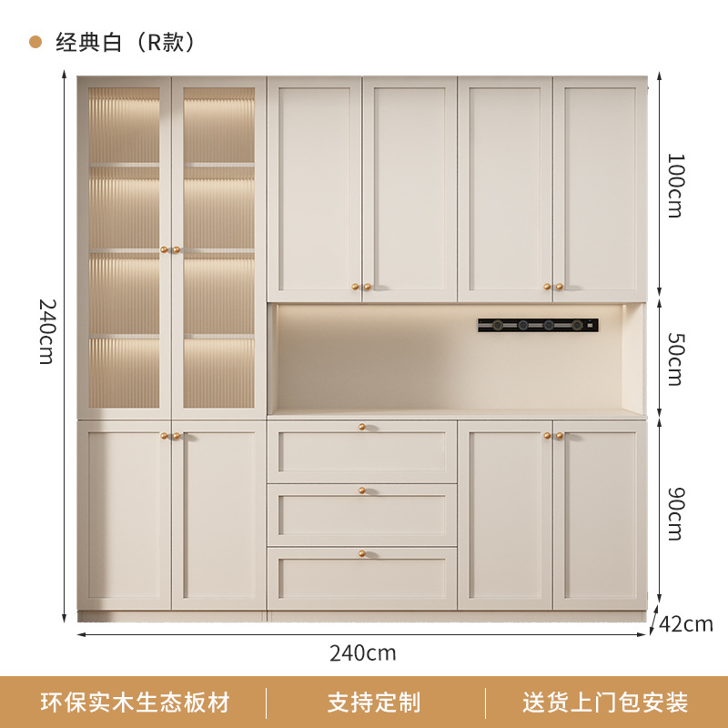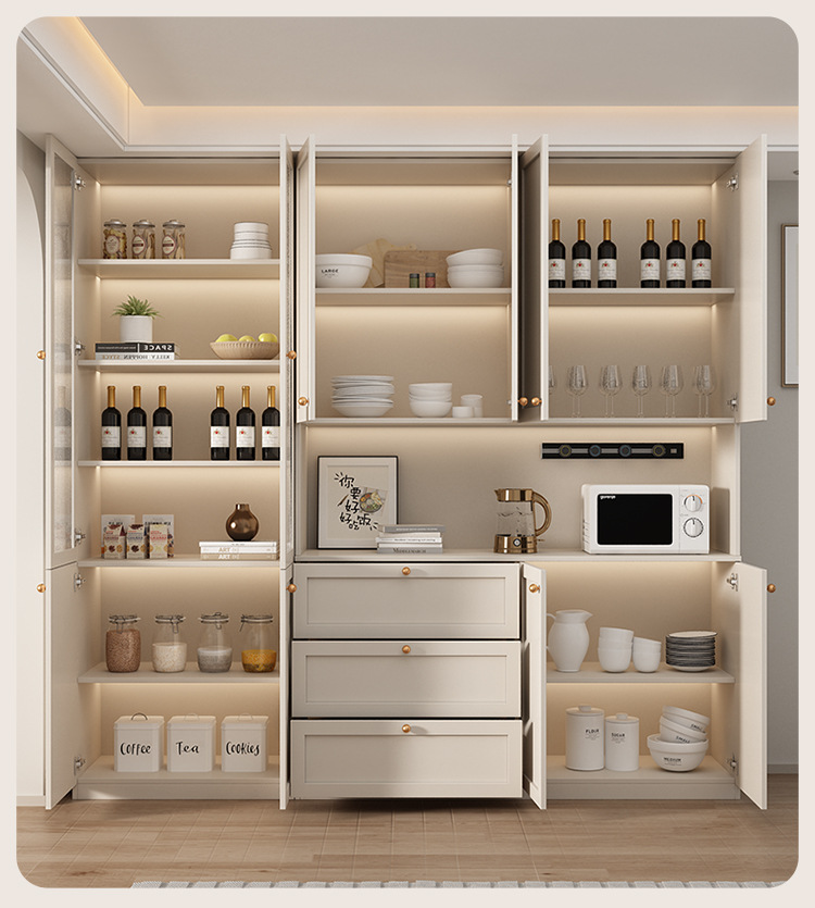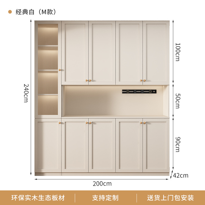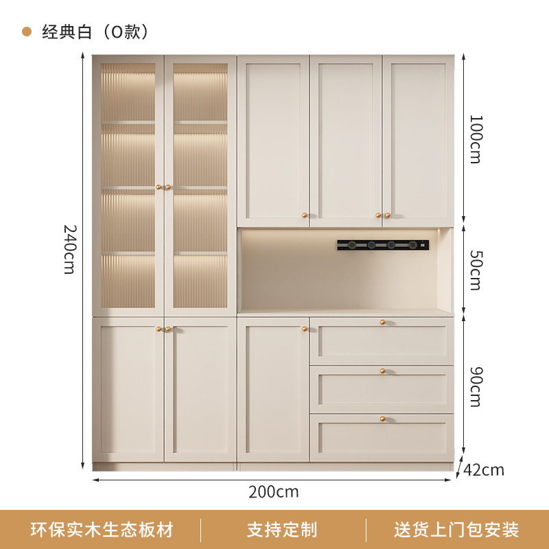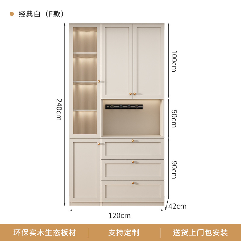 프랑스 크림 스타일 사이드 보드 거실 주방 캐비닛 와인 캐비닛 거실 벽면 통합 솔리드 우드 다기능 레스토랑 스토리지 캐비닛