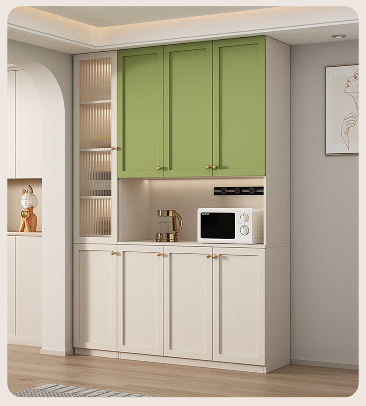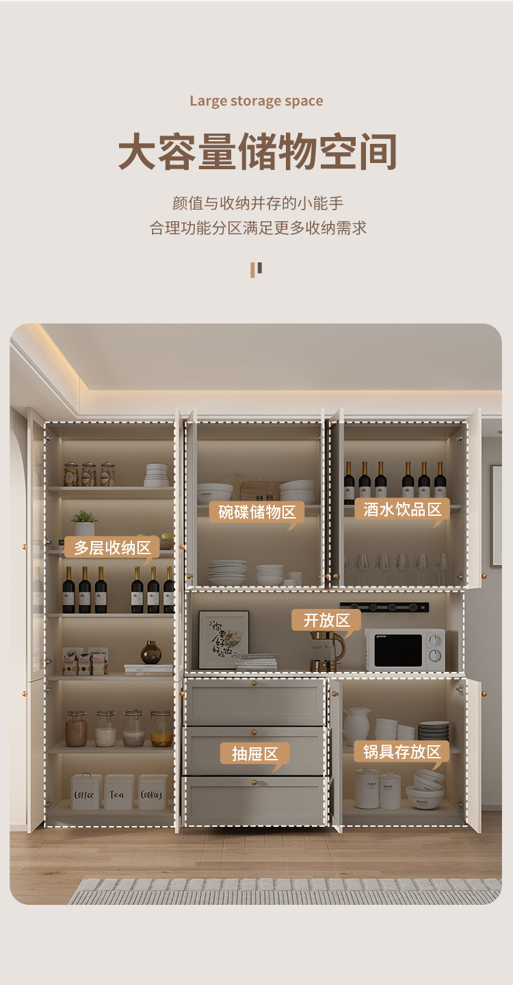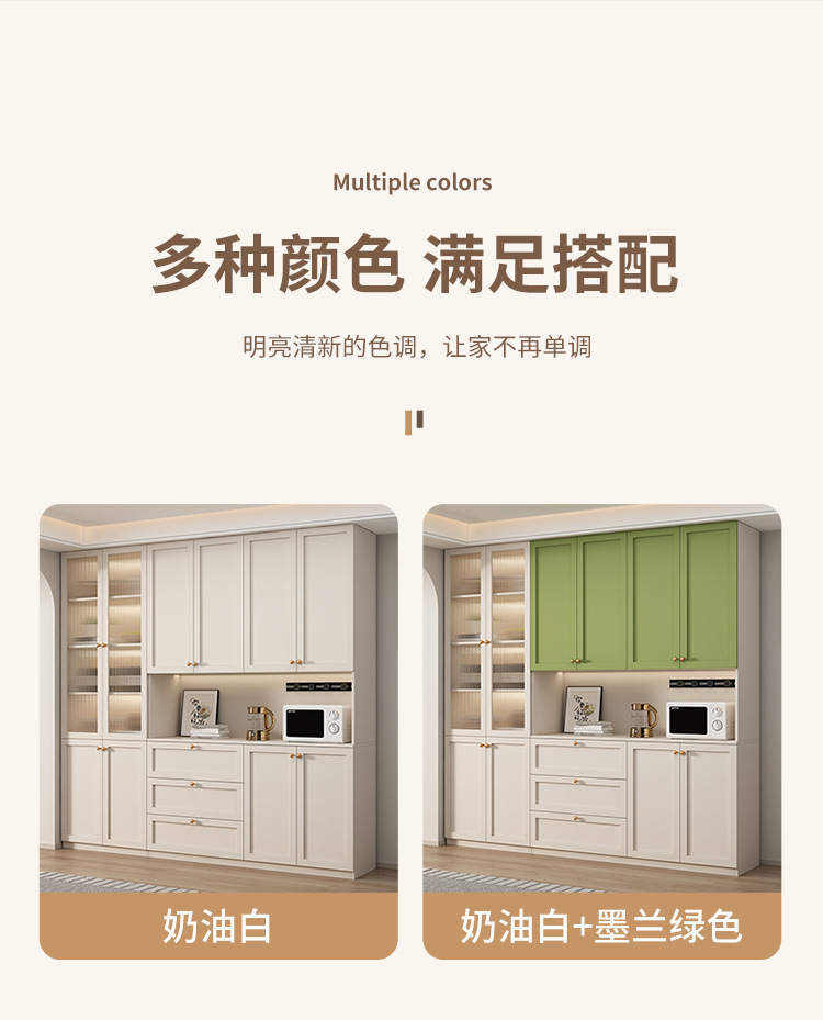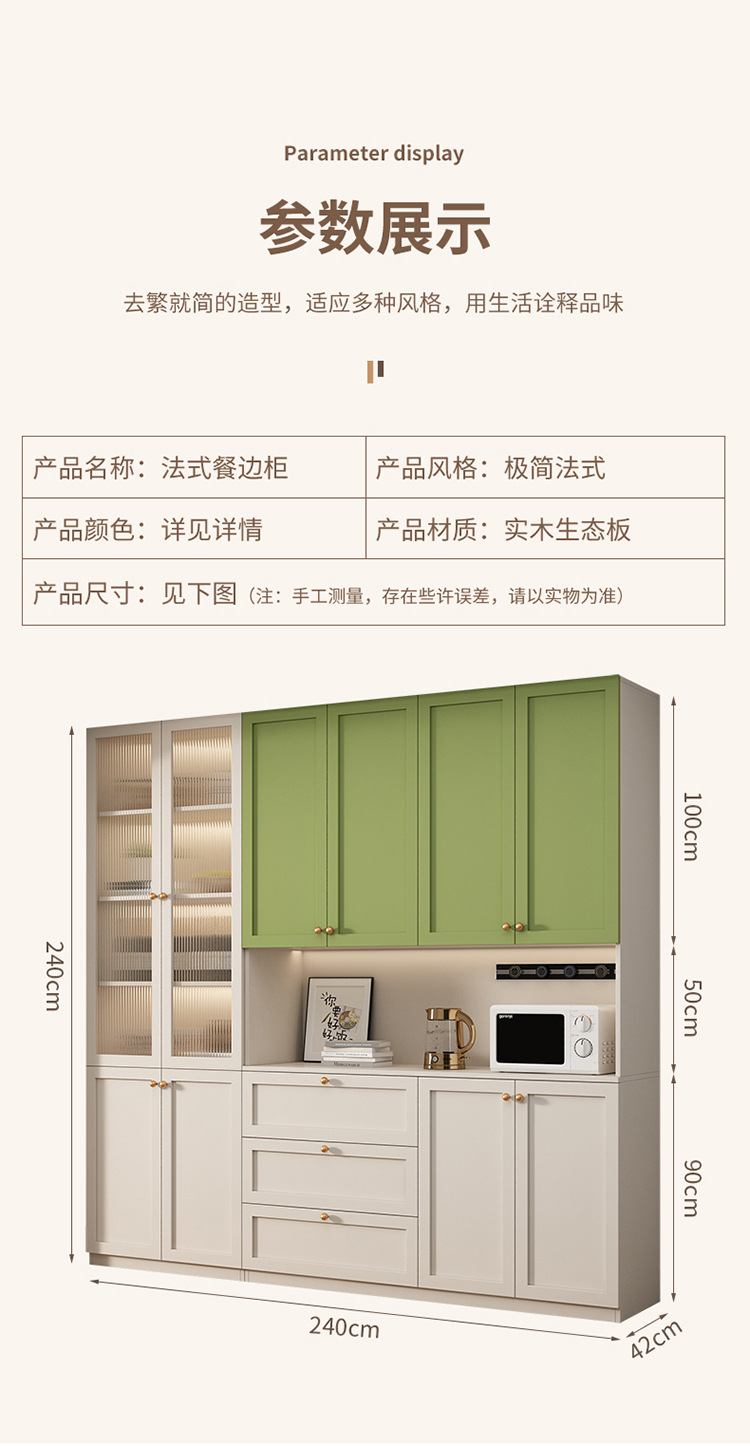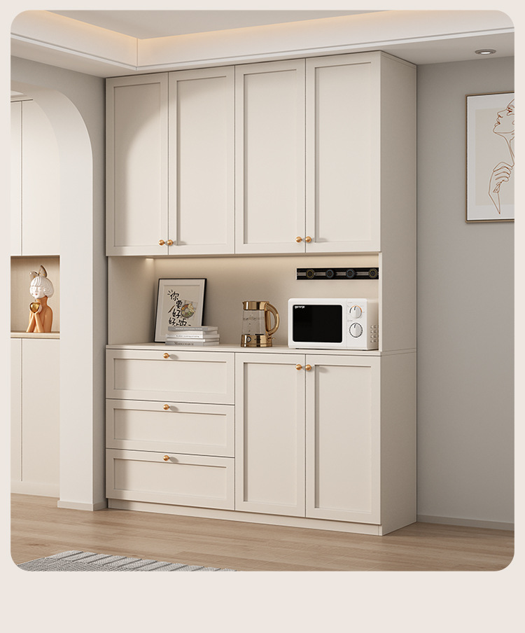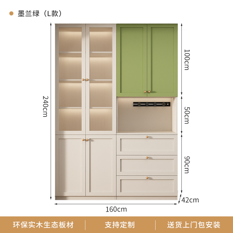 프랑스 크림 스타일 사이드 보드 거실 주방 캐비닛 와인 캐비닛 거실 벽면 통합 솔리드 우드 다기능 레스토랑 스토리지 캐비닛