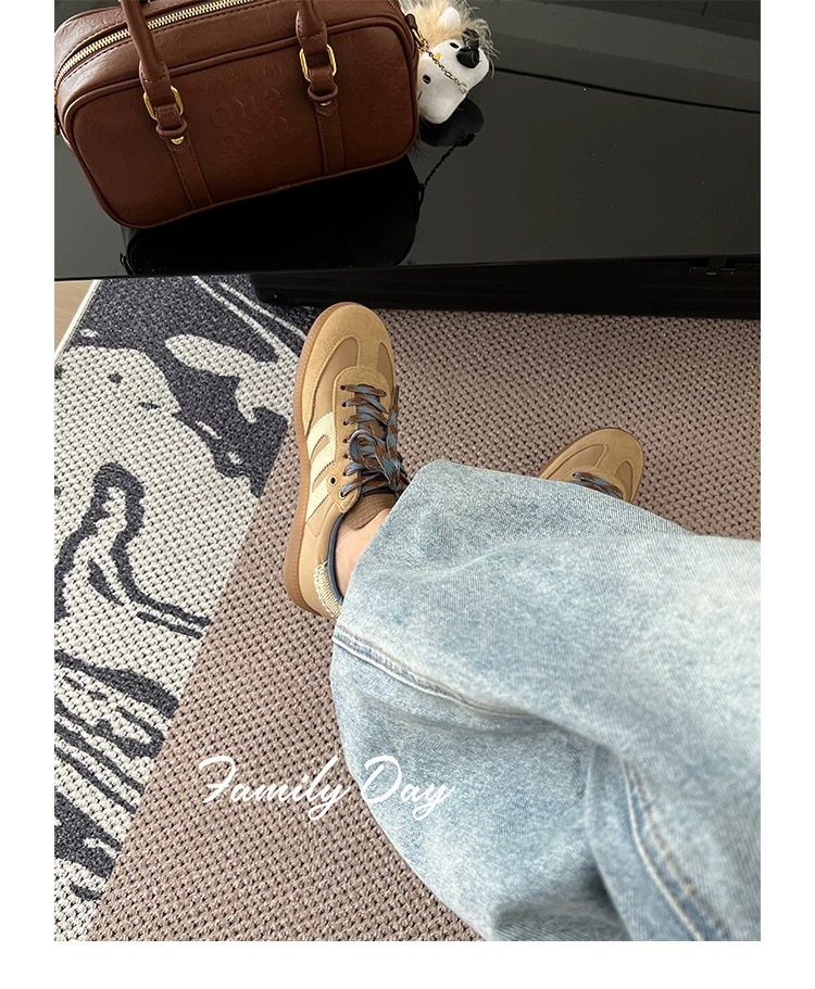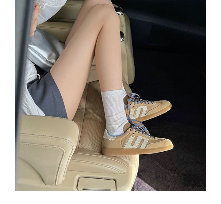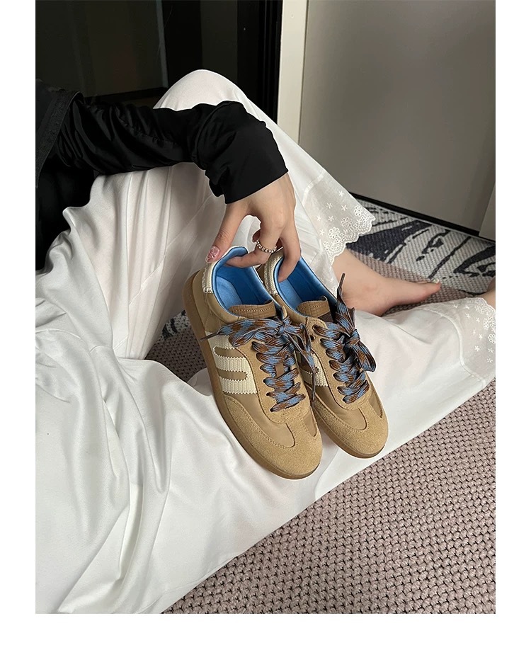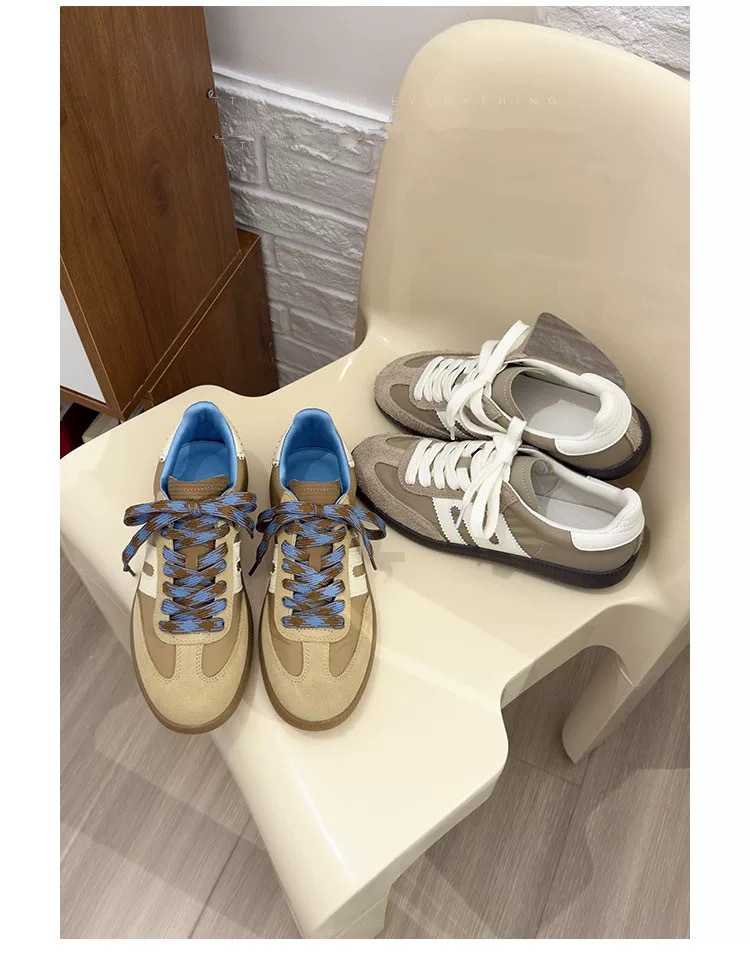 미국 레트로 스타일 소프트 가죽 배색 스포츠 캐주얼 데일리 슈즈 여성용 2025 신상 플랫 바닥 만능 아가니 슈즈 스니커즈스토어 가기
