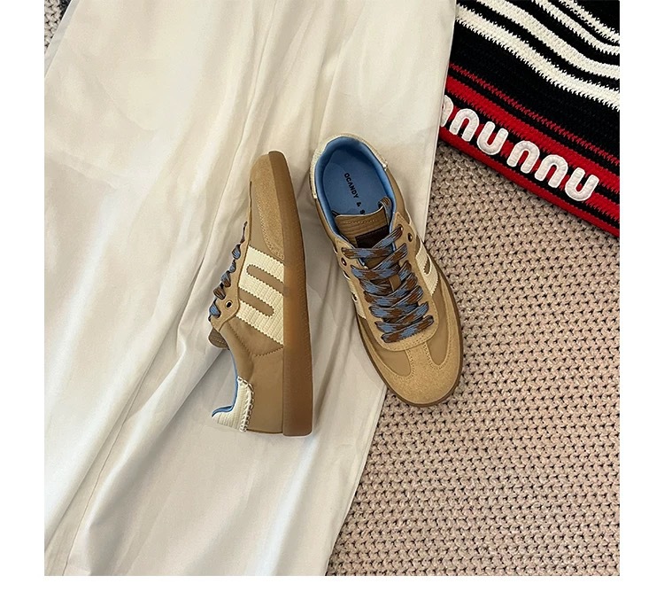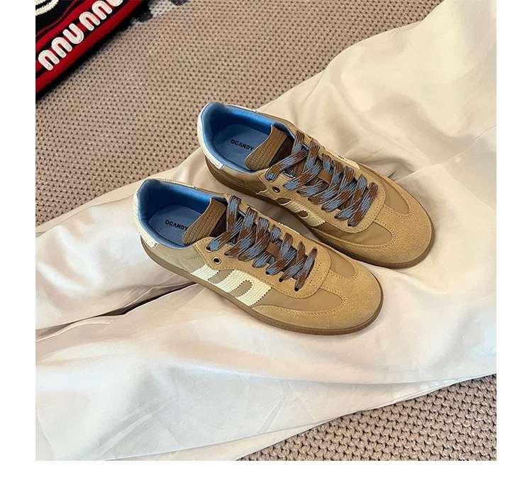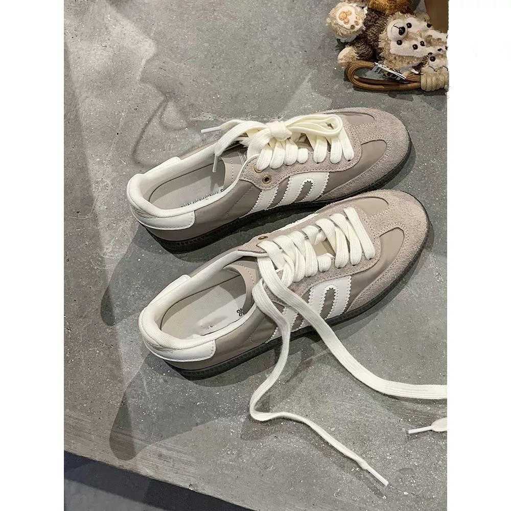 미국 레트로 스타일 소프트 가죽 배색 스포츠 캐주얼 데일리 슈즈 여성용 2025 신상 플랫 바닥 만능 아가니 슈즈 스니커즈