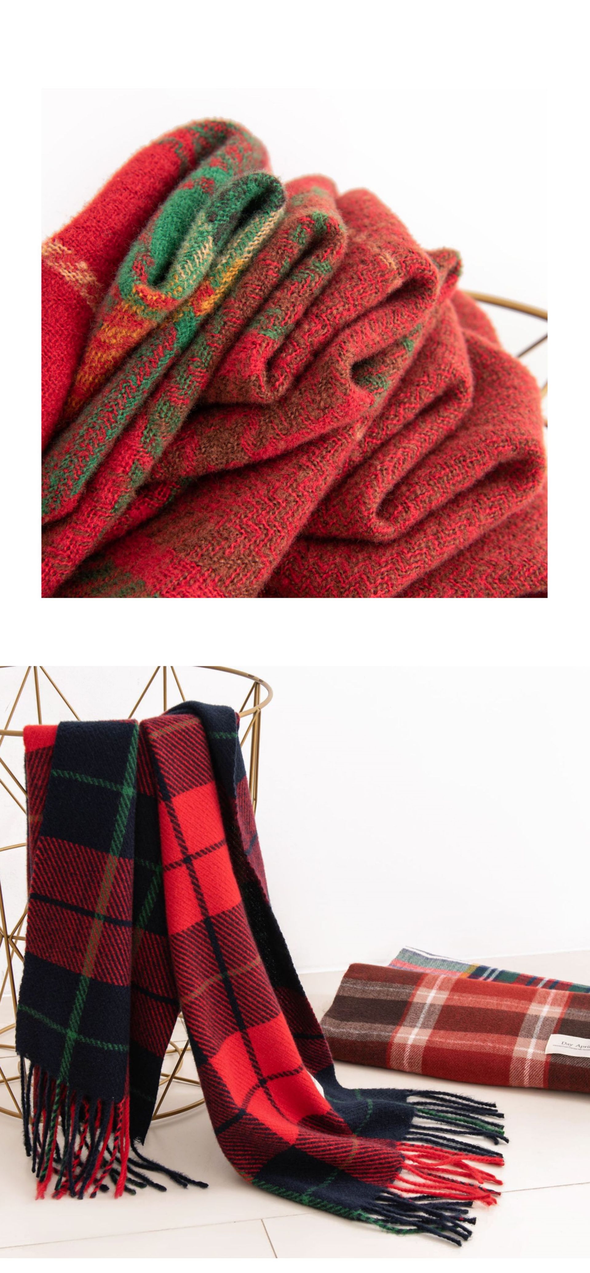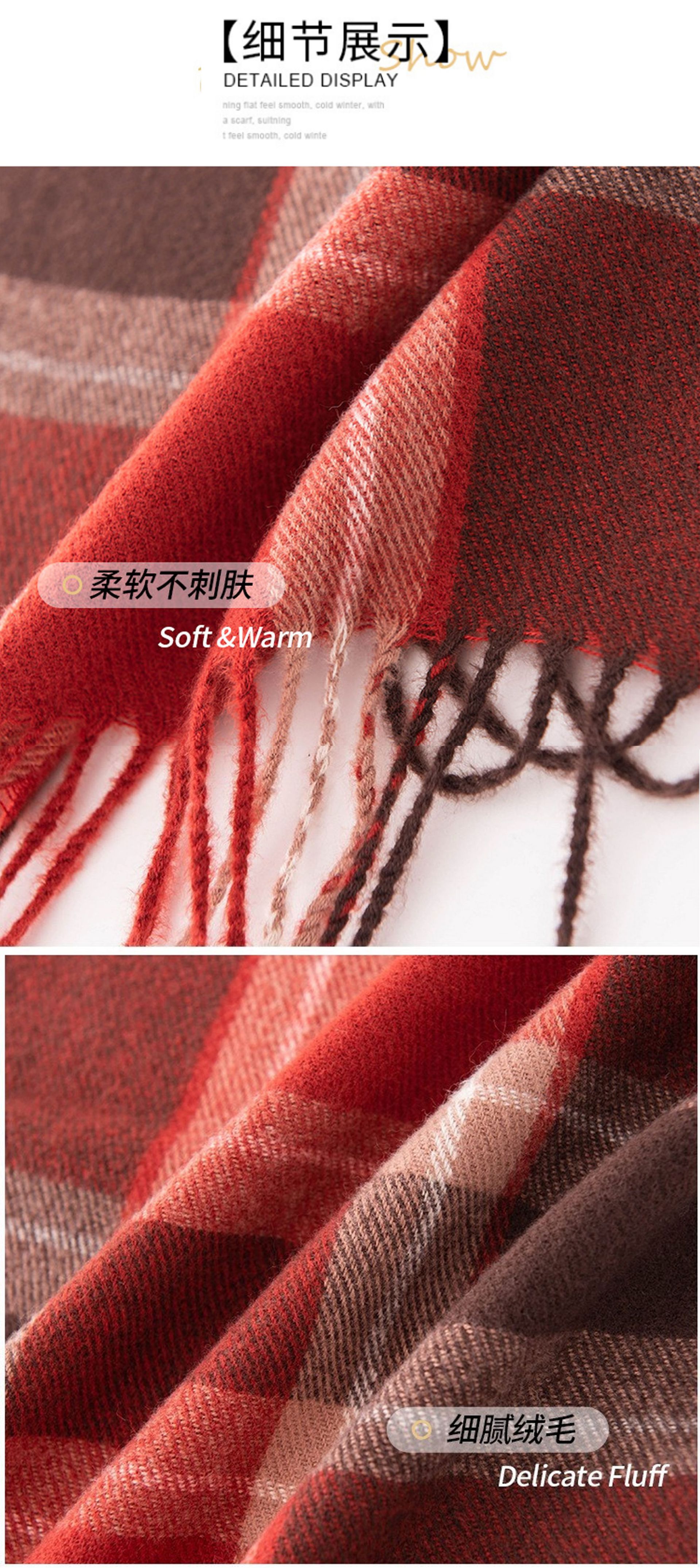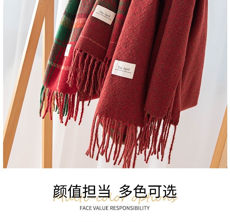 가을 겨울 신년 스카프, 분위기 있는 인조 캐시미어 여성용 고급 체크무늬 레드 신년 겨울 따뜻한 넥워머 도매스토어 가기