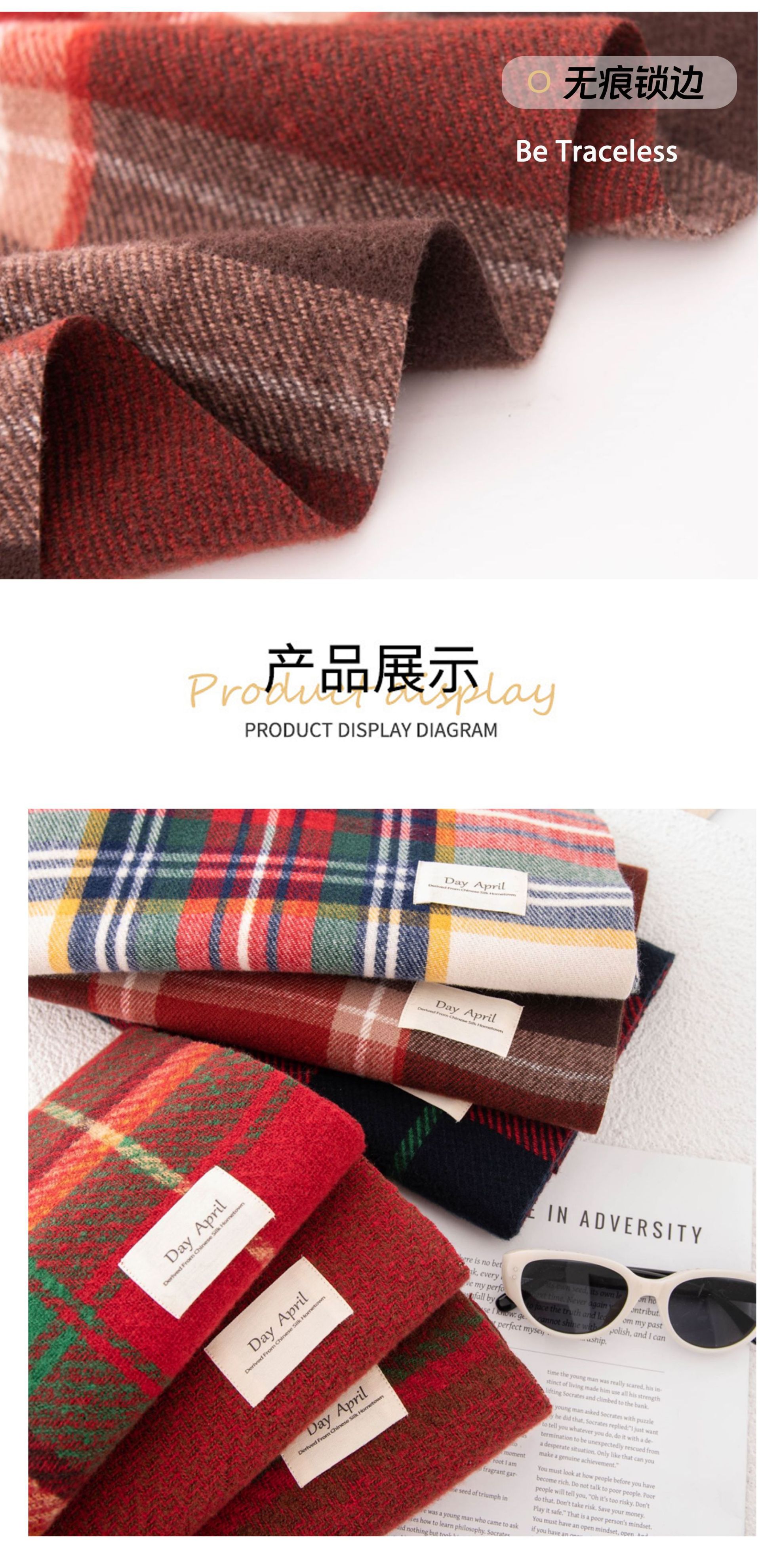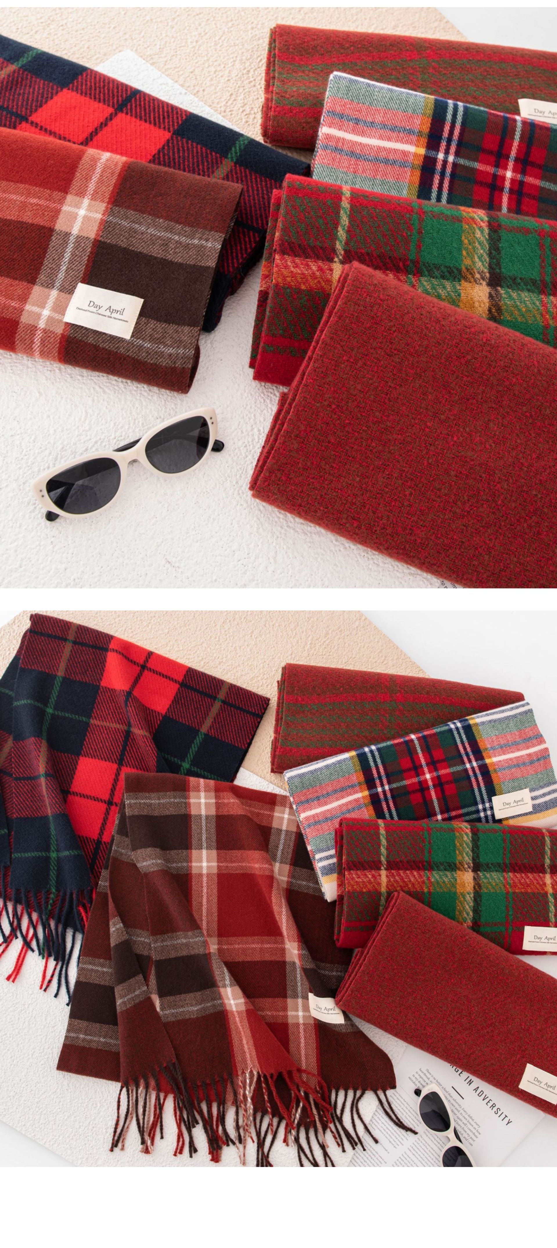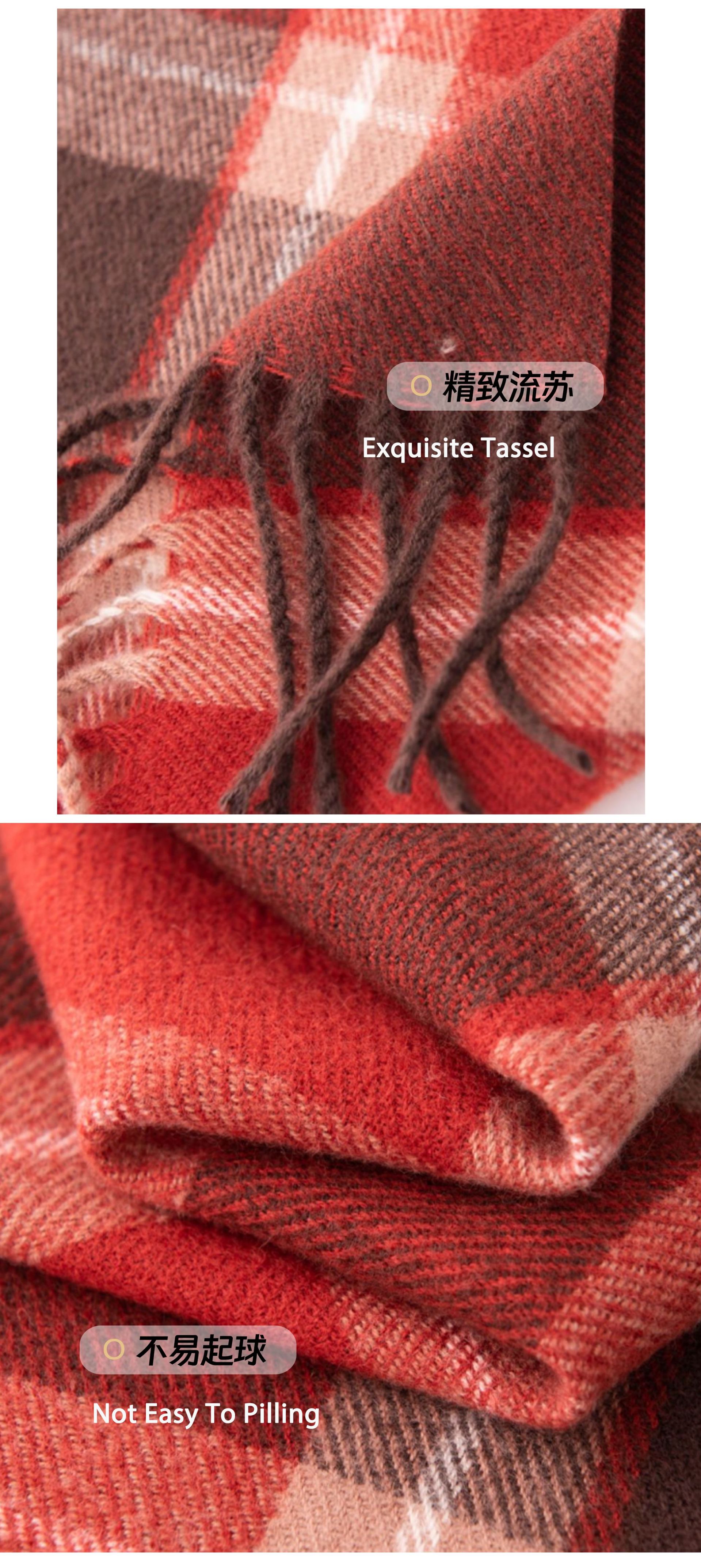 가을 겨울 신년 스카프, 분위기 있는 인조 캐시미어 여성용 고급 체크무늬 레드 신년 겨울 따뜻한 넥워머 도매스토어 가기