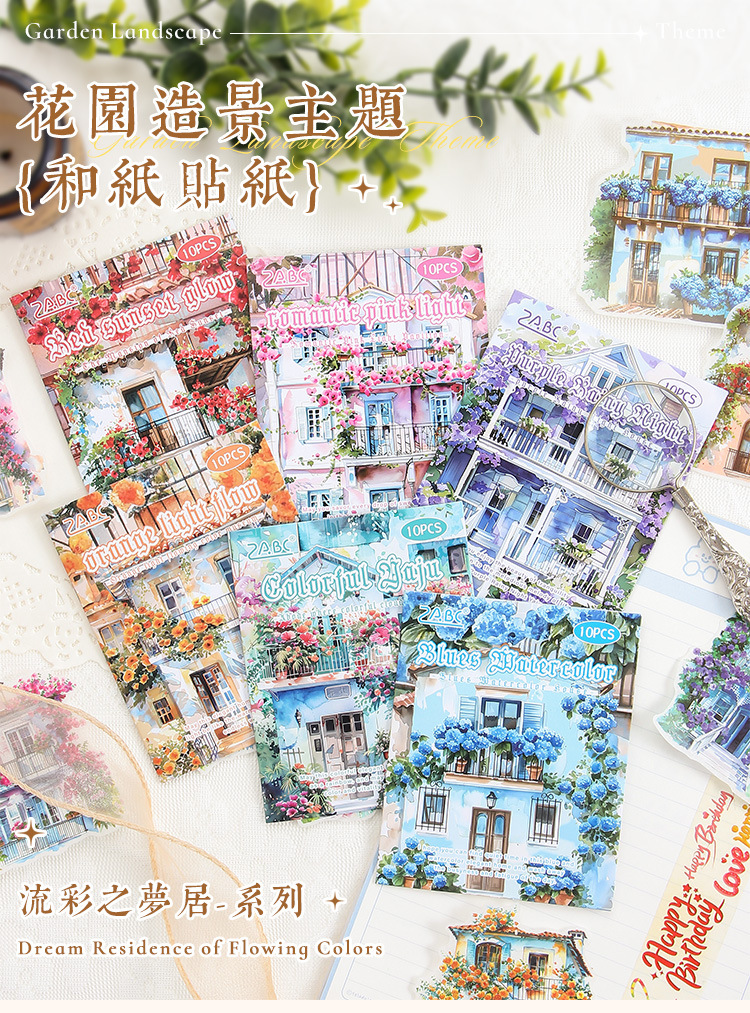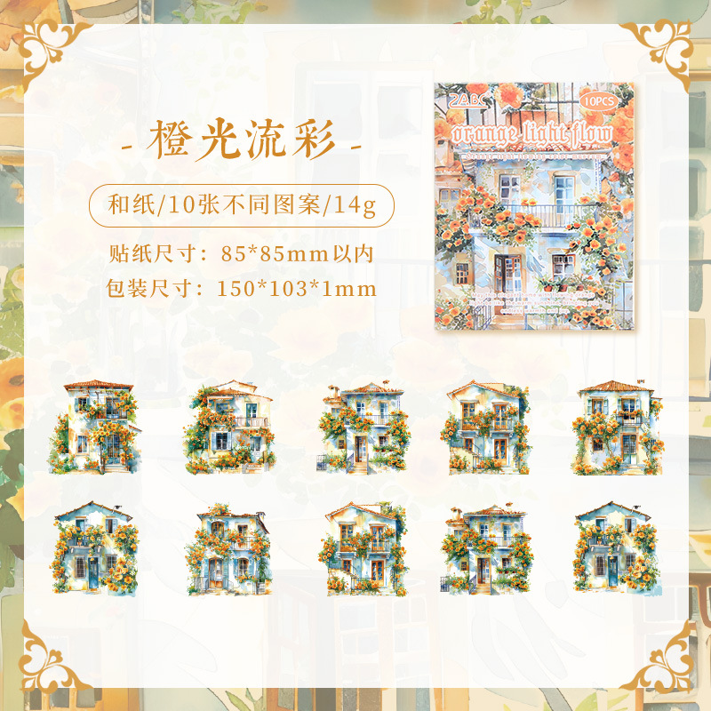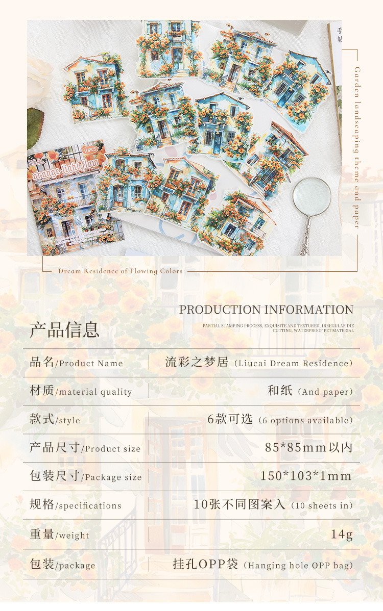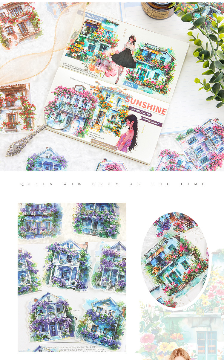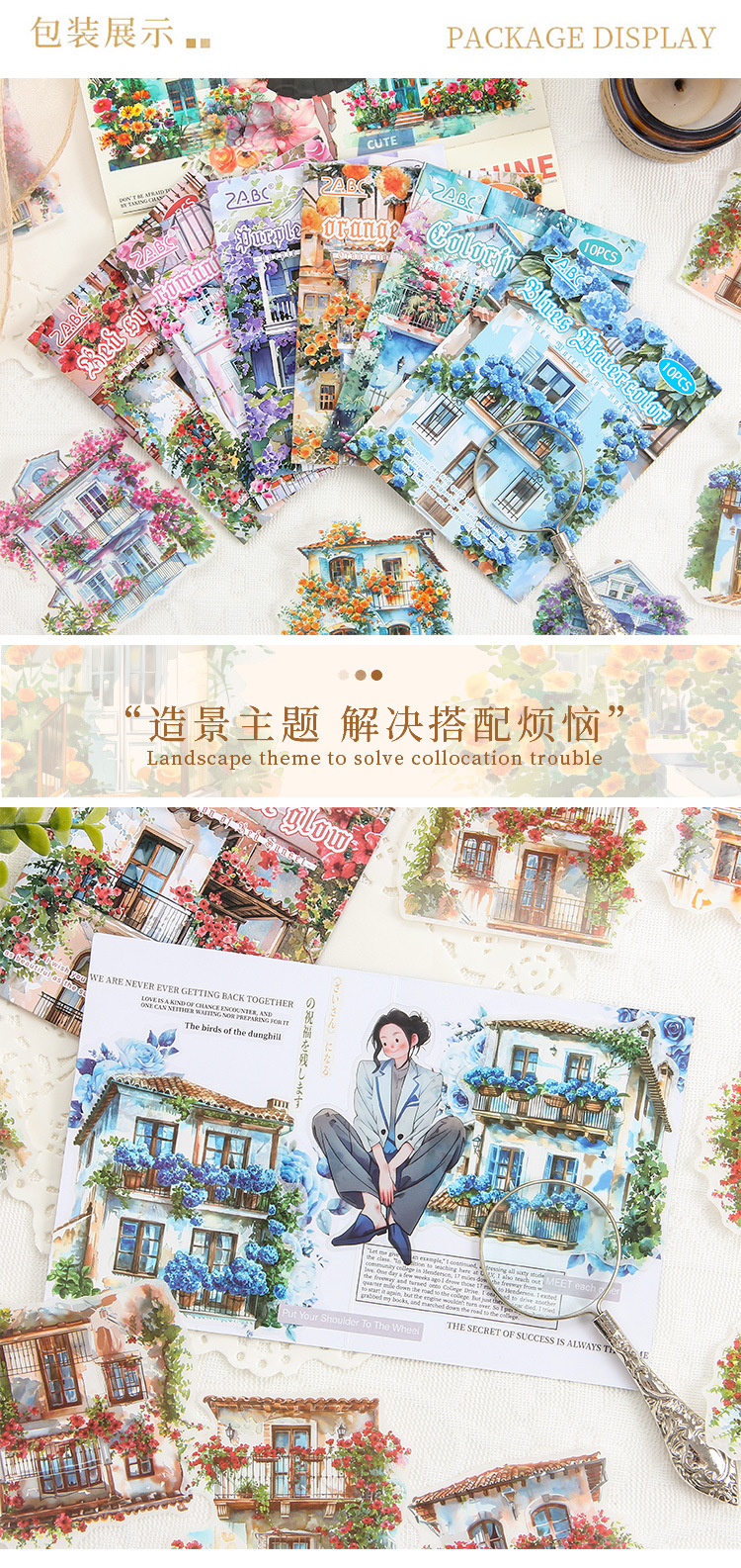 Liucai Mengju 특수 오일 및 종이 스티커 diy 핸드북 일기 장식 재료 건축 목회 시리즈 스티커