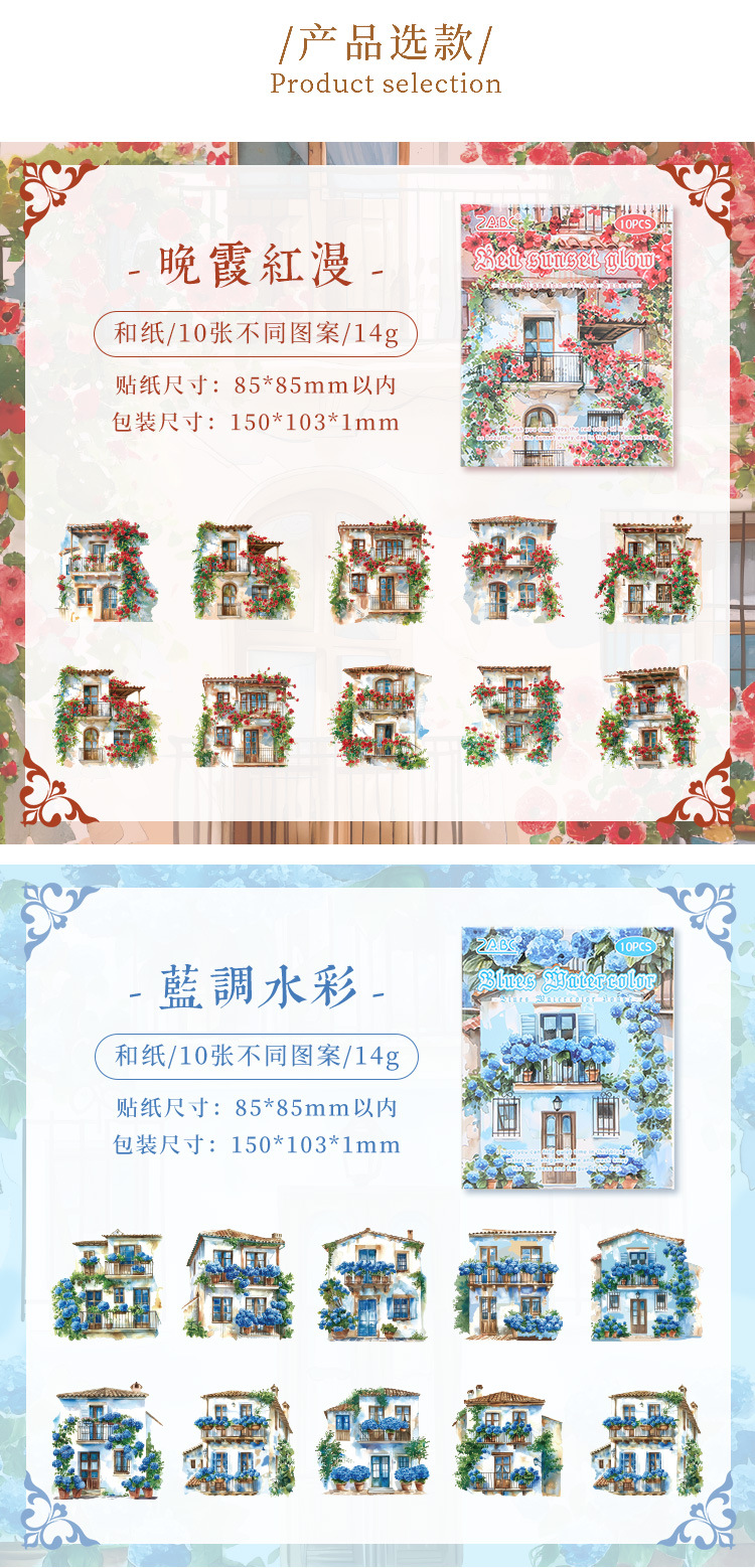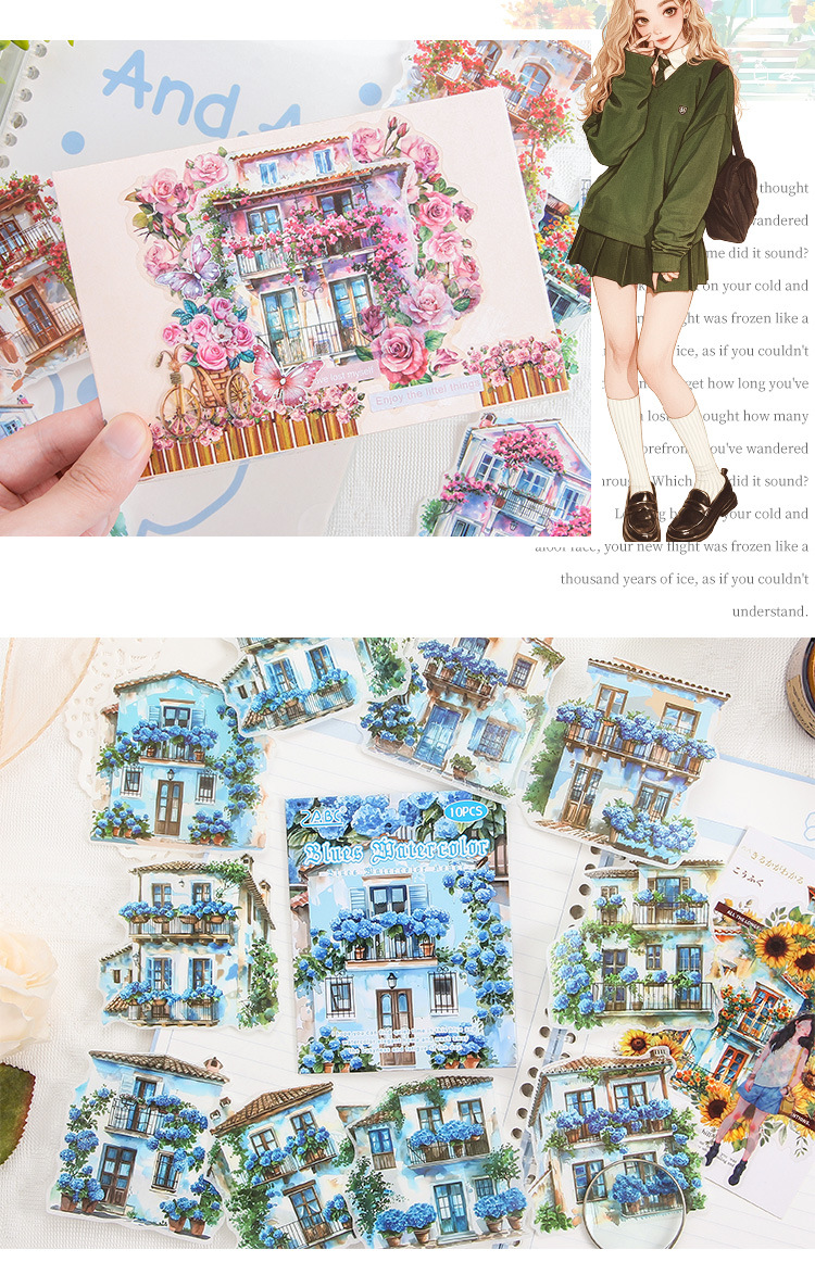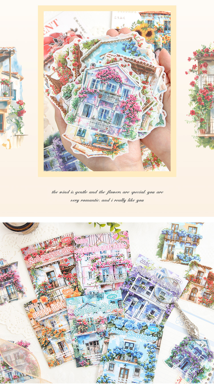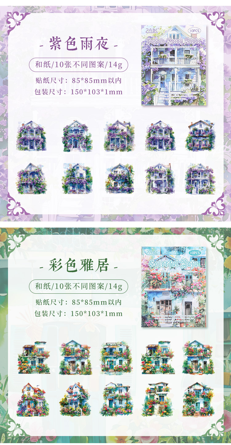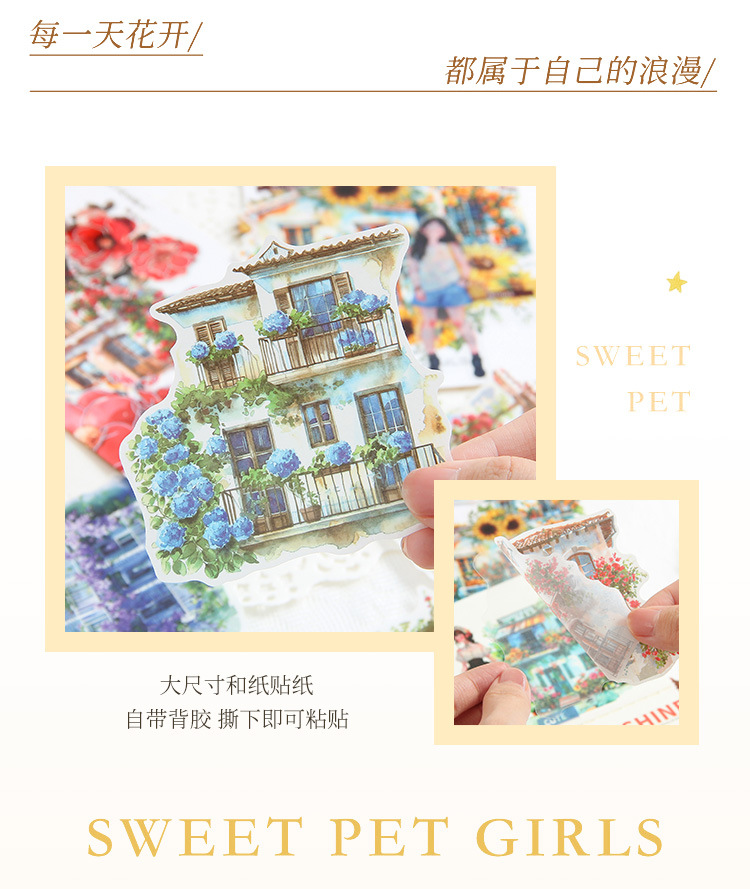 Liucai Mengju 특수 오일 및 종이 스티커 diy 핸드북 일기 장식 재료 건축 목회 시리즈 스티커
