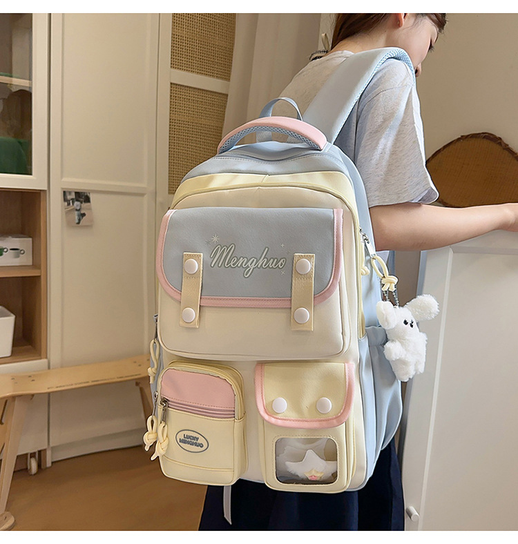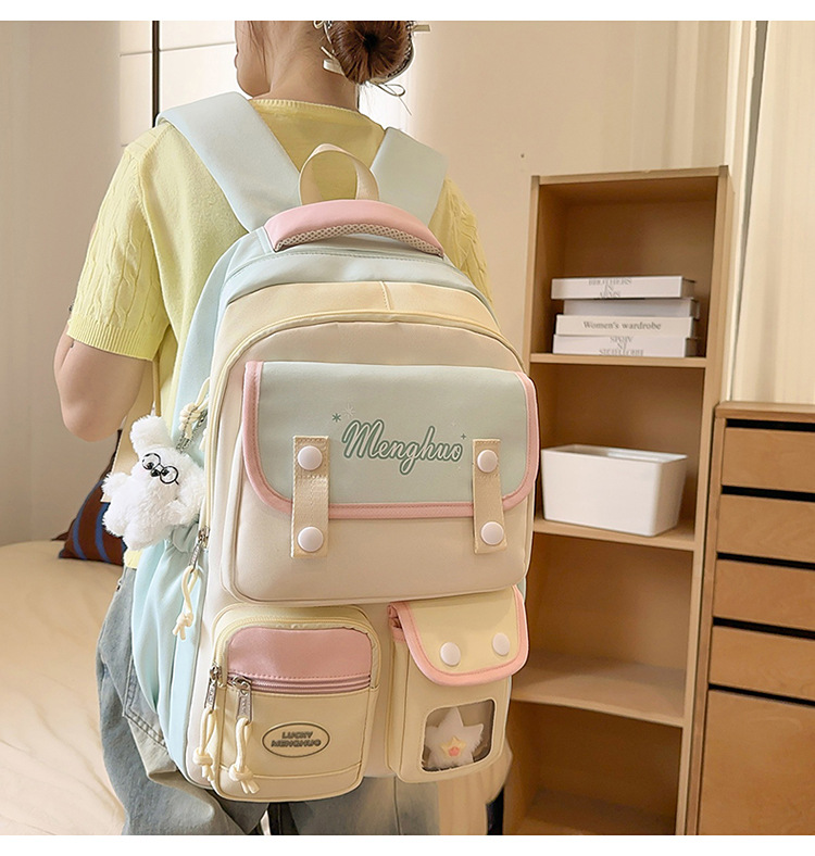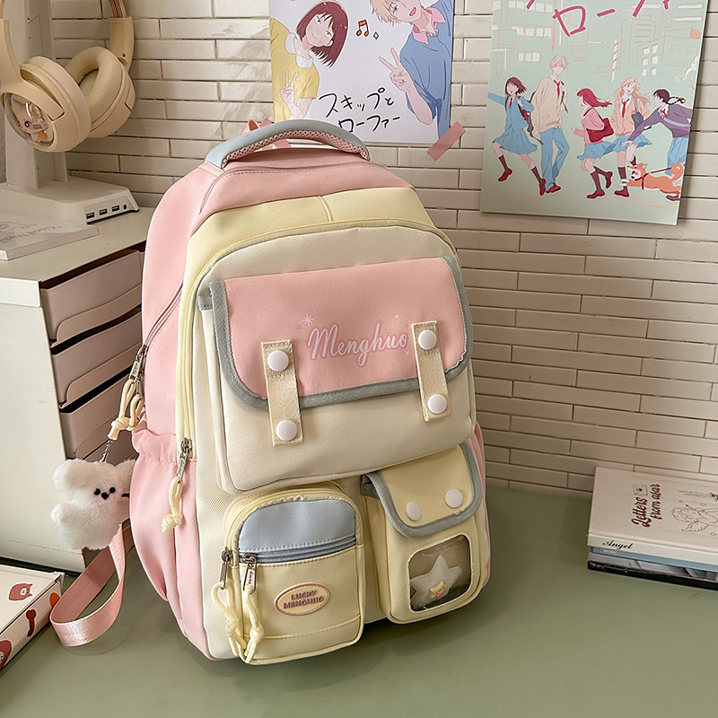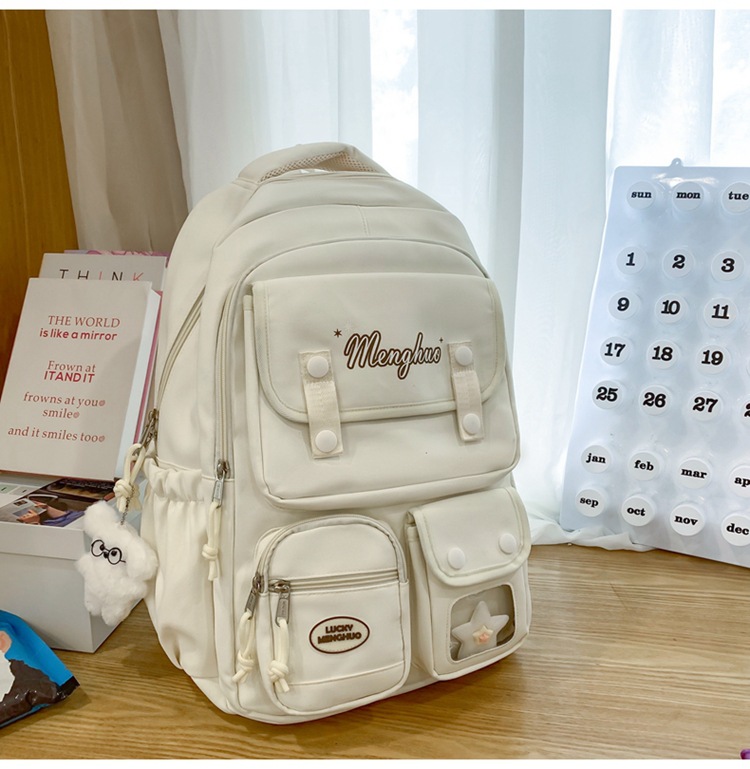 부드러운 소녀 작은 신선한 학교 가방 한국 대학 스타일 배낭 멀티 레이어 디자인 센스 여성 중학교 학생 솔리드 컬러 배낭스토어 가기