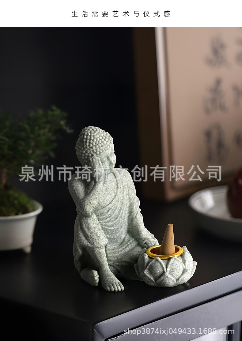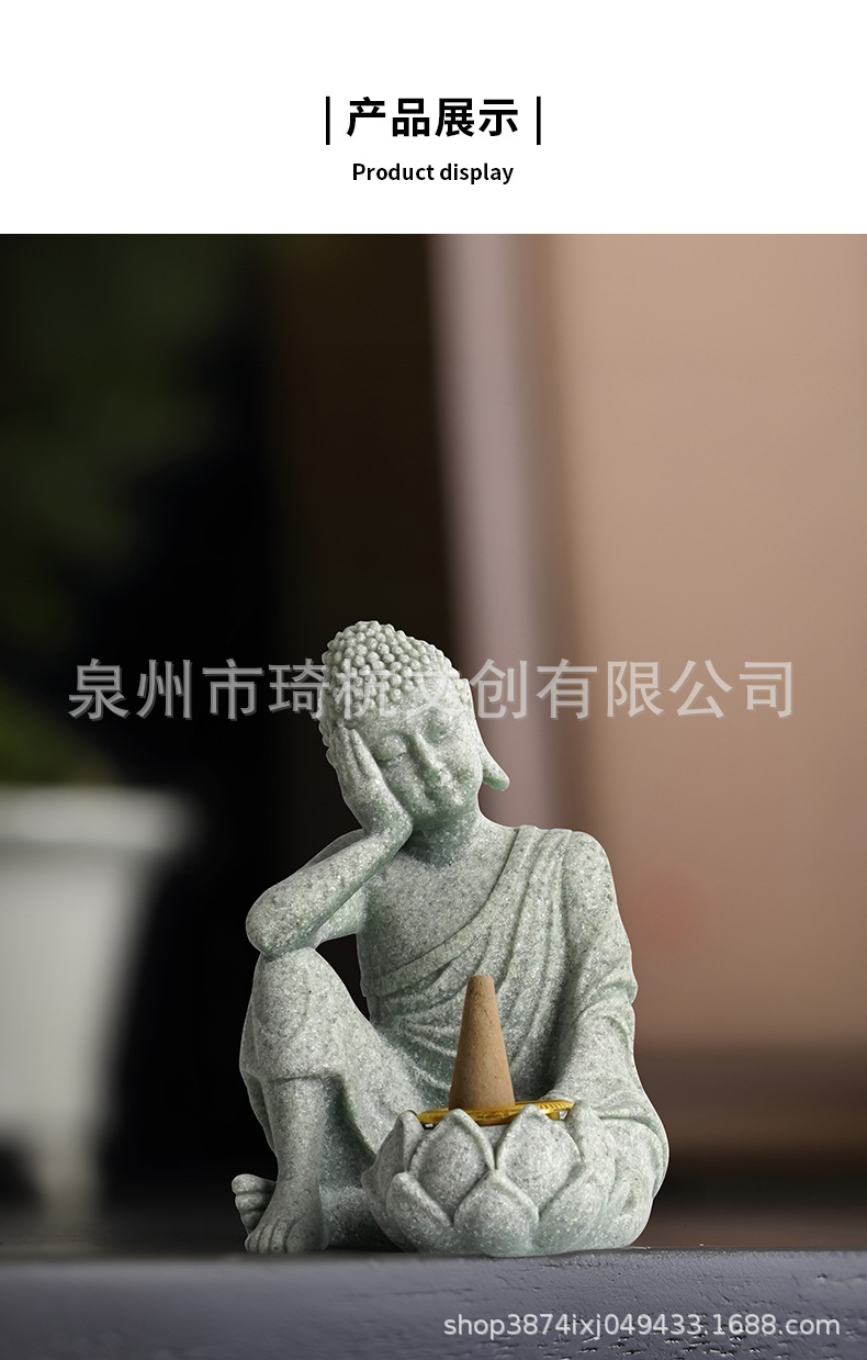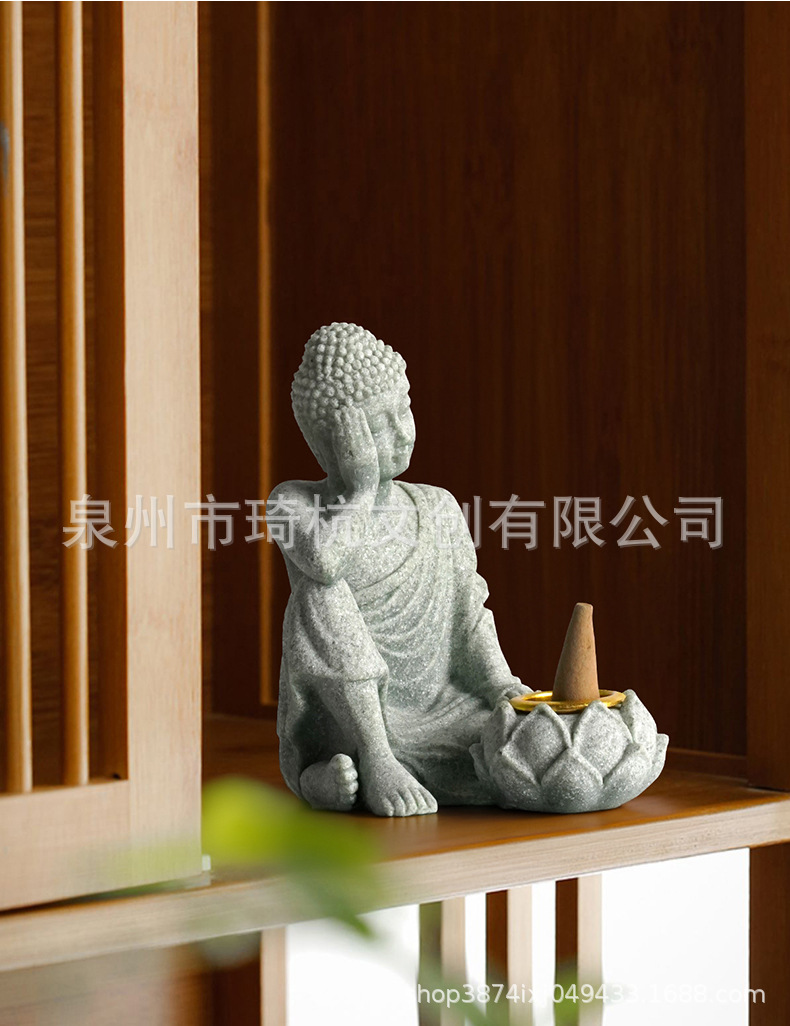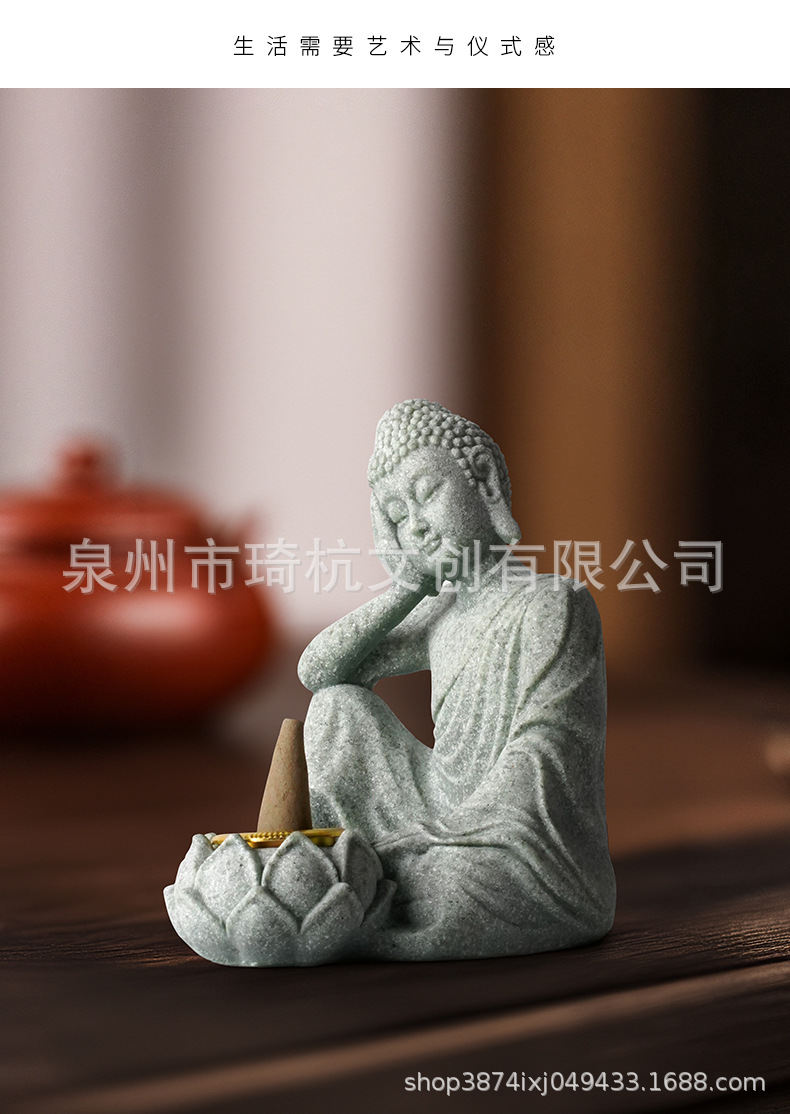 새로운 중국 선 부처 앉아 자세 장식 창조적 인 녹색 모래 돌 차 애완 동물 데스크탑 물고기 탱크 풍경 홈 장식스토어 가기