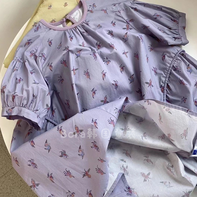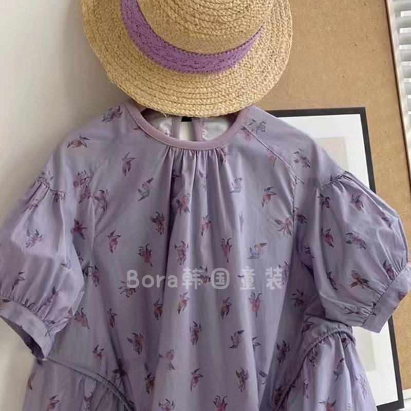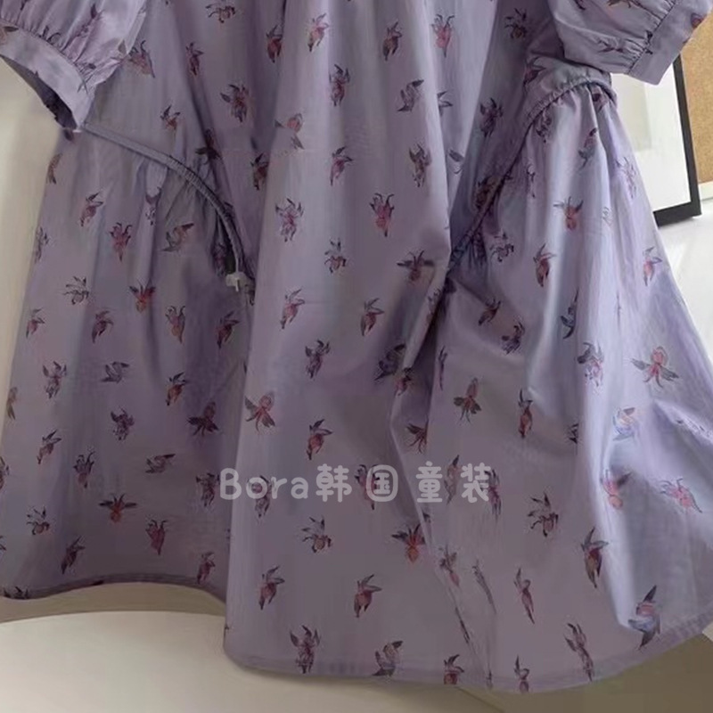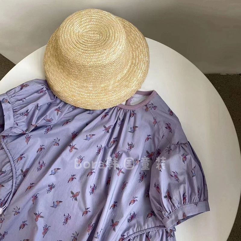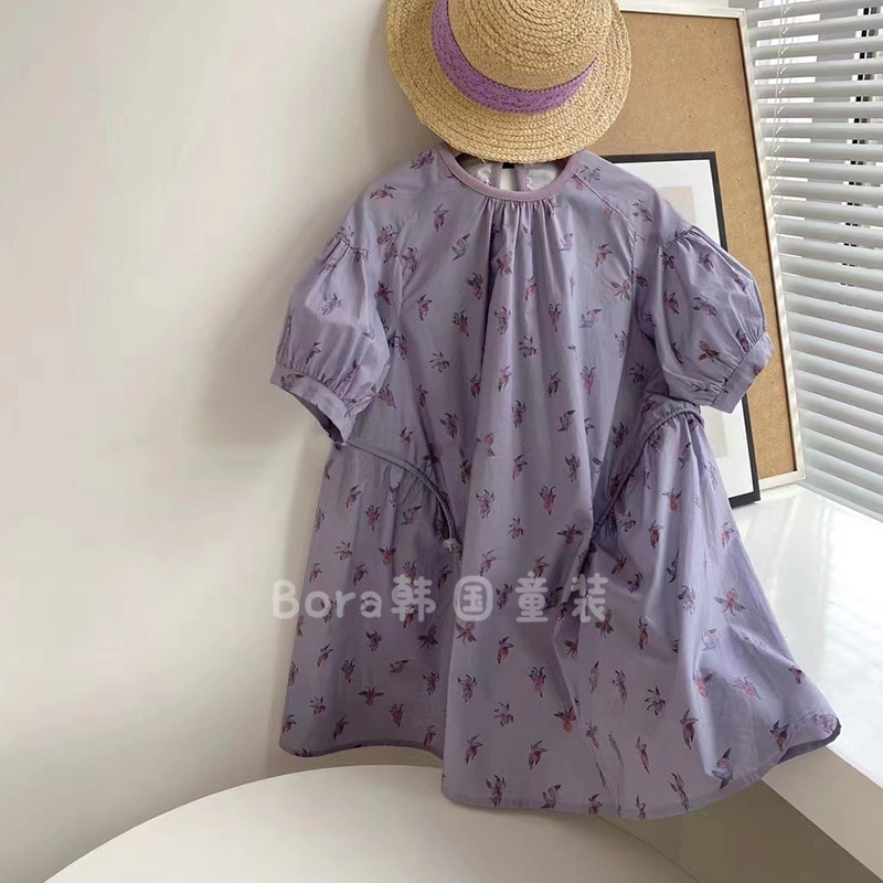 보라 한국 아동복 소녀 어린이 원피스 2024 새로운 여름 중 큰 아이 캐주얼 꽃 공주 원피스