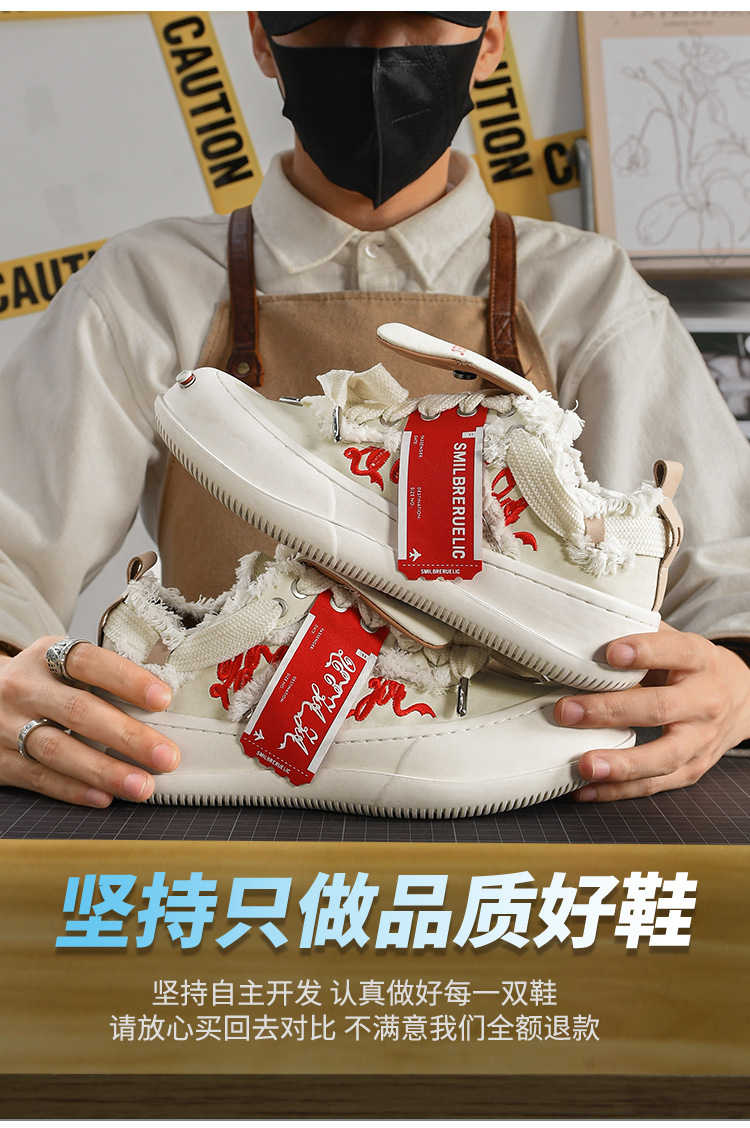 Tan Jianci의 동일한 스타일 오픈 스마일 캐주얼 캔버스 슈즈 2024 여름 신상 두꺼운 밑창 미끄럼 방지 슬립온 스니커즈