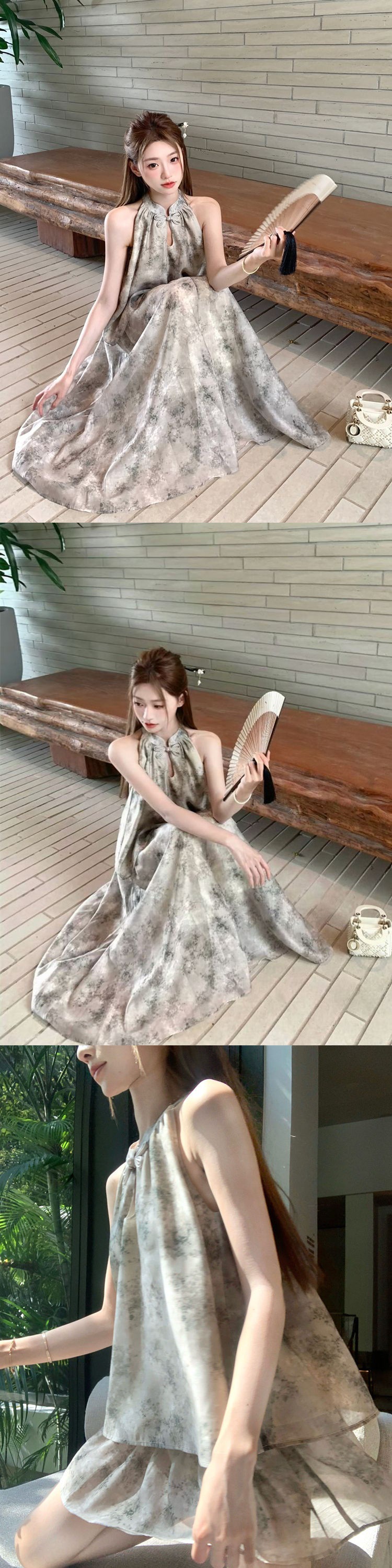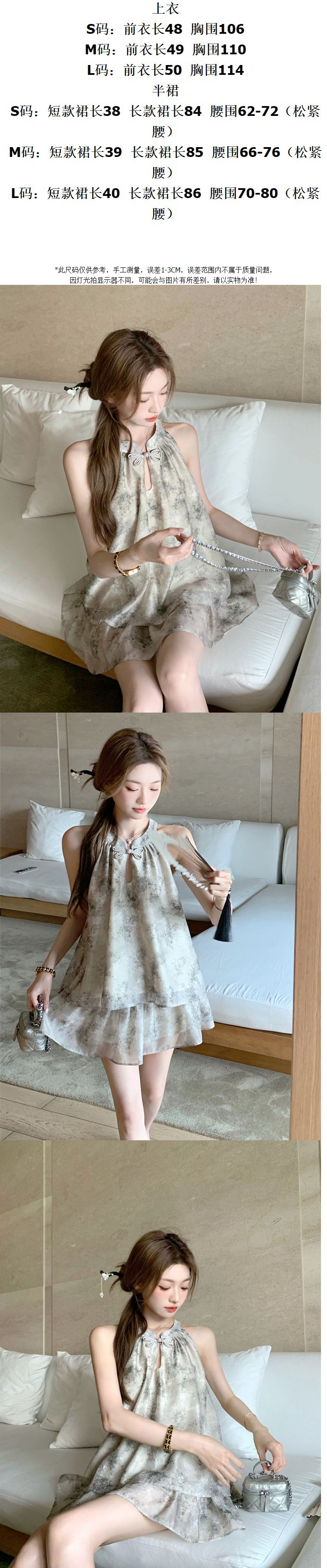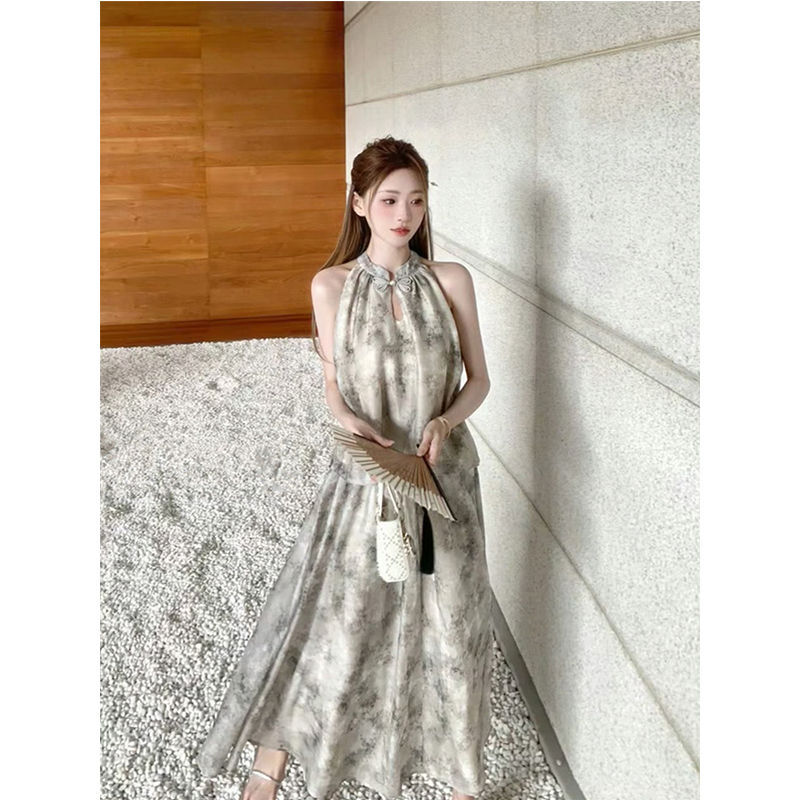 Guofeng 민소매 홀터 탑 스커트 새로운 중국 스타일 세트 여성 여름 통근 유행 느슨한 슬리밍 투피스 세트