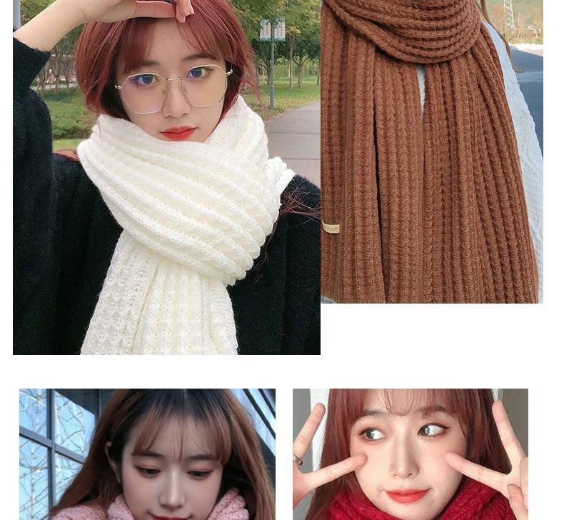 겨울 새로운 솔리드 컬러 니트 스카프 한국 학생 두꺼운 커플 패션 인터넷 연예인 울 여성 올 매치 스카프