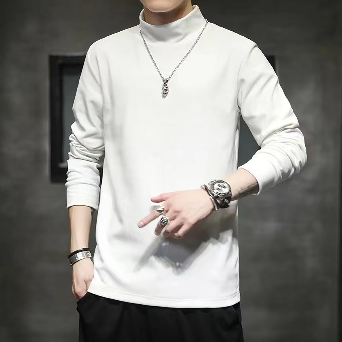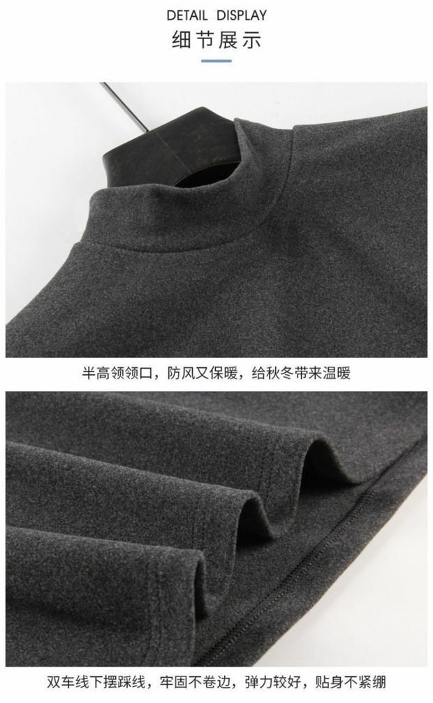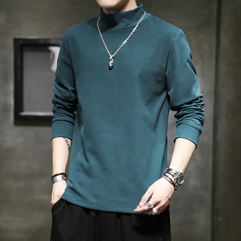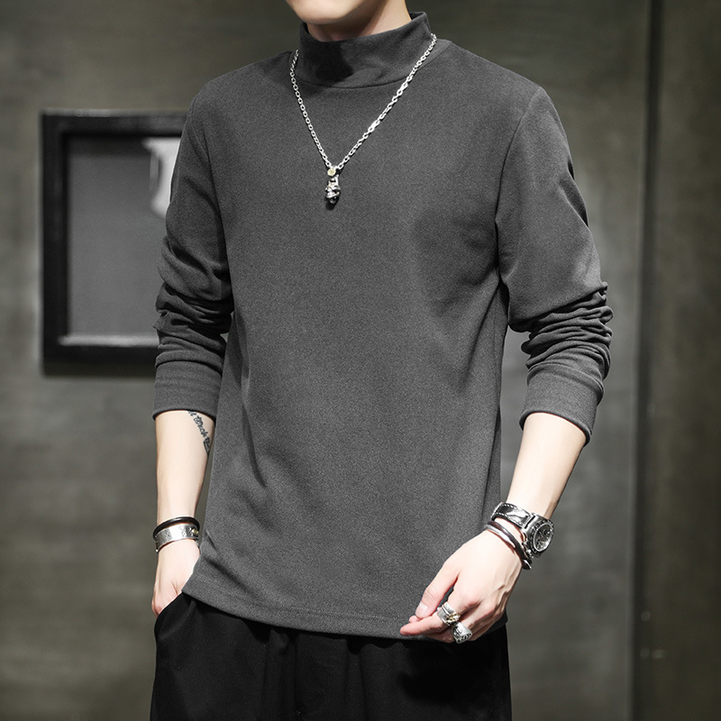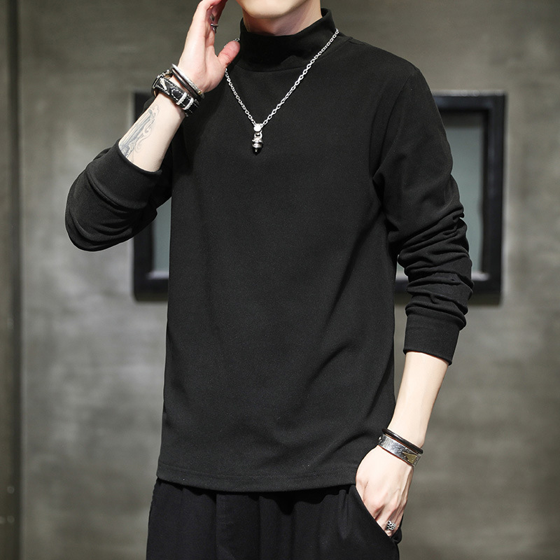 반 높이 칼라 긴팔 티셔츠 남성용 따뜻한 가을과 겨울 내양털베이스 셔츠 블랙 기모 가을 스웨트 셔츠