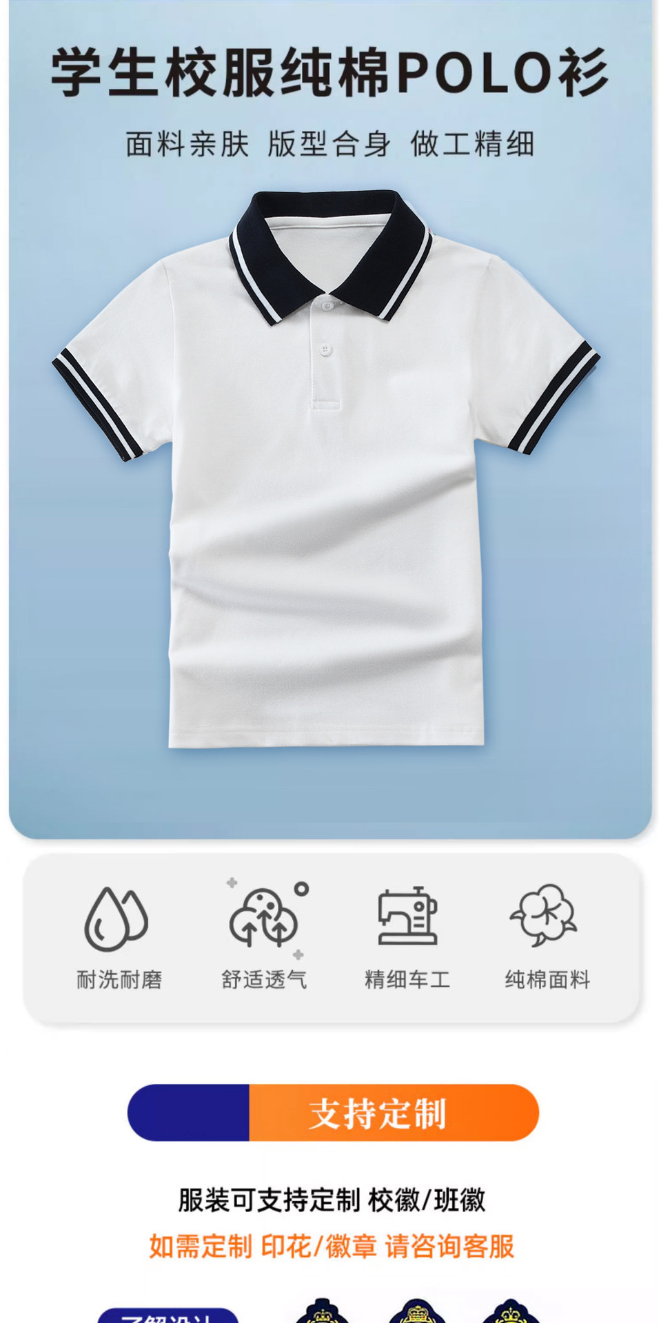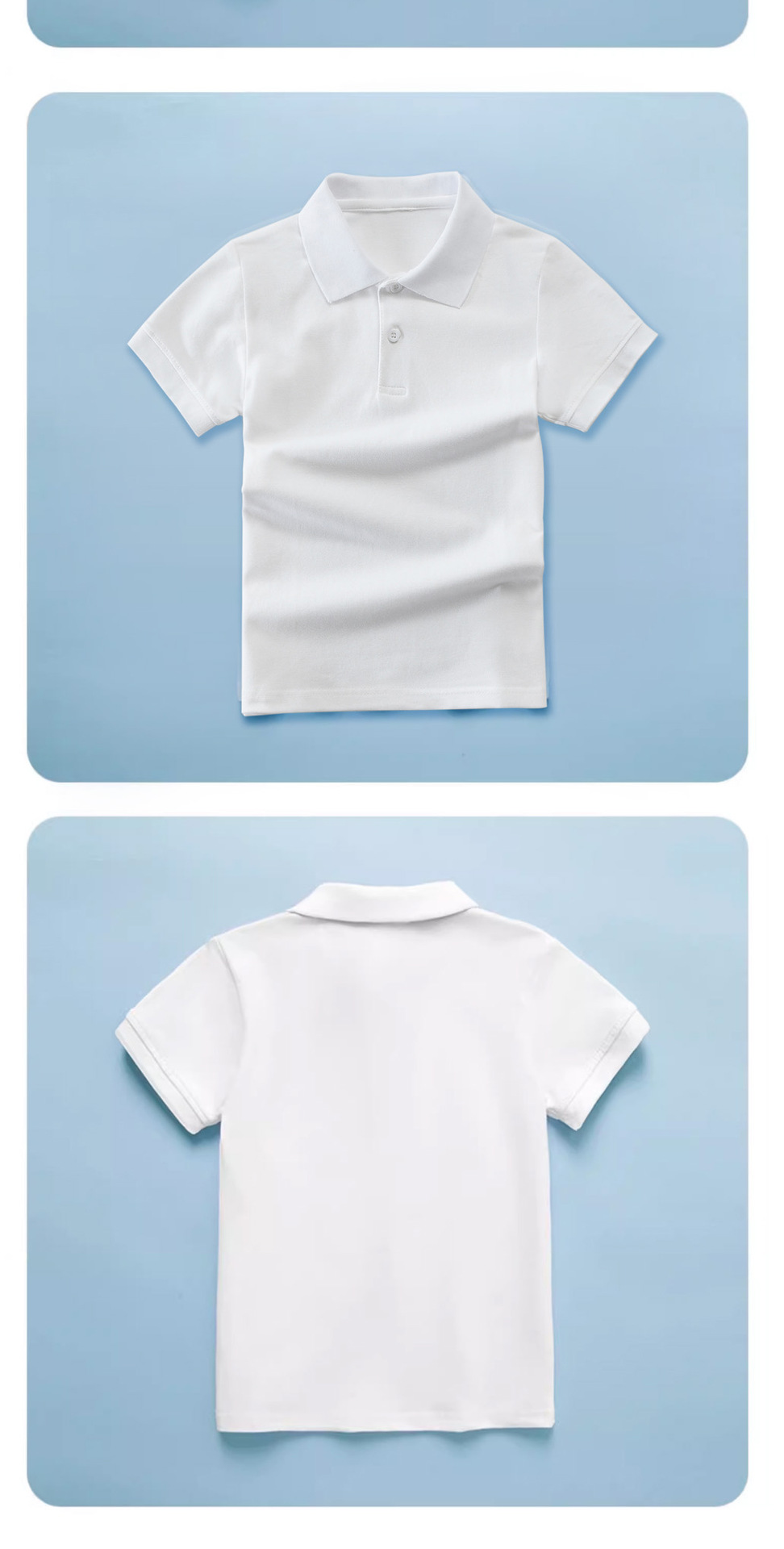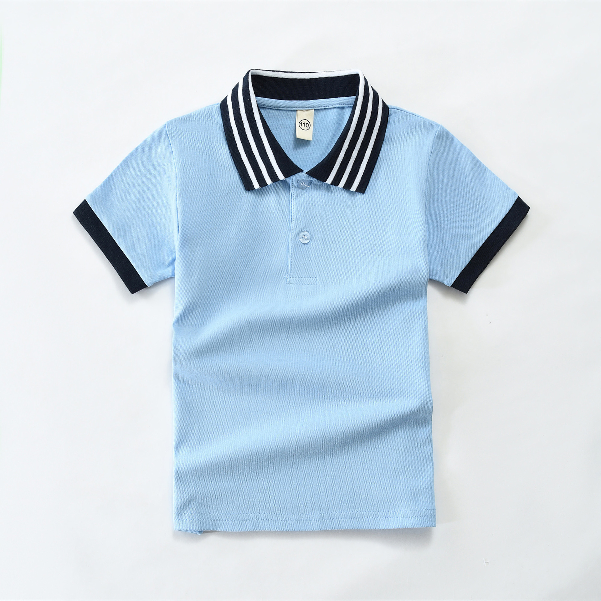 어린이 반팔 티셔츠 키즈 폴로 셔츠 여름 작고 고등학교 교복 정원 옷 면화 화이트 블루 100-190