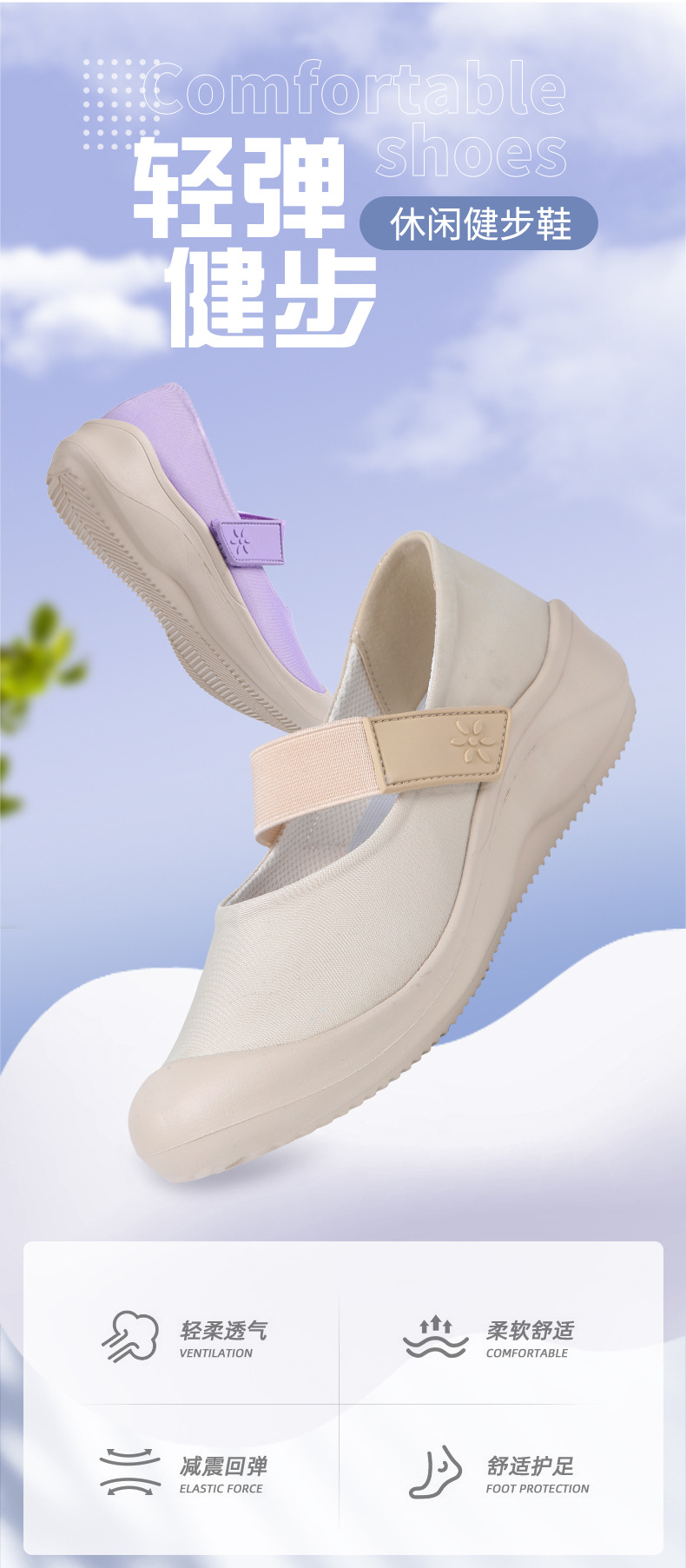 재고 공급 국경 간 플러스 사이즈 여성 신발 벨크로 슬립 온 여름 통기성 경량 소프트 단독 캐주얼 신발 어머니 신발스토어 가기