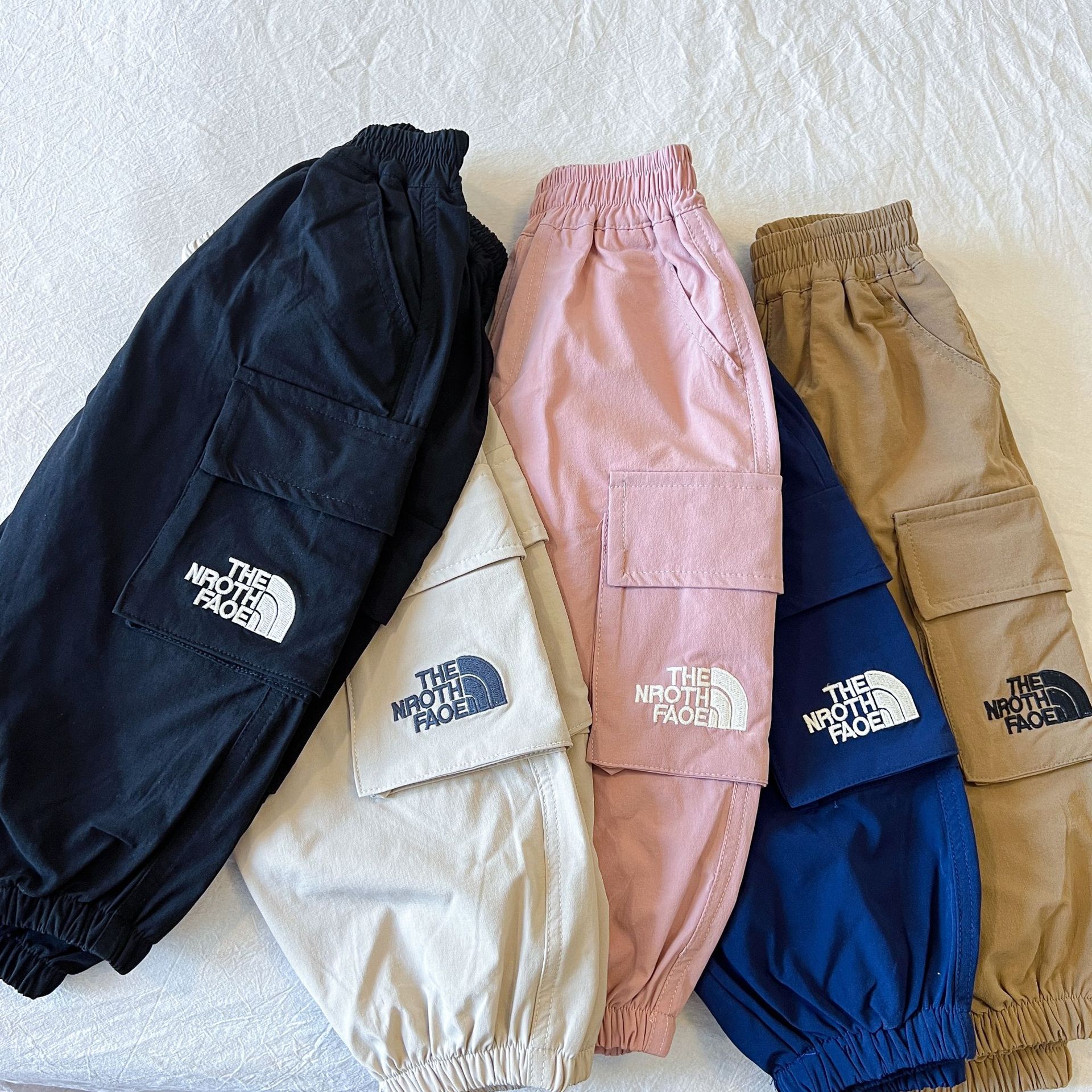 가을 2024 새로운 어린이 크레인 바지 소년 유행 브랜드 긴 바지 어린이 캐주얼 바지 큰 포켓 아기의 땀 바지스토어 가기