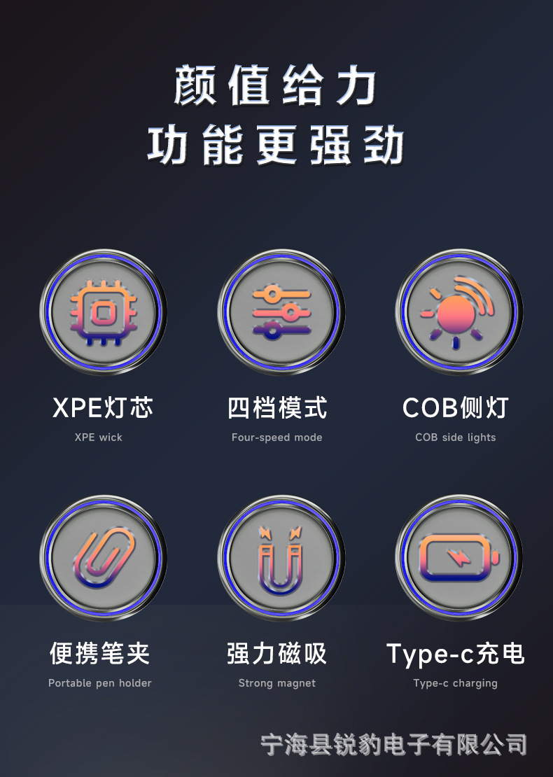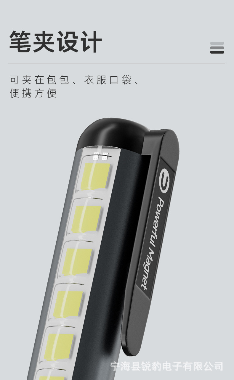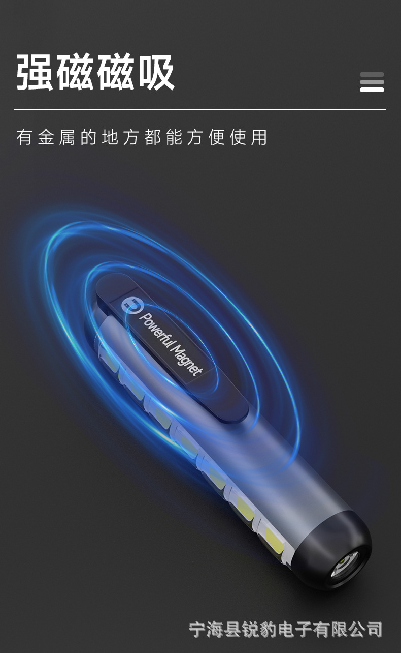 Ruibao 강한 자기 작업 램프 헤드 램프 손전등 펜 클립 자기 유형-c 빠른 충전 비상 휴대용 야외 손전등스토어 가기