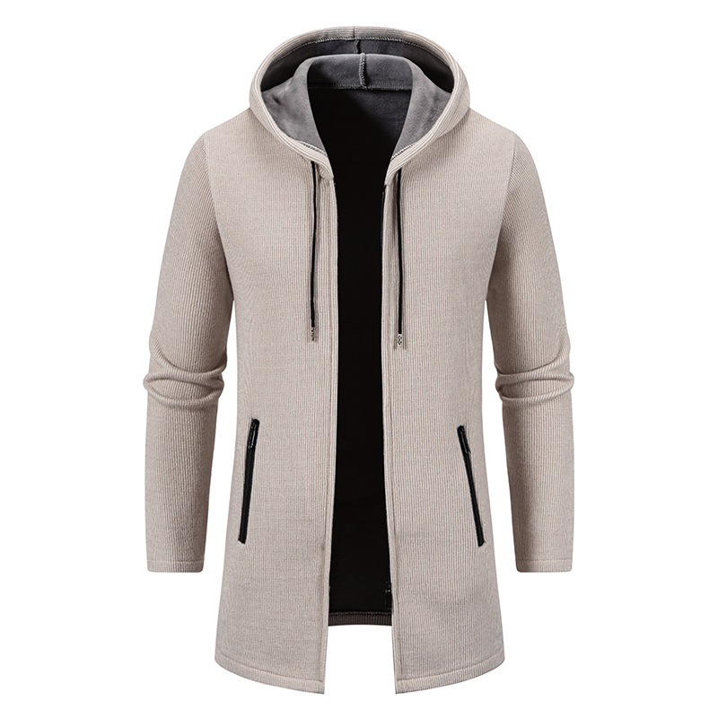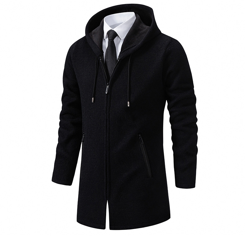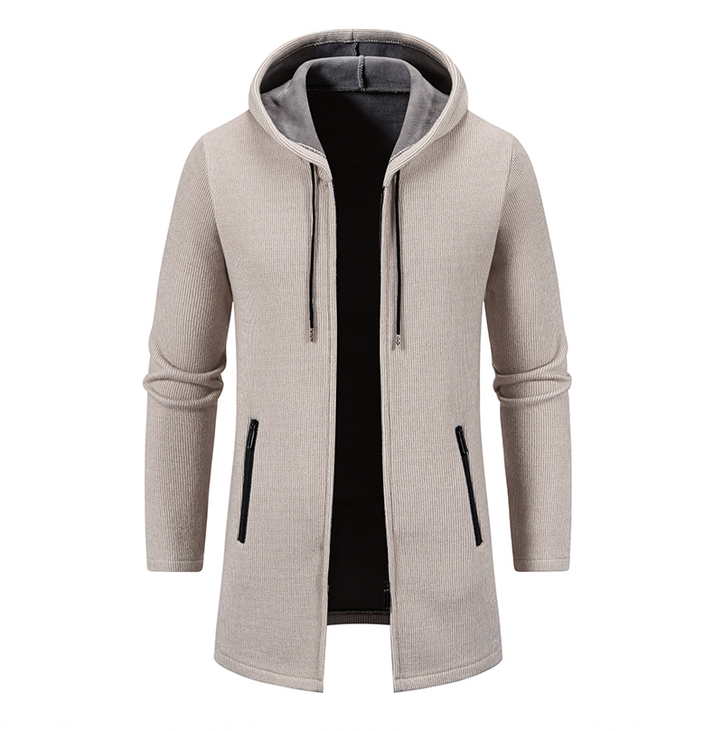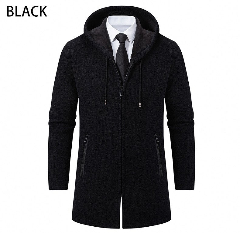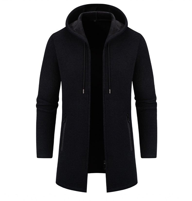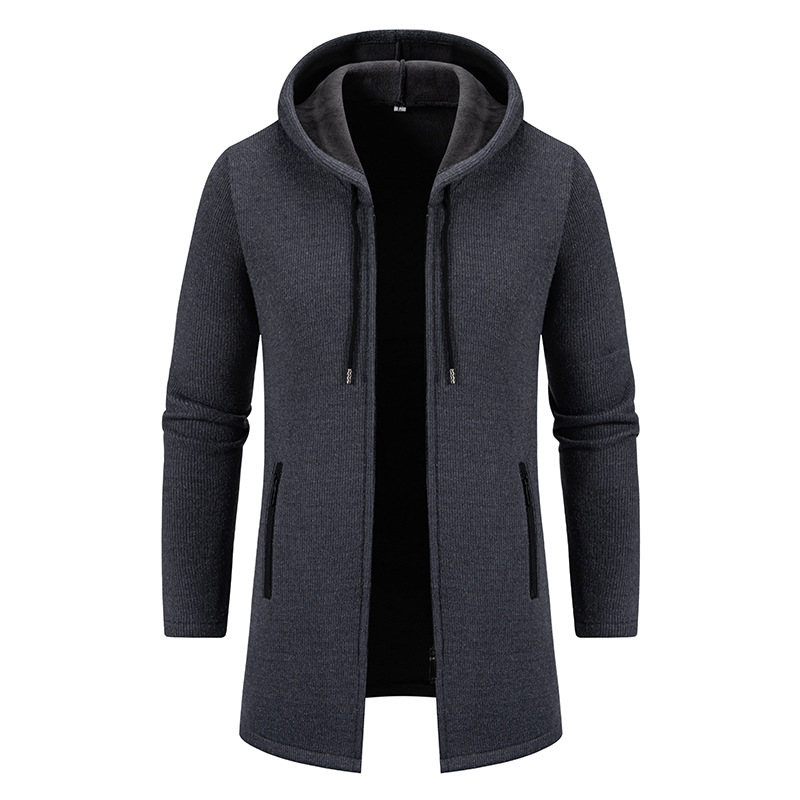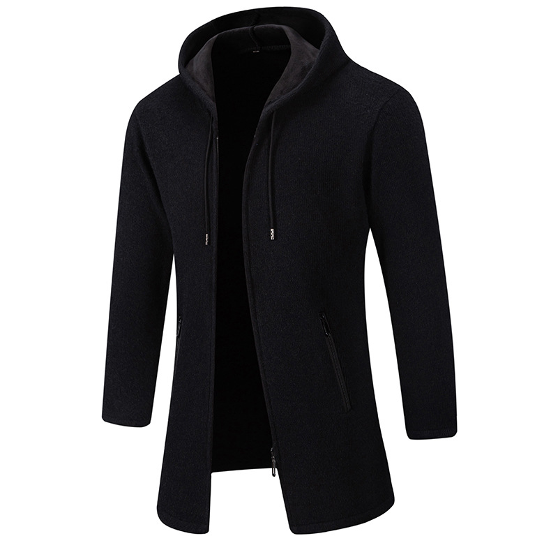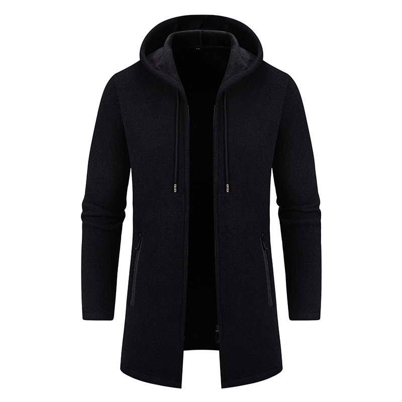 2025년 신상 남성용 중간 길이 두꺼운 후드 니트 코트 대형 사이즈 캐주얼 가디건스토어 가기