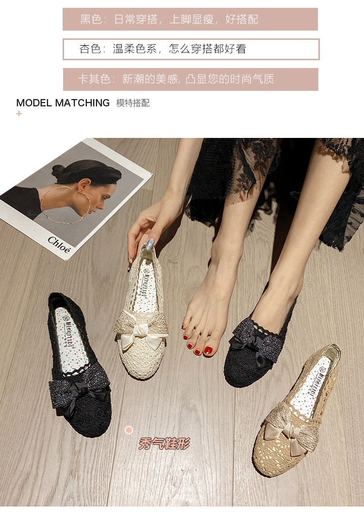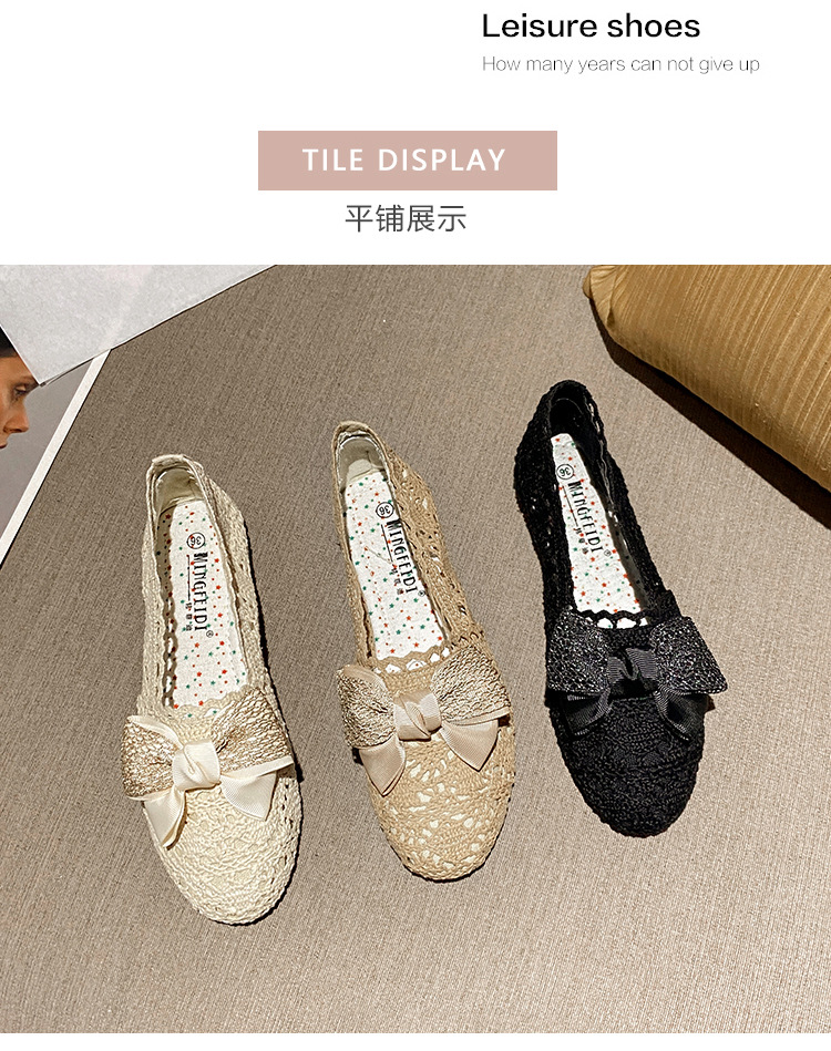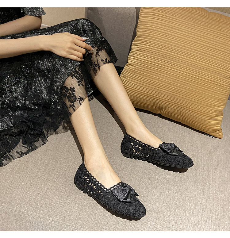 그물 신발 여성 여름 속이 빈 2024 새로운 페달 플랫 신발 얇은 콩 신발 플러스 사이즈 여성 신발 41-43
