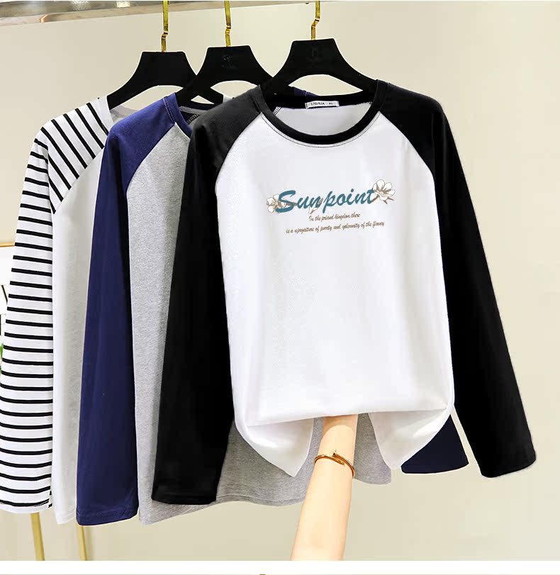 봄과 가을면 내베이스 셔츠 플러스 사이즈 여성용 한국식 긴팔 티셔츠 여성용 아름다운 서양식 작은 셔츠 탑스토어 가기