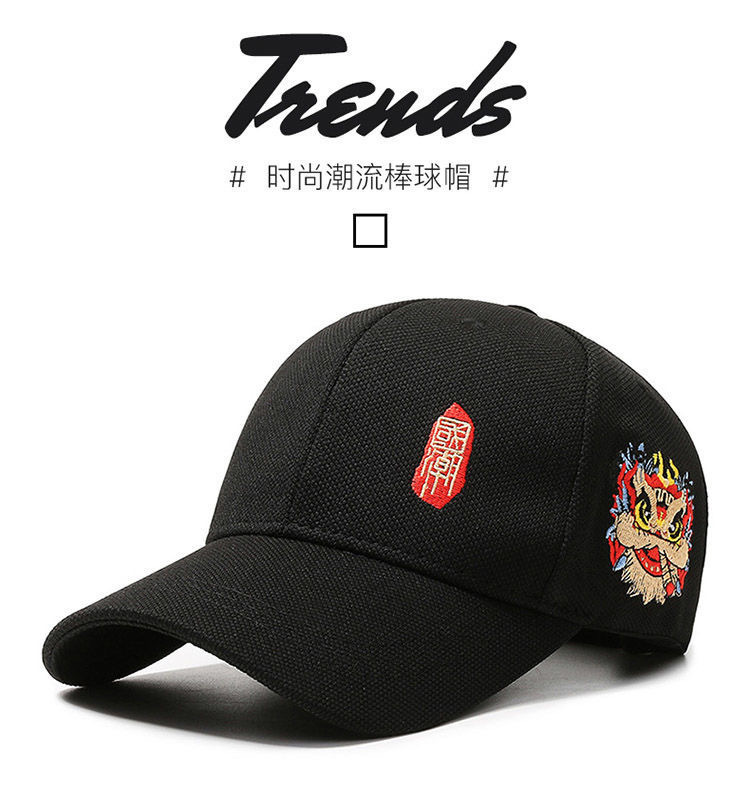 여름 새로운 중국 스타일 전국 패션 사자 자수 모자 남자 야구 모자 여성 민족 패션 브랜드 힙합 봄과 가을스토어 가기