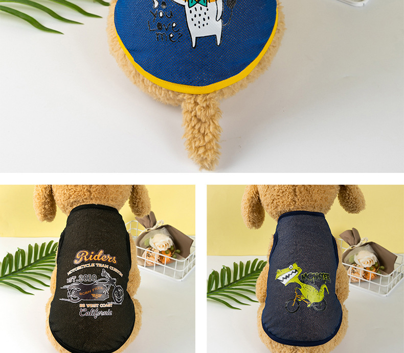 개와 고양이를 위한 애완동물 서스펜더 스커트, 비숑 테디 프린트, 통기성 자외선 차단 및 탈모 방지 의류, 대형견 반팔스토어 가기
