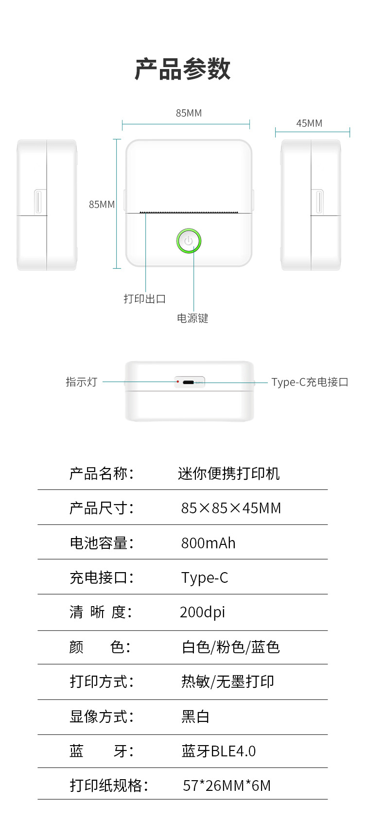 새로운 미니 소형 휴대용 블루투스 문제 프린터 사진 텍스트 핸드북 라벨 미니 프린터