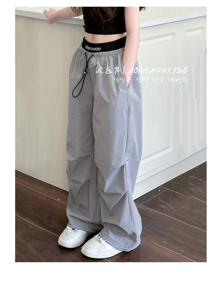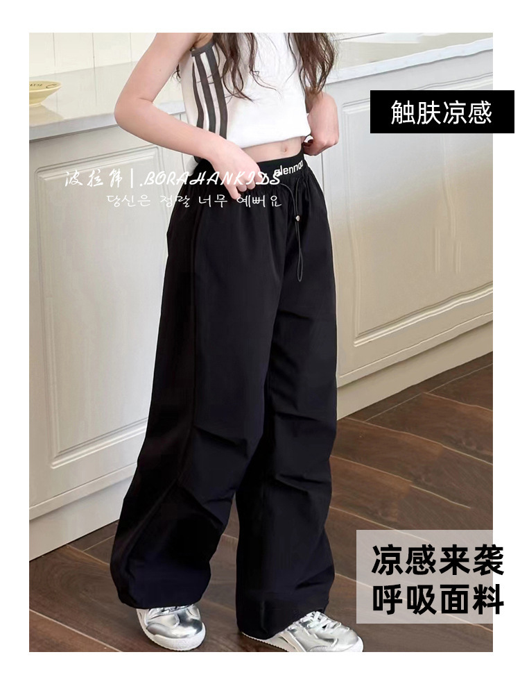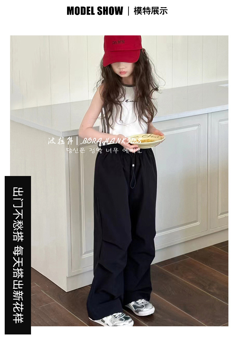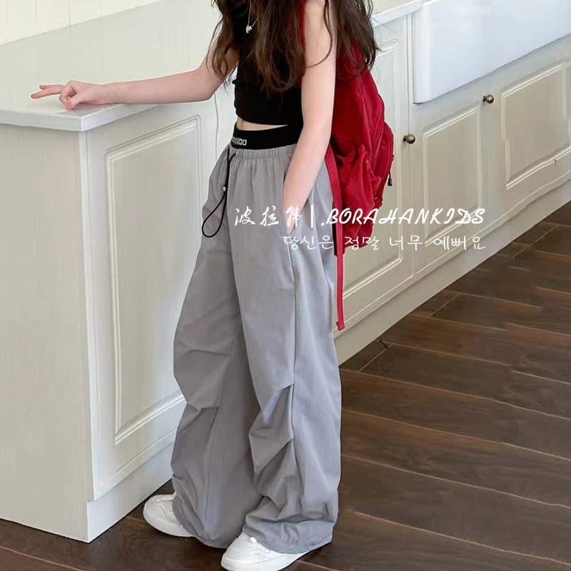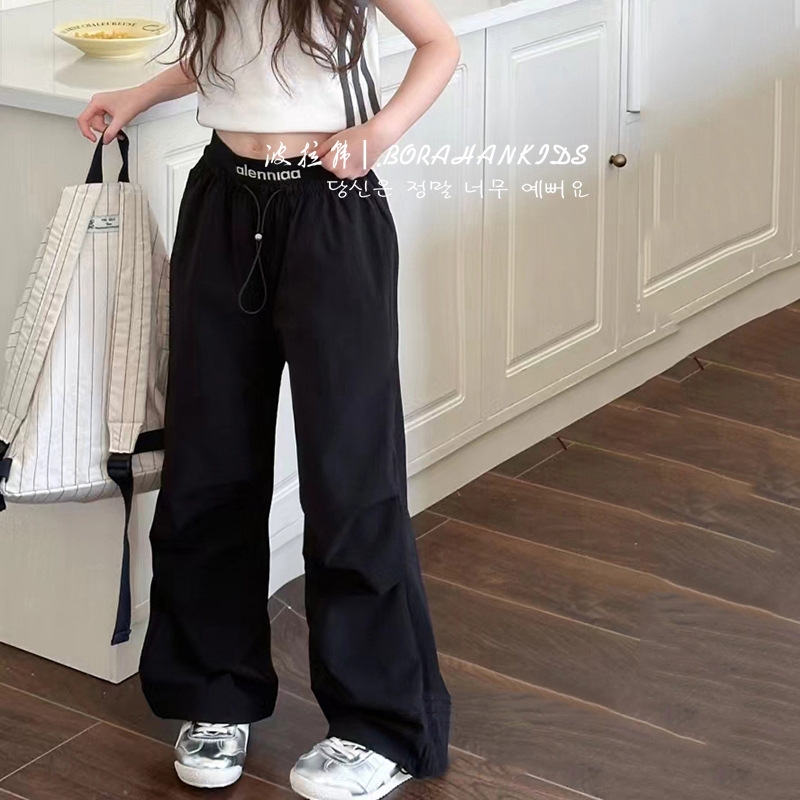 Pola 한국 아동복 소녀 얇은 작업복 2024 여름 어린이 속건 스포츠 캐주얼 바지 소년 스트레이트 바지
