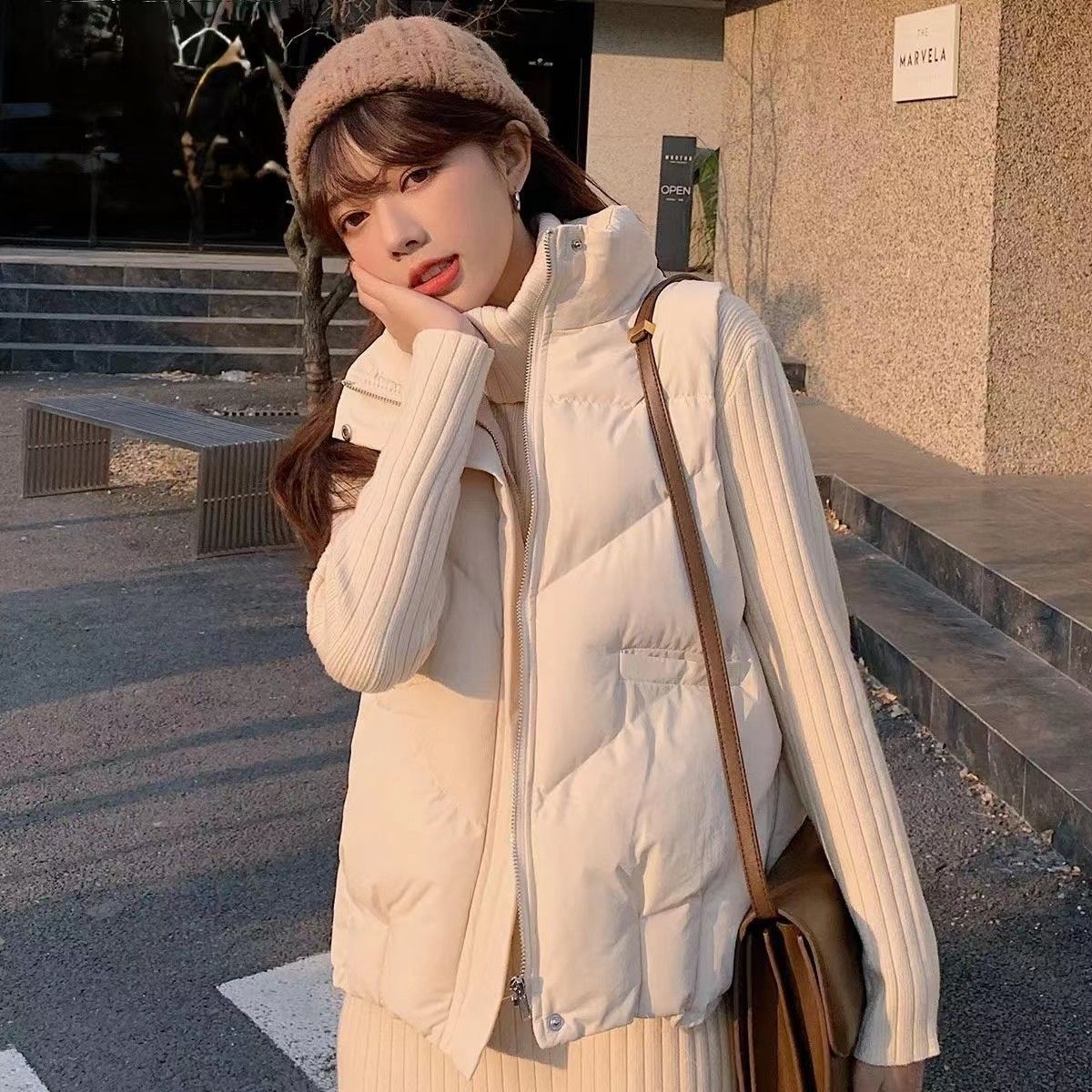 새로운 2023 가을 겨울 다운 코튼 조끼 여성 쇼트 패션 패셔너블 루즈 올 매치 작은 슬림 조끼스토어 가기