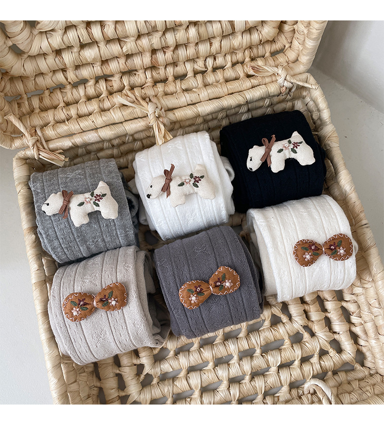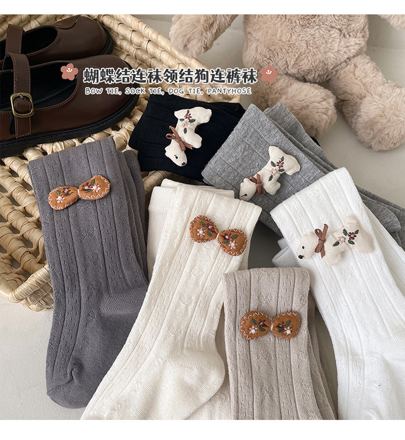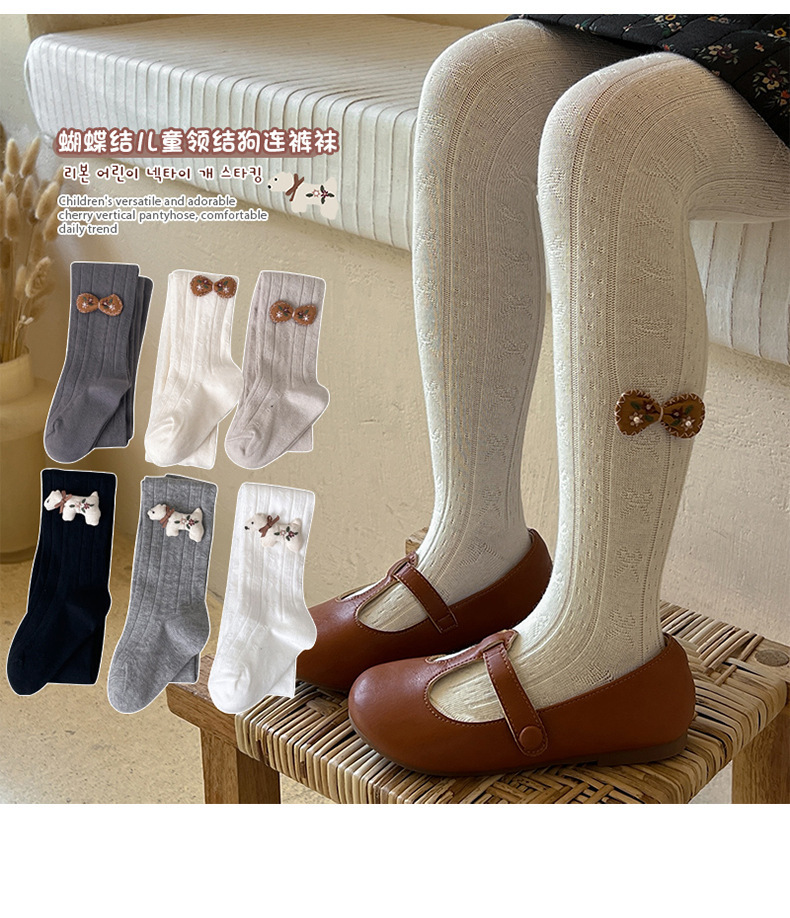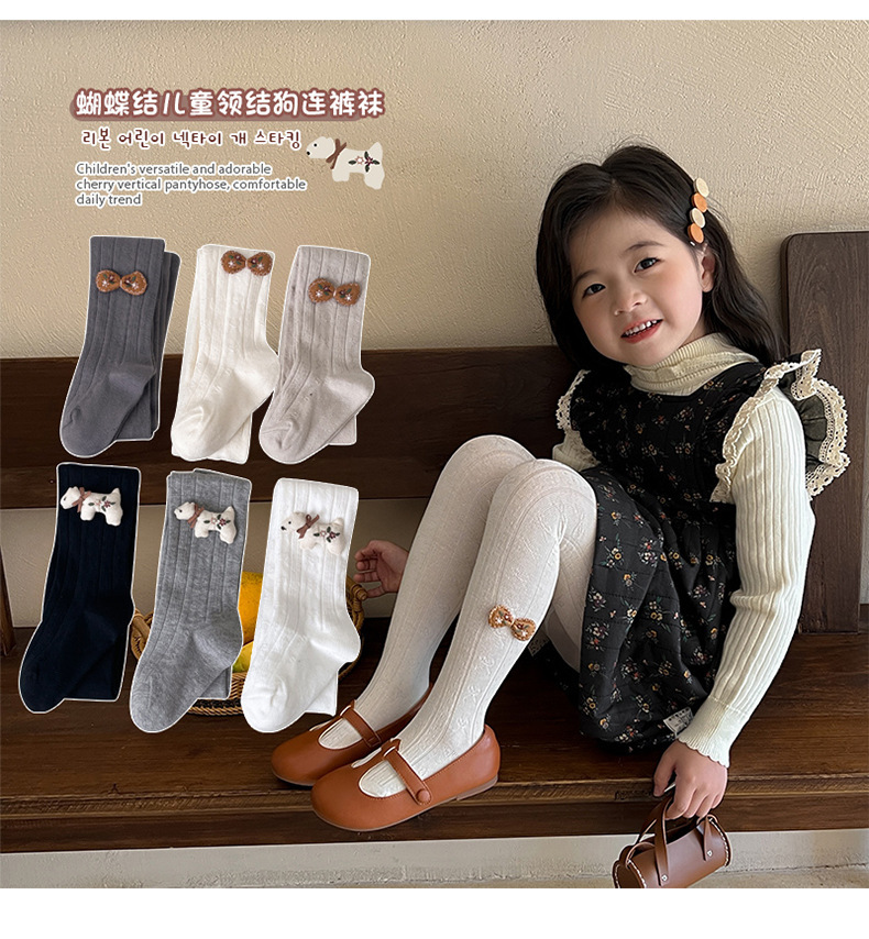 어린이 팬티 스타킹 봄과 가을 얇은 소녀의 바닥 양말 화이트 활 매듭 개 복장 봄 아기 레깅스