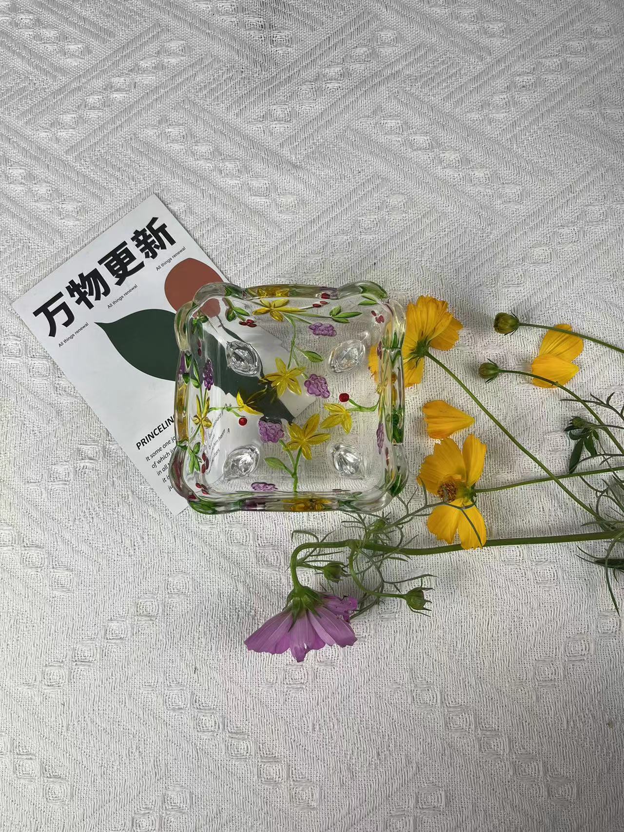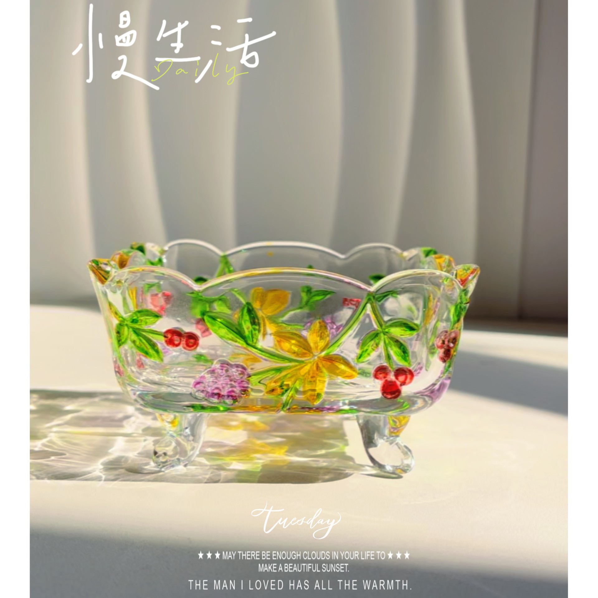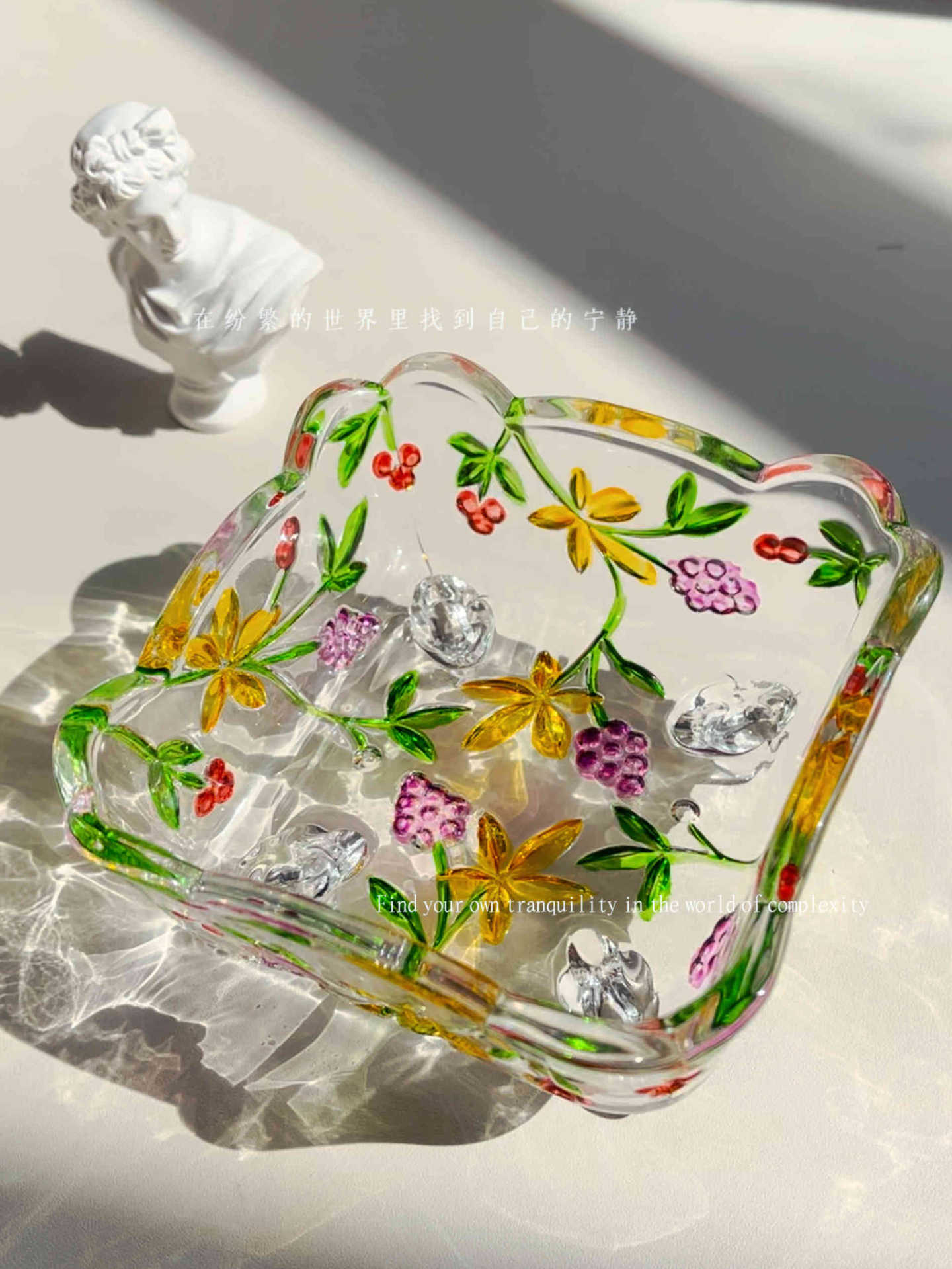 손으로 그린 컬러 조각 포도 사각형 빈티지 설탕 항아리 재떨이 양각 저장 항아리 보석 상자 유리 비누 상자