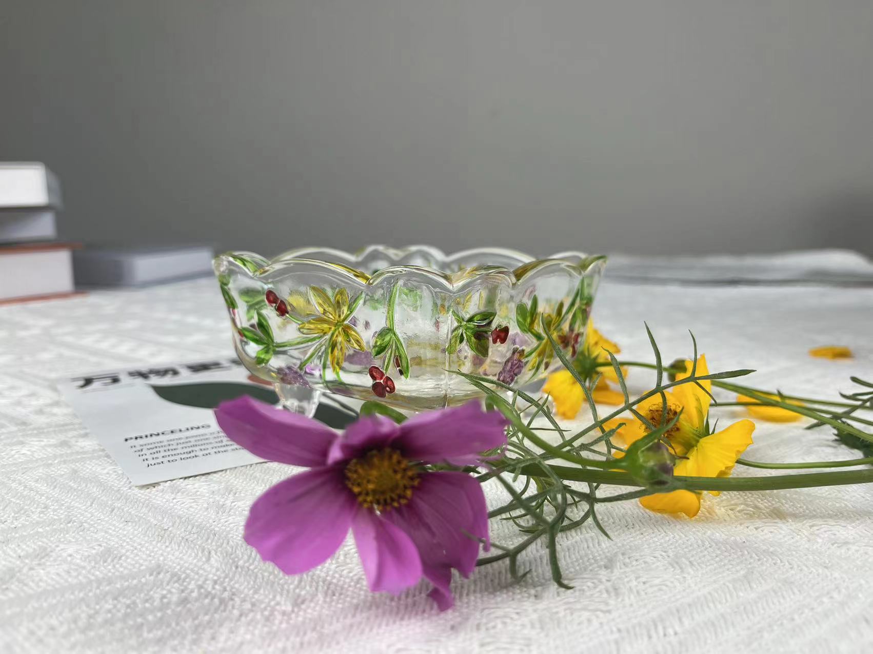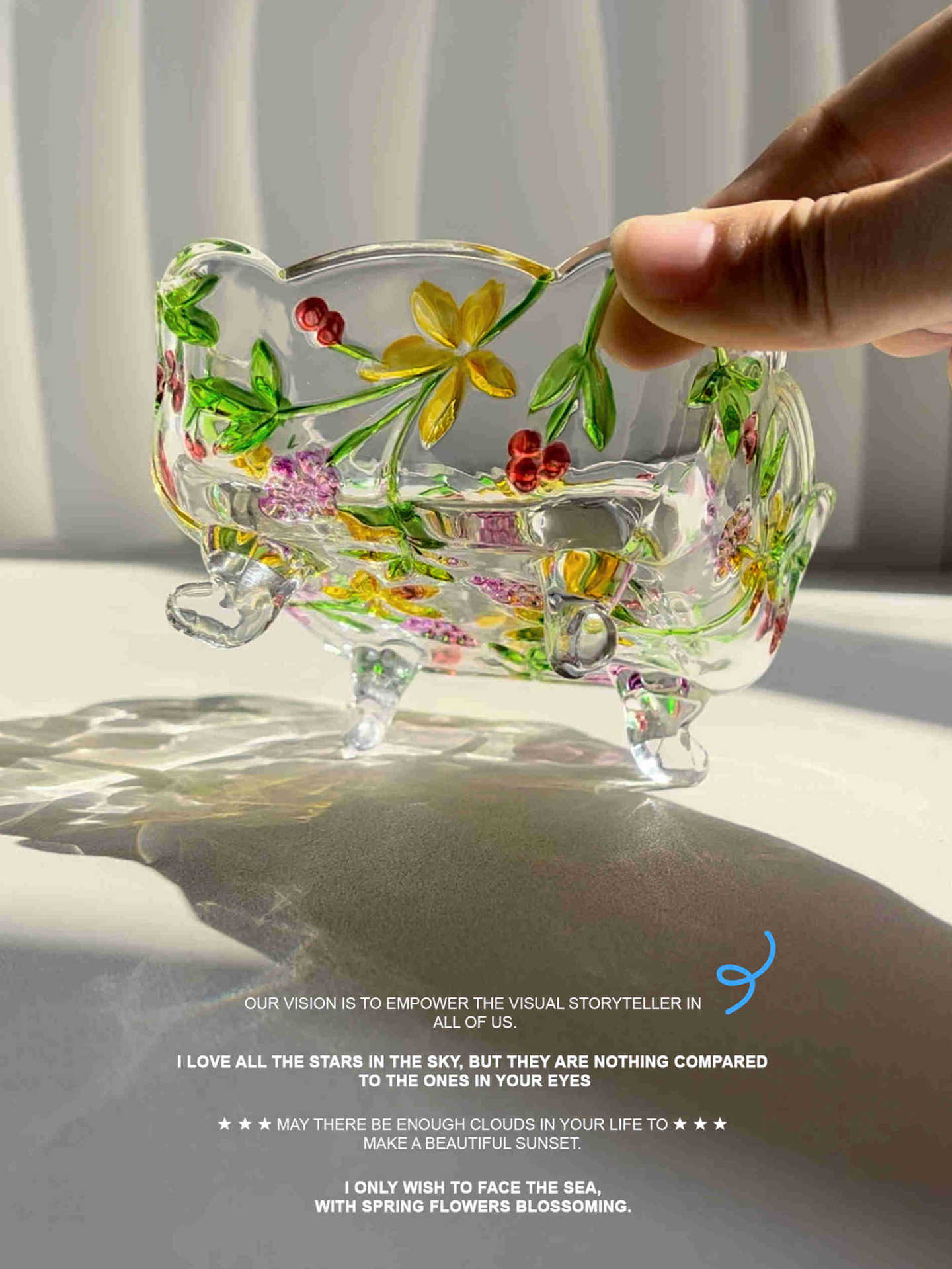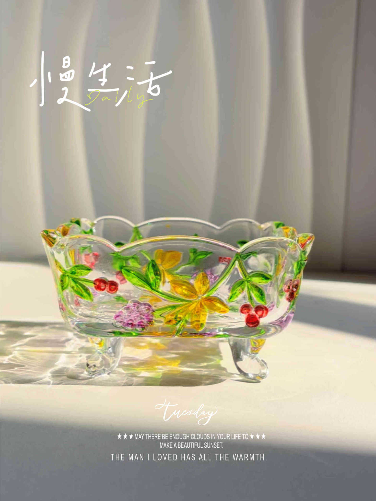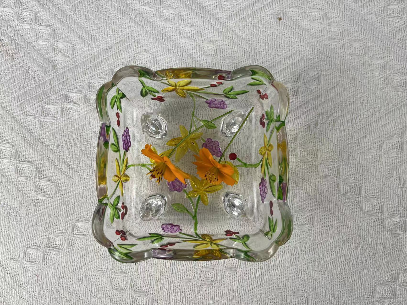손으로 그린 컬러 조각 포도 사각형 빈티지 설탕 항아리 재떨이 양각 저장 항아리 보석 상자 유리 비누 상자