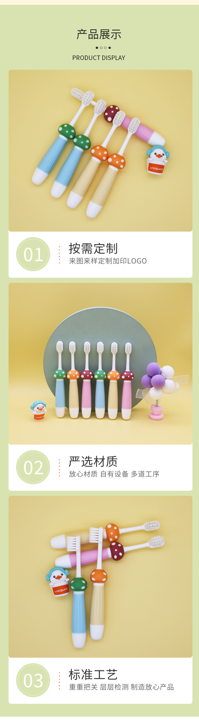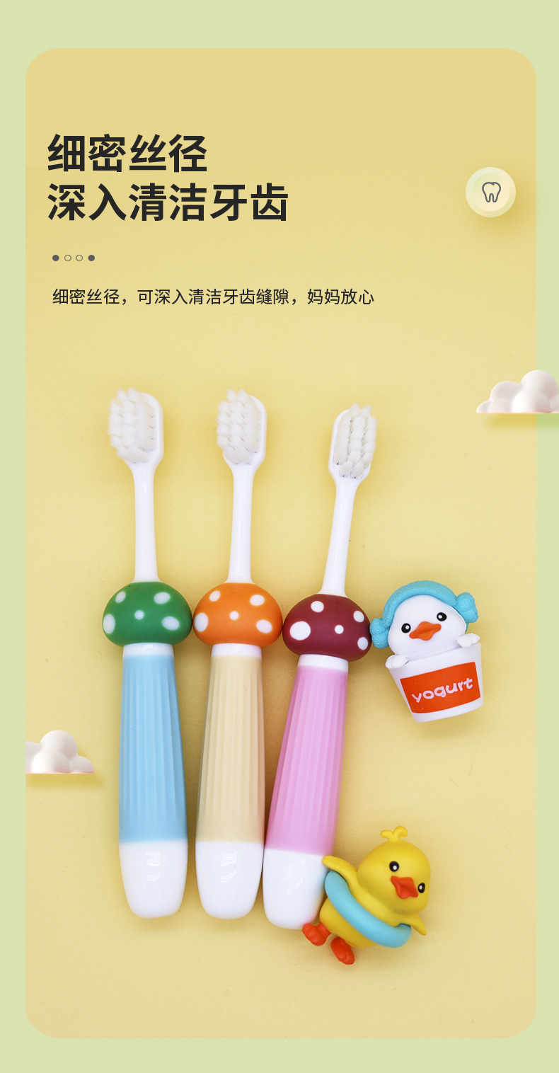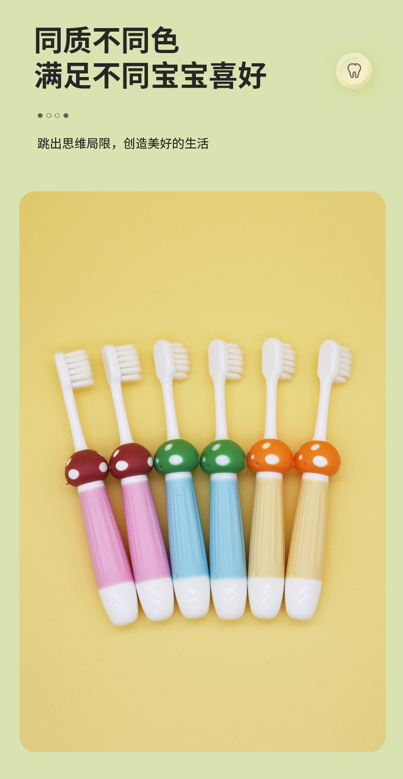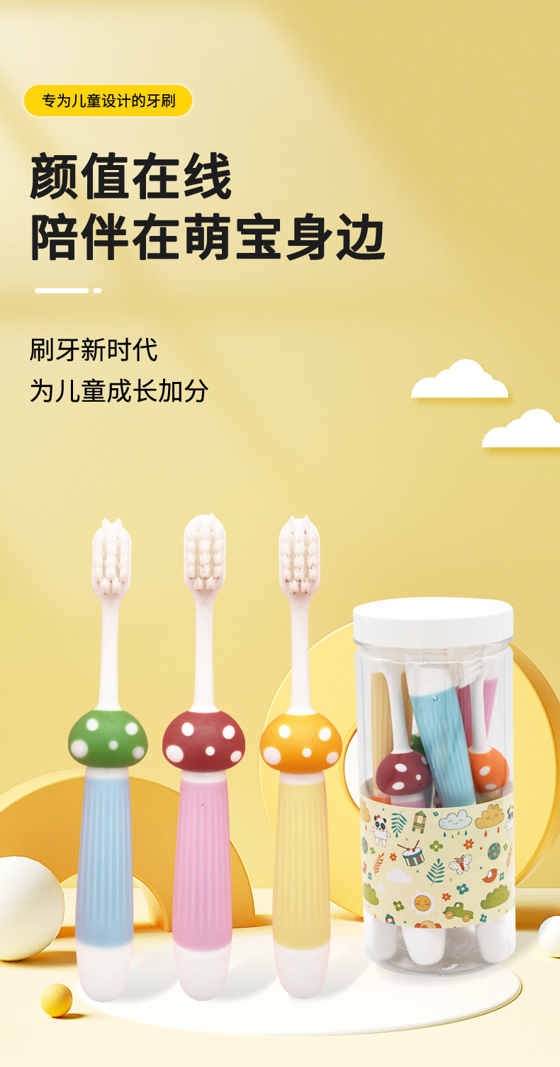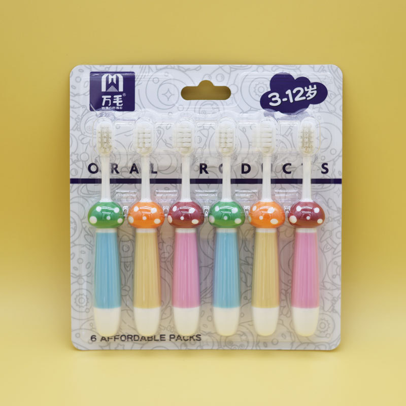 부드러운 칫솔모 어린이 칫솔 컬러풀 만화 버섯 아기 훈련용 청소 칫솔 6개입 제조업체 도매