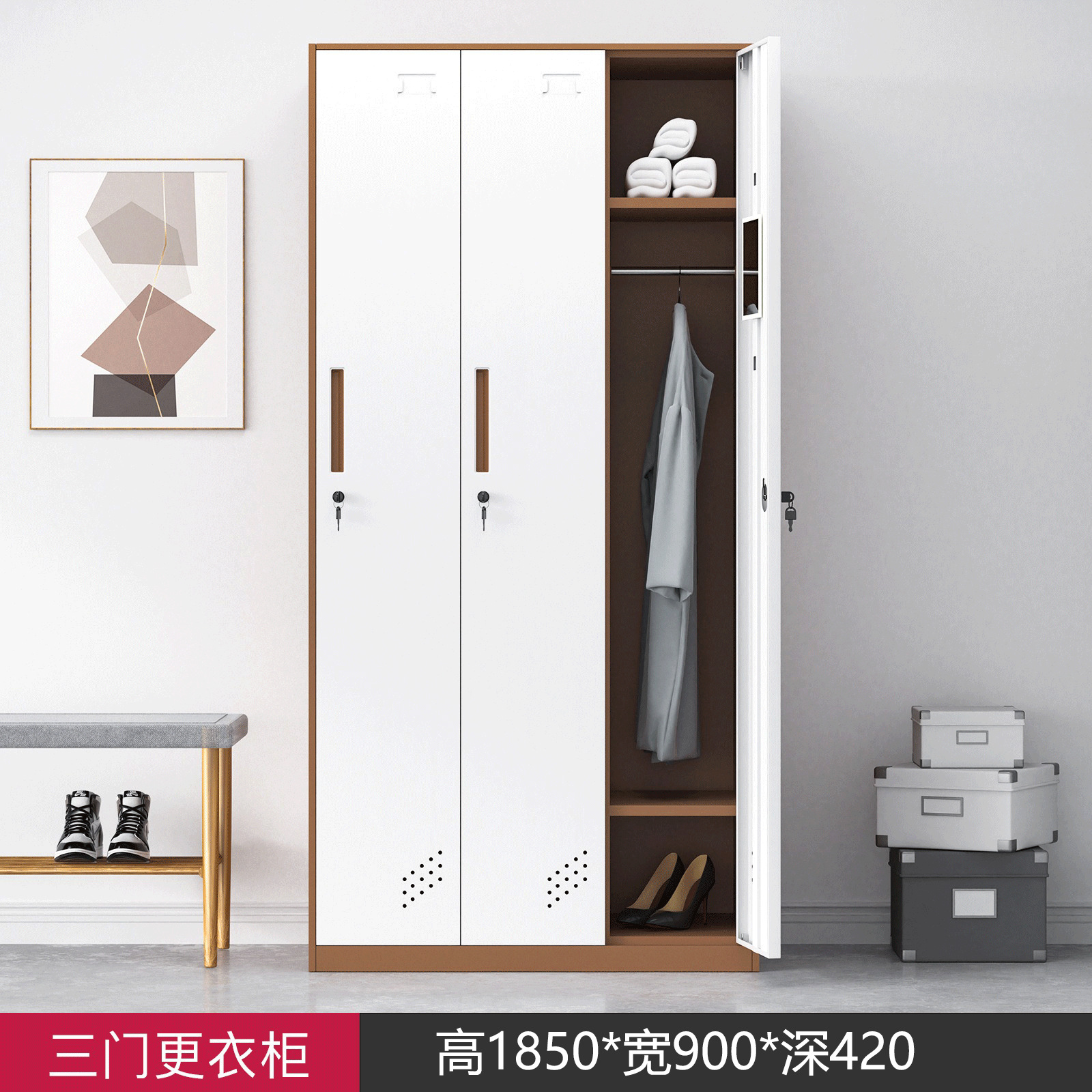 • 3도어 옷장 커피 화이트 색상